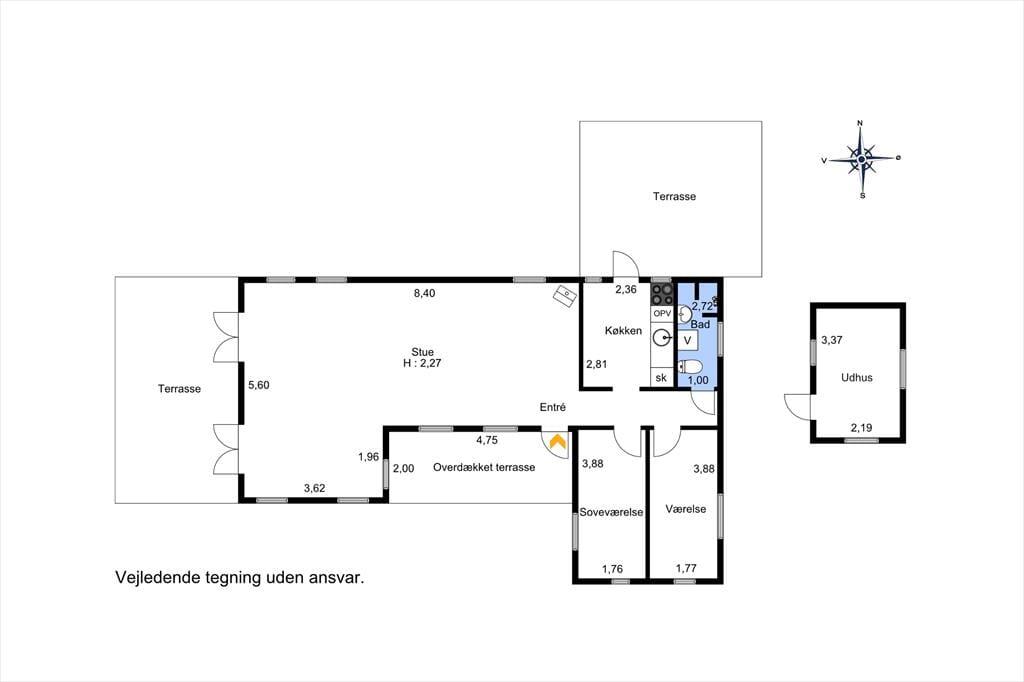 -i dette dejlige feriehus. Huset har separat køkken med alt hvad der behøves for at kreere sin egen aftensmad. En rummelig stue med spisebord i den ene ende og hyggesofa i den anden. Huset har 2 soveværelser med gode dobbeltsenge på 140 cm og 120 cm.