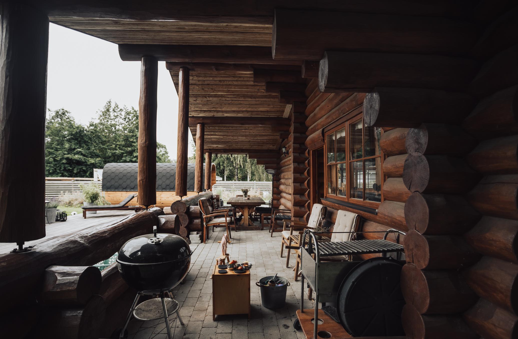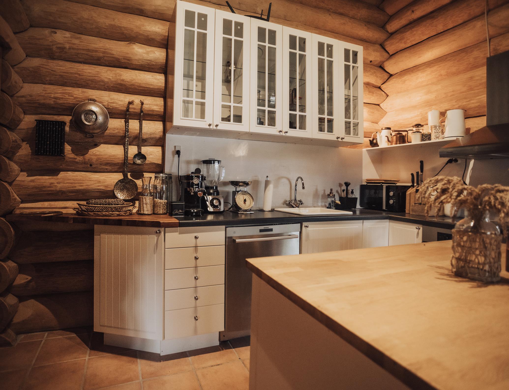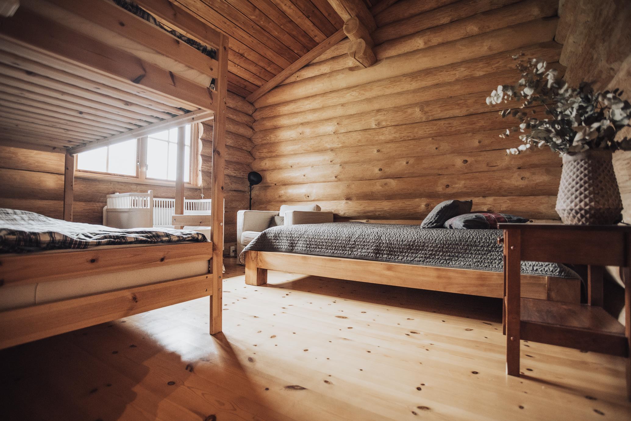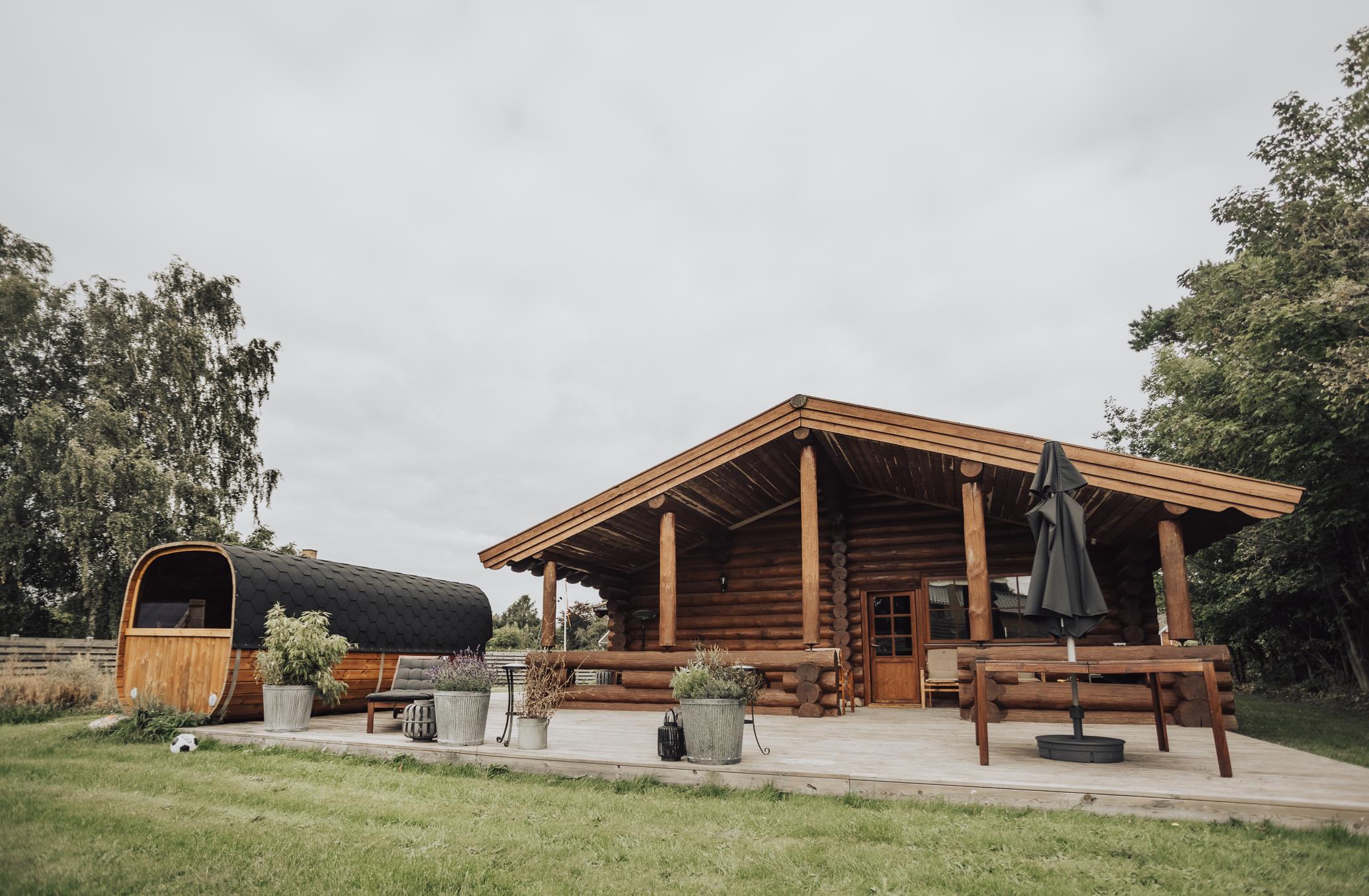 Lækkert bjælkehus med sauna nær strand