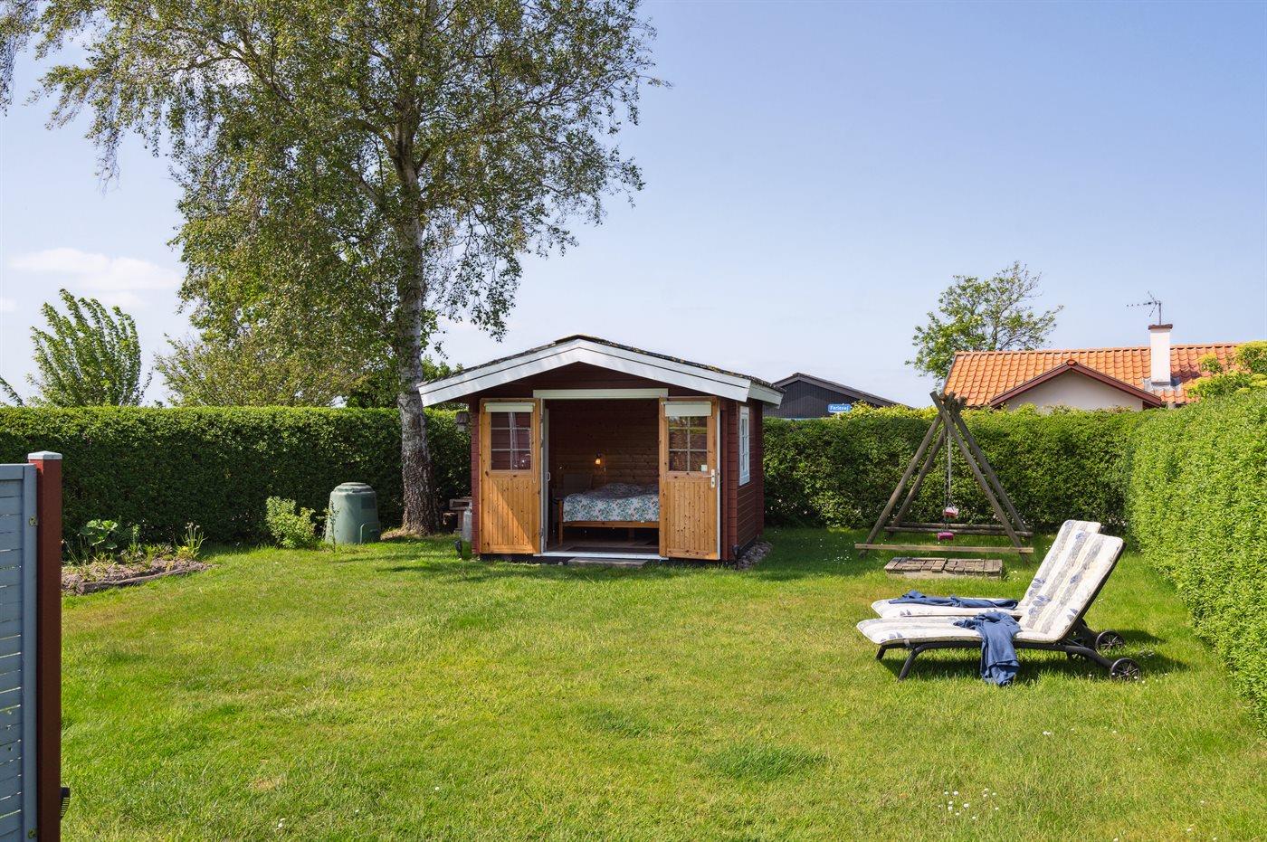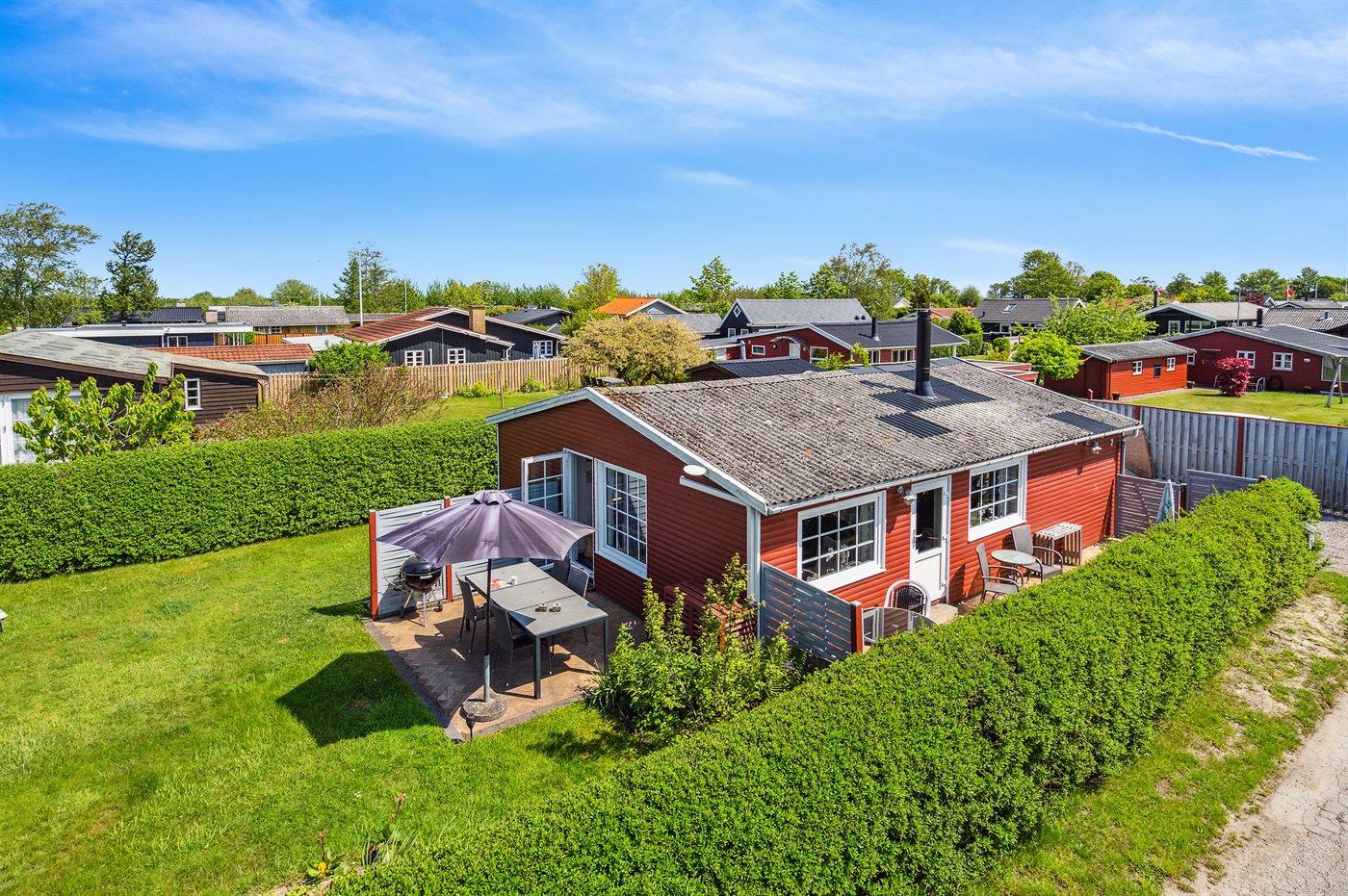 Ferieboligen er beliggende på en 386 m² stor havegrund. Der er 150 m til havet. Nærmeste forretning er beliggende i en afstand af 2000 m. Til ferieboligen hører 36 m² terrasseareal. Der er redskabsrum. Gynge. Sandkasse. På lune aftener sørger en udendørs pejs for hyggelig stemning. Parkering ved ferieboligen.