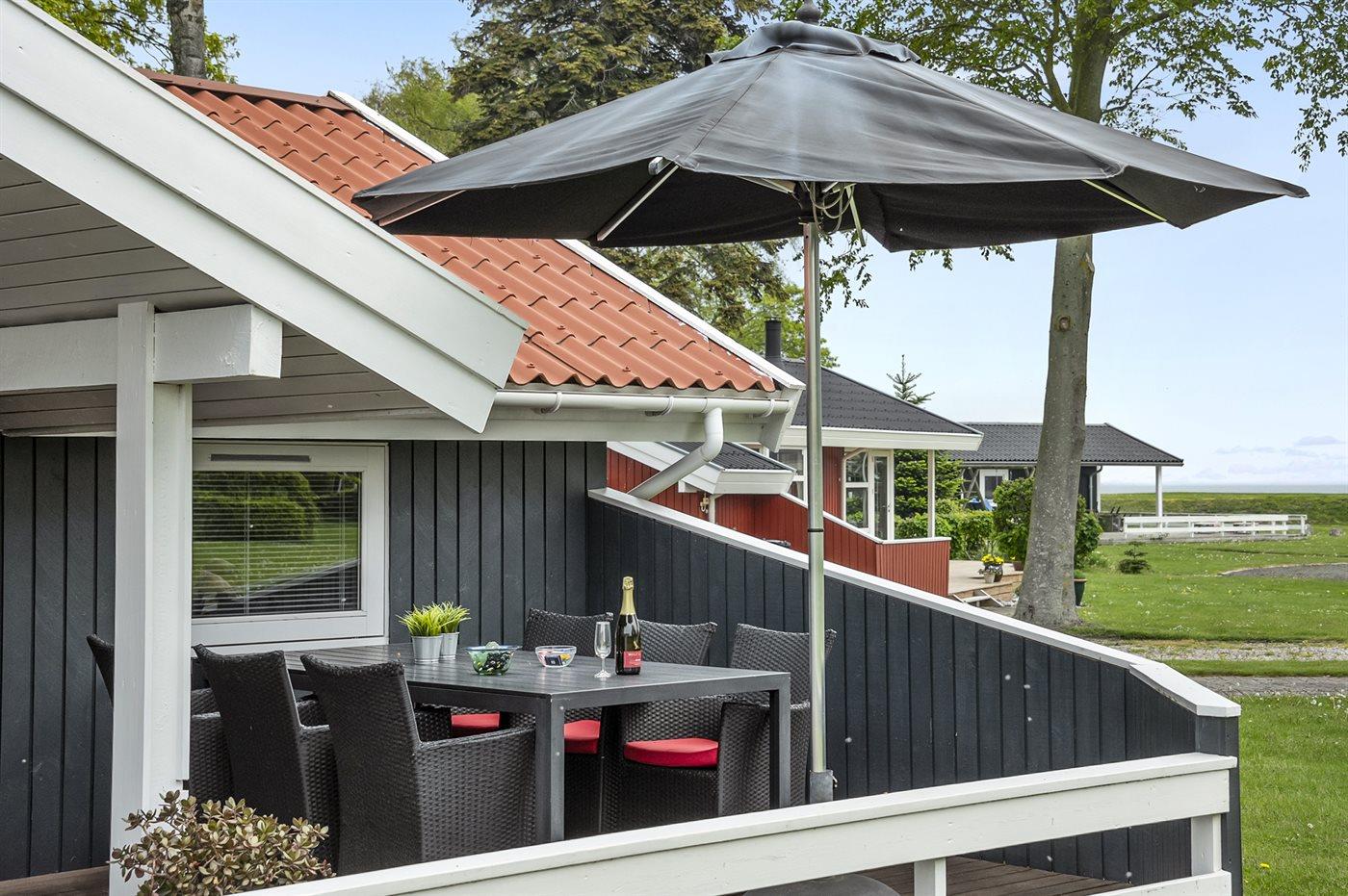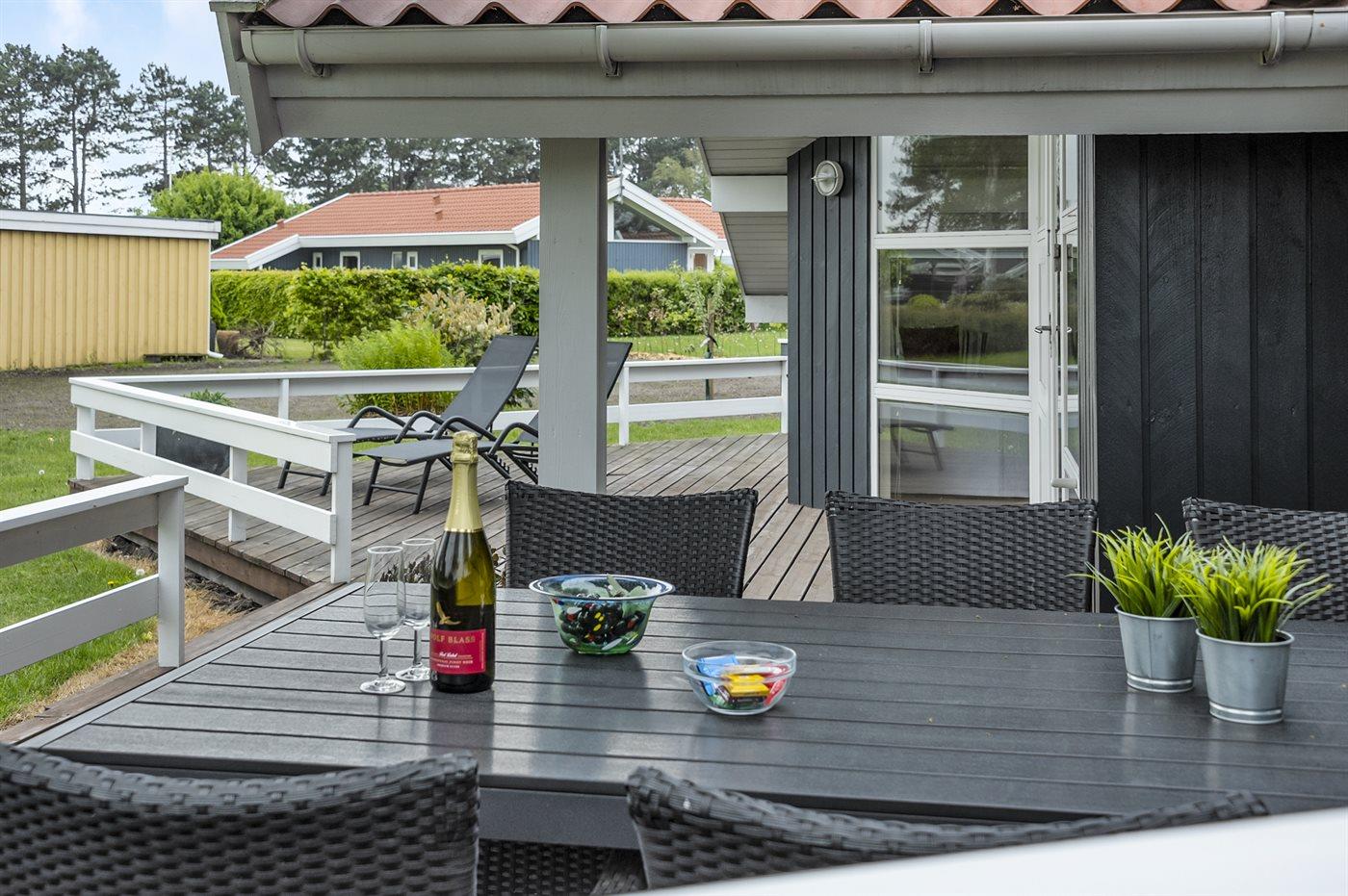 Ferieboligen er beliggende på en 1286 m² stor naturgrund. Der er 150 m til havet. Nærmeste forretning er beliggende i en afstand af 3000 m. Til ferieboligen hører 50 m² terrasseareal. Desuden er der 10 m² overdækket terrasse. Der er redskabsrum. Parkering ved ferieboligen.