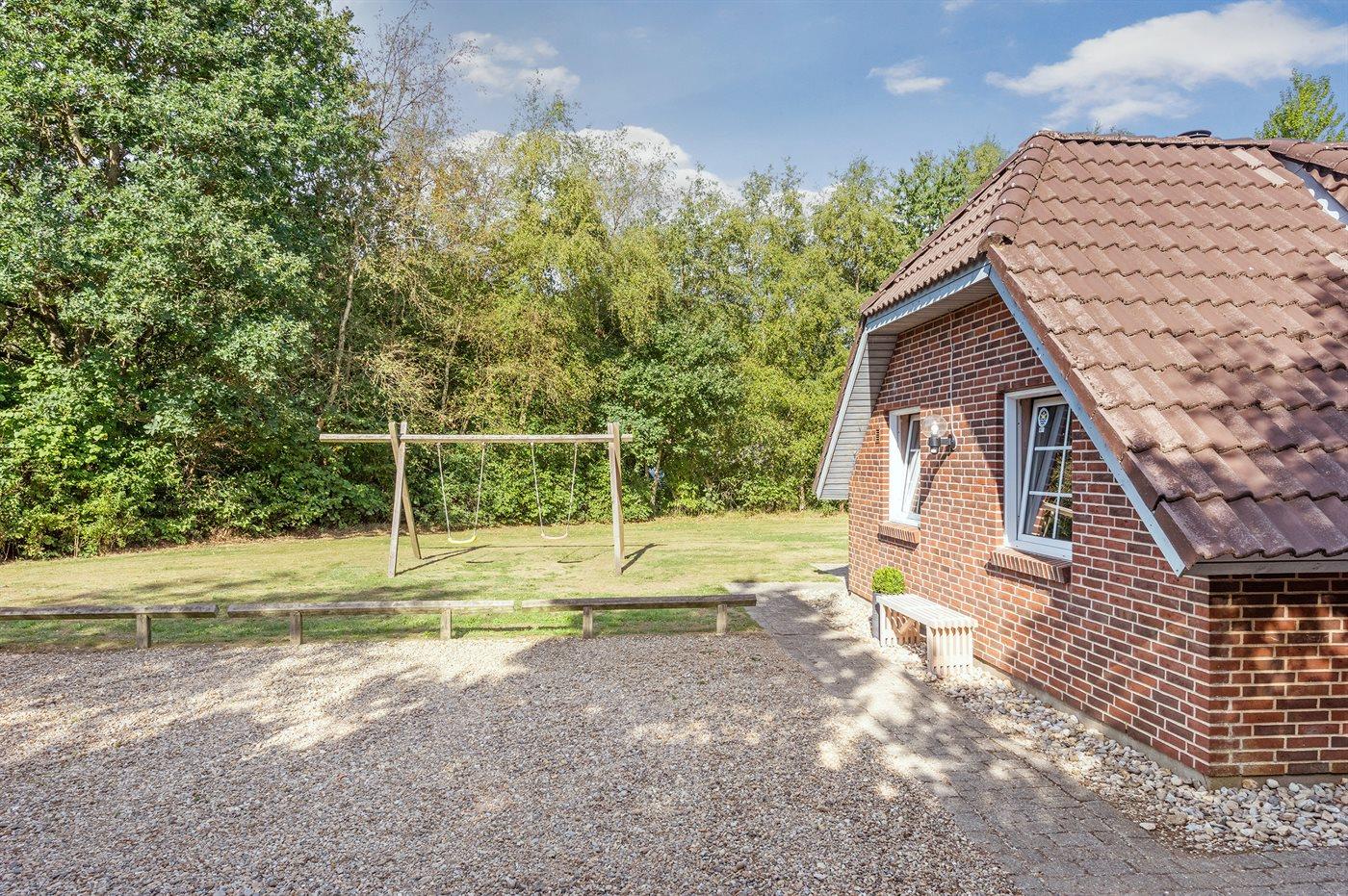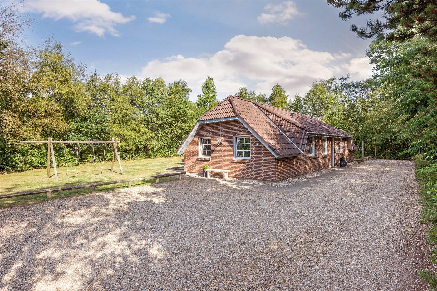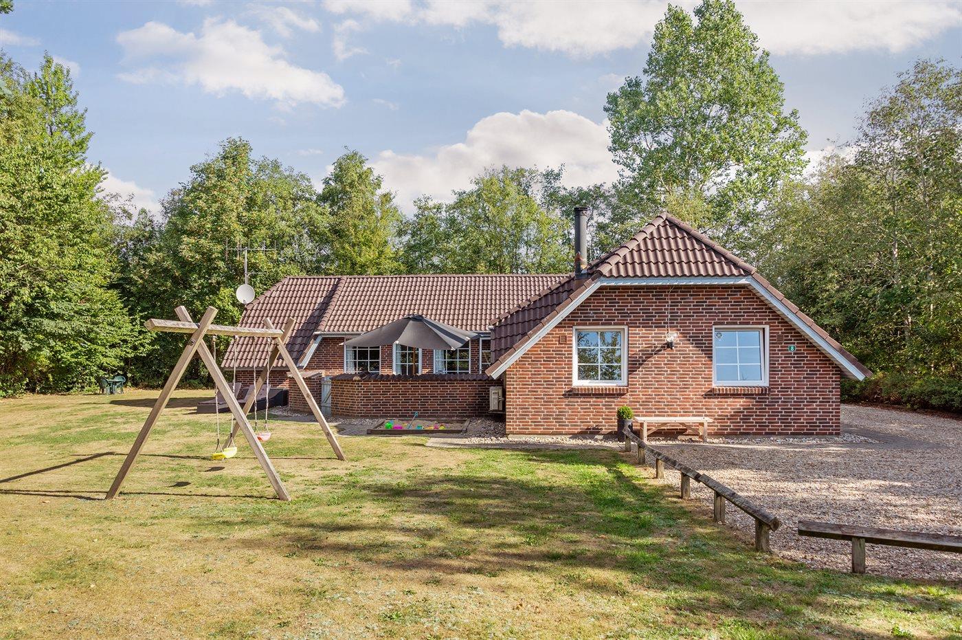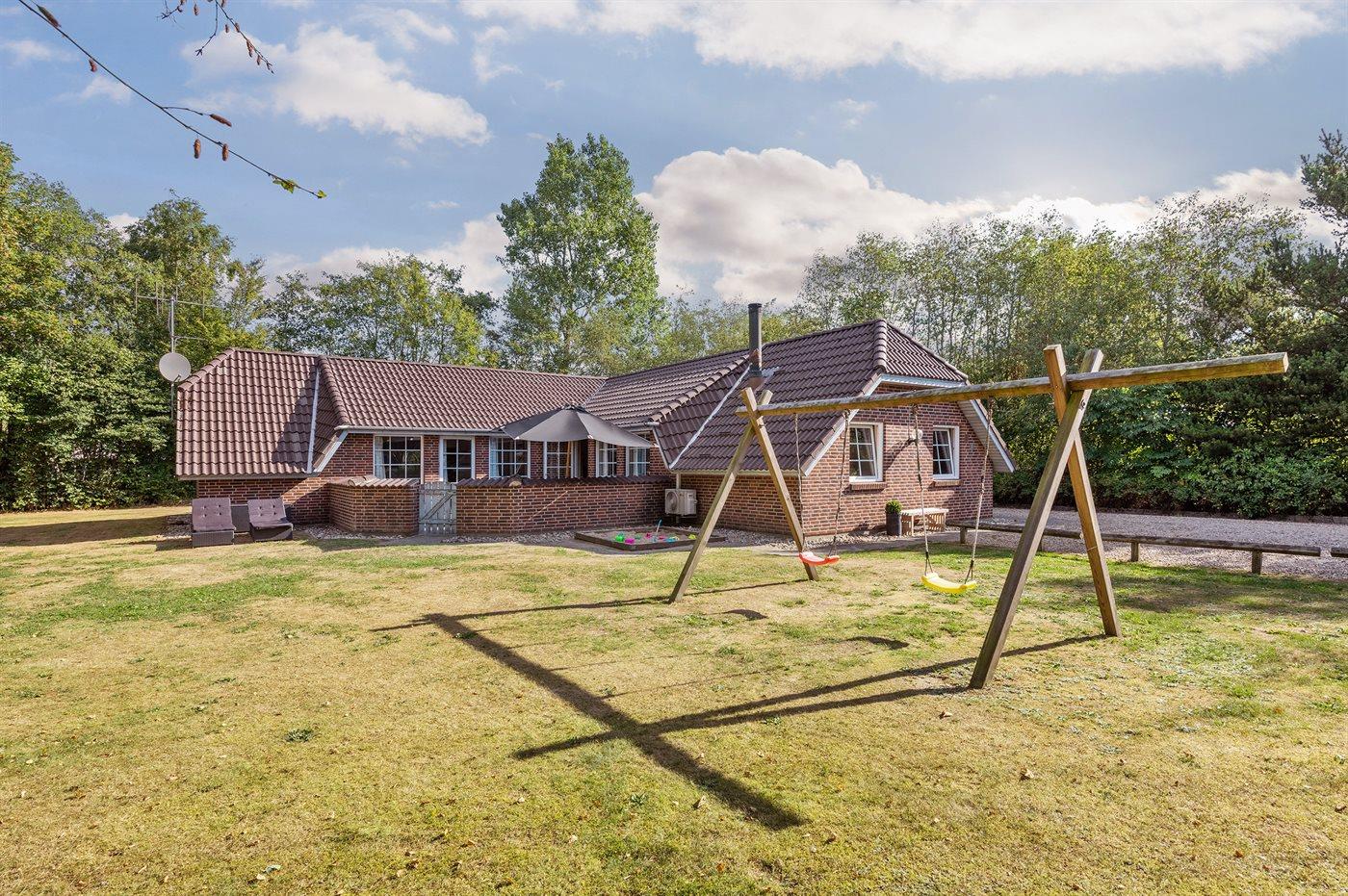 Lækkert sommerhus i Jegum Ferieland med indendørs pool, spa og lukket terrasse på stor naturgrund.