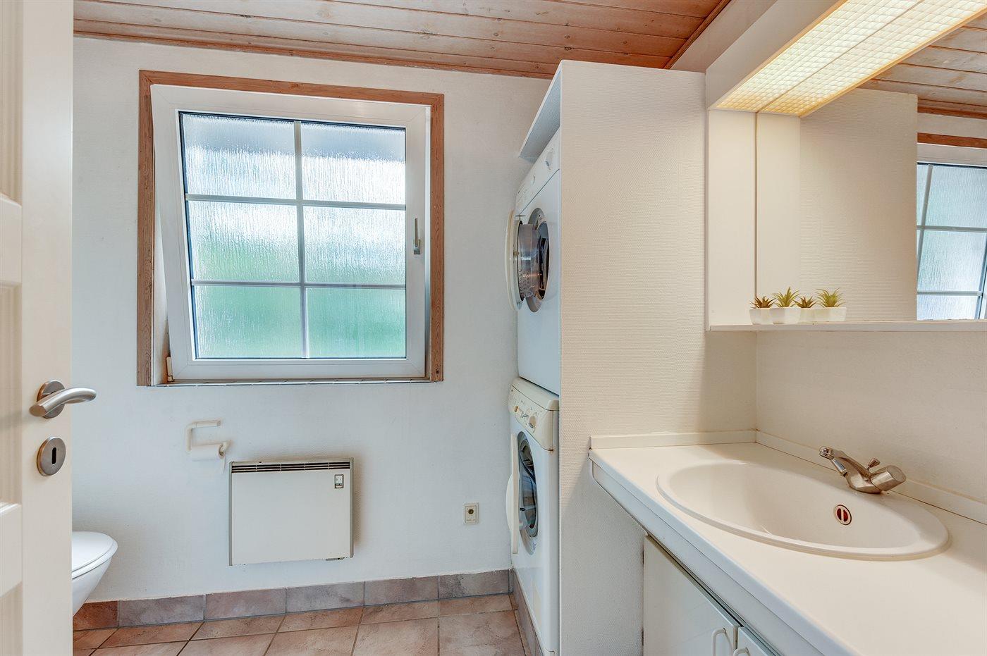 Der er 2 badeværelser med bruseniche og 2 toiletter. Der er gulvvarme på 2 badeværelser. I saunaen er der mulighed for afslapning.
