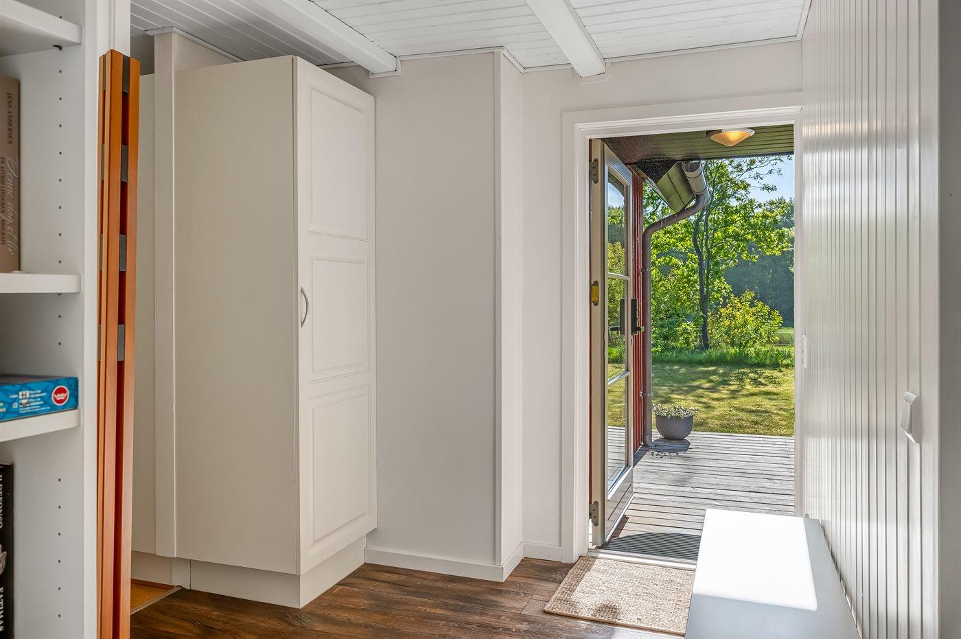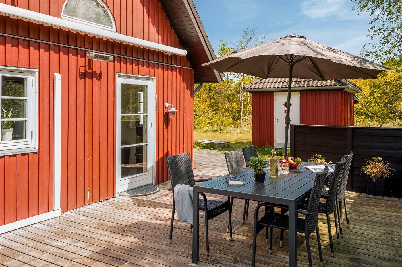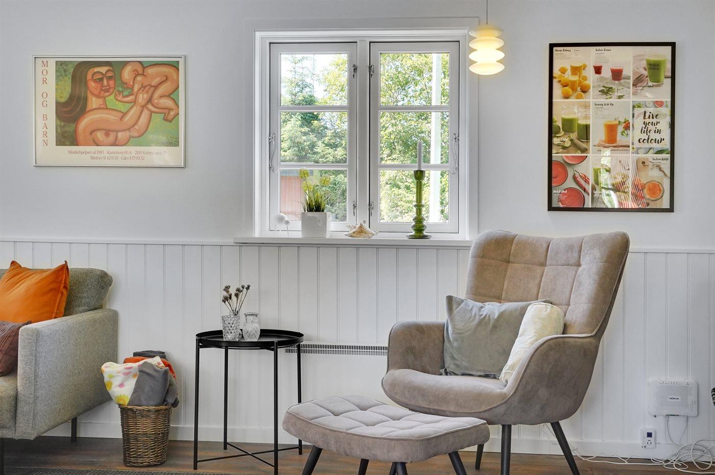 Svensk sommerhus med aktivitetsrum og naturudsigt