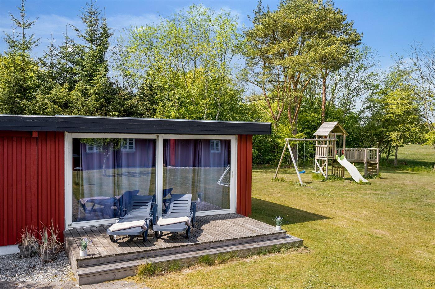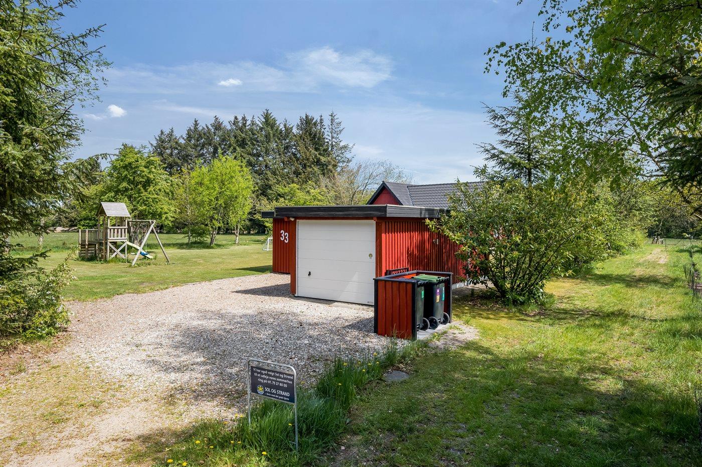 Ferieboligen er beliggende på en 1511 m² stor naturgrund. Der er 12000 m til havet. Nærmeste forretning er beliggende i en afstand af 600 m. Der er en golfbane i en afstand af 9000 m. Til ferieboligen hører åbent terrasseareal. Der er redskabsrum. Gynge. Sandkasse. Trampolin. Der ligger en legeplads i en afstand af 600 m. Grill til rådighed. Der er garage til rådighed. Der er installeret stik til opladning af elbil. Parkering ved ferieboligen.