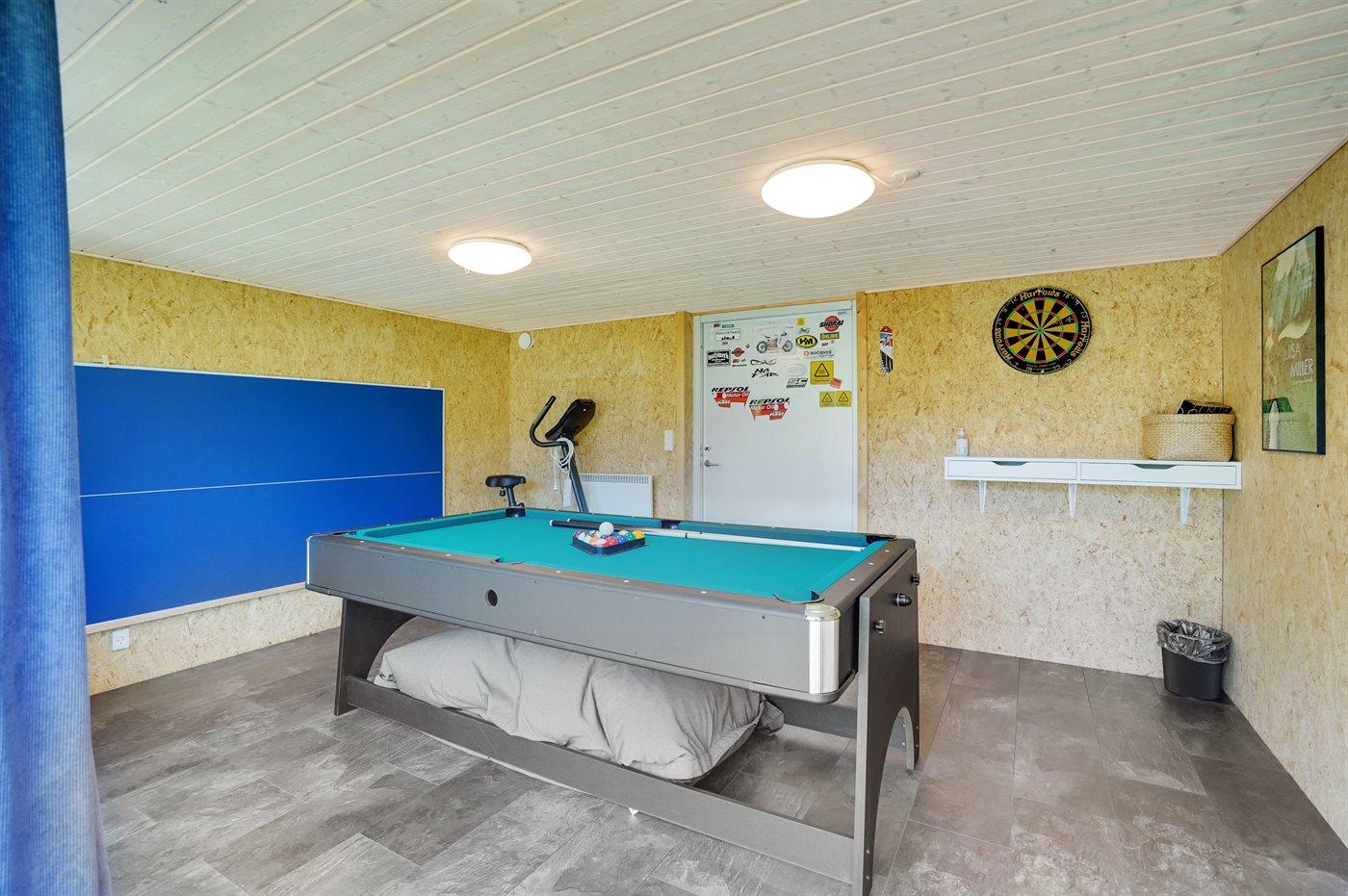 I aktivitetsrummet er der følgende udstyr: Poolbord. Bordtennis. Airhockey.