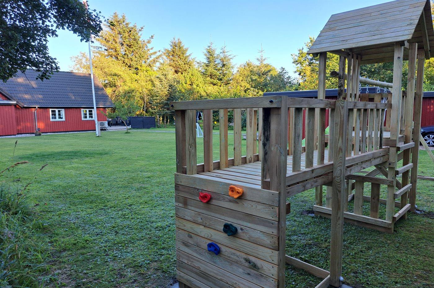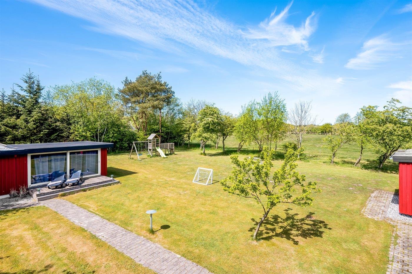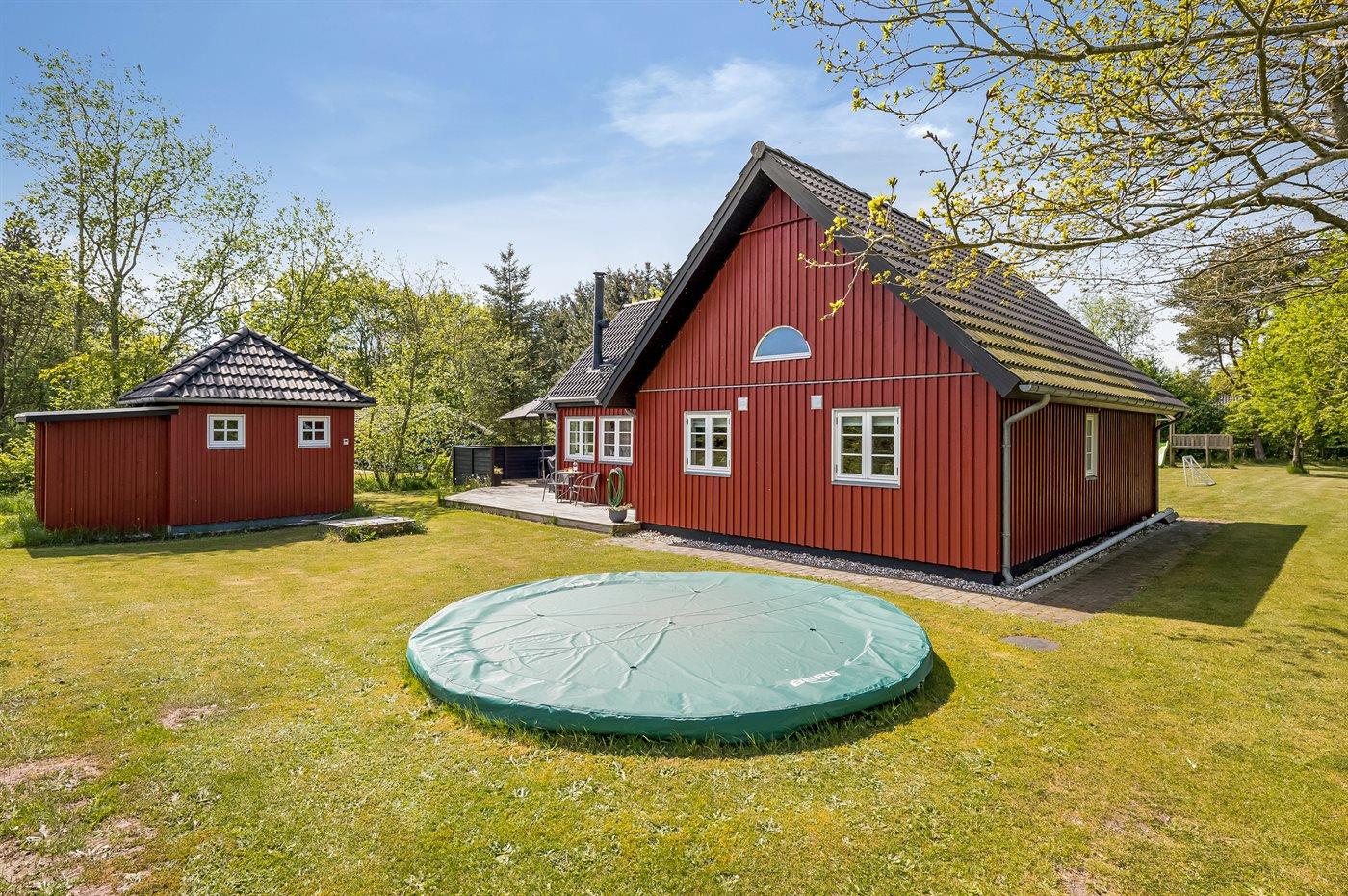 Skønt svensk-inspireret sommerhus med aktivitetsrum, naturgrund og gratis adgang til badeland i Oksbøl.