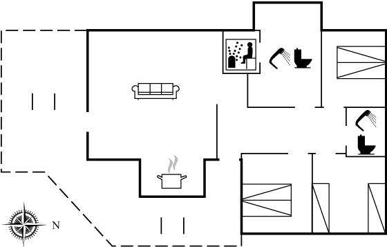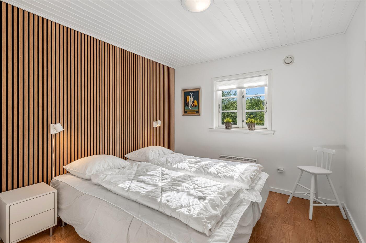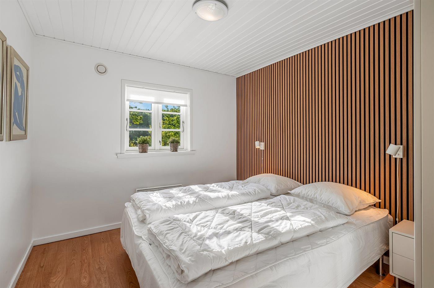 Der er i alt 3 soveværelser. Sovepladserne fordeler sig på: 4 sovepladser i dobbeltsenge. 2 sovepladser i enkeltsenge. Derudover er der 1 stk. barneseng.