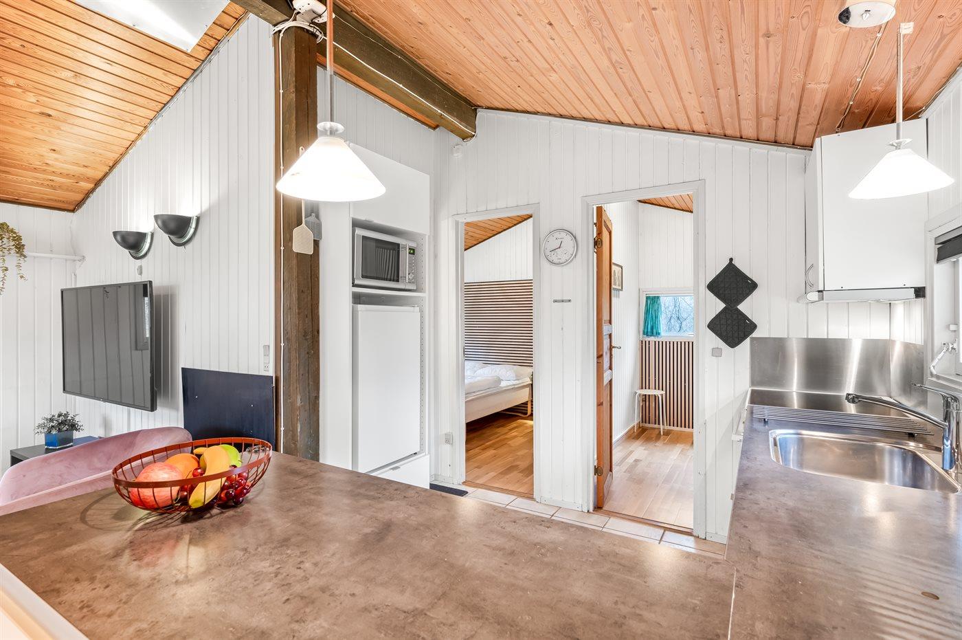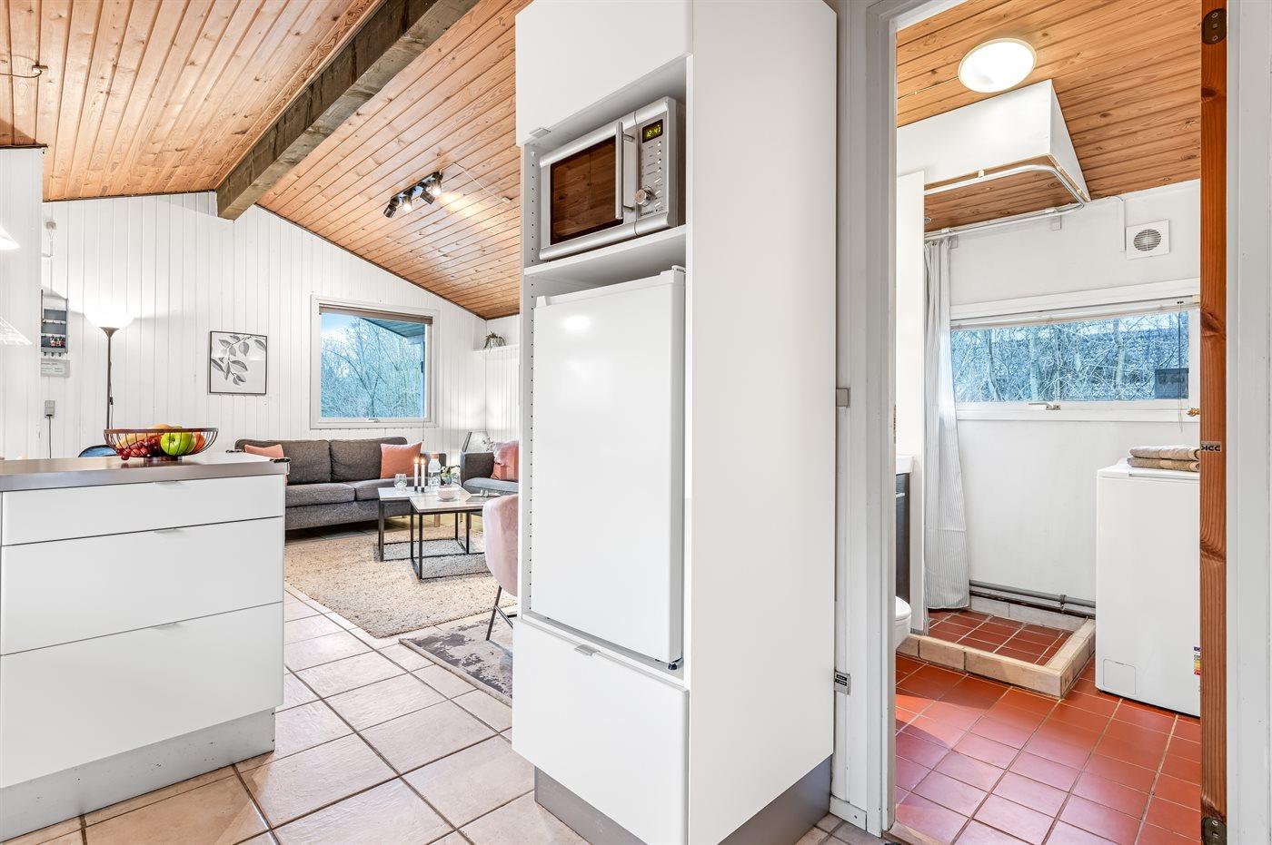 Køkkenet er udstyret med 1 køleskab. Der er 4 keramiske kogeplader, varmluftovn, mikrobølgeovn samt opvaskemaskine.