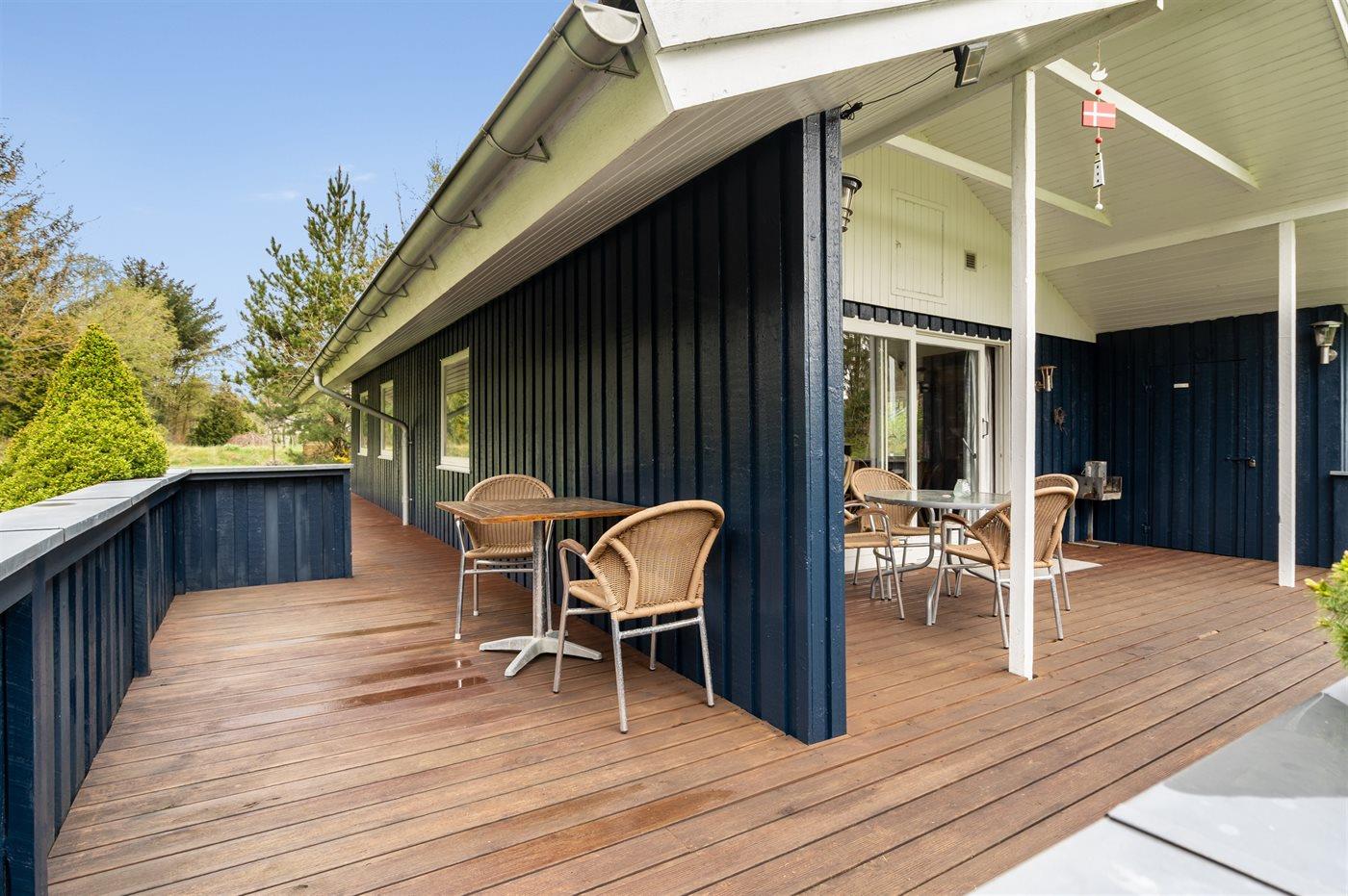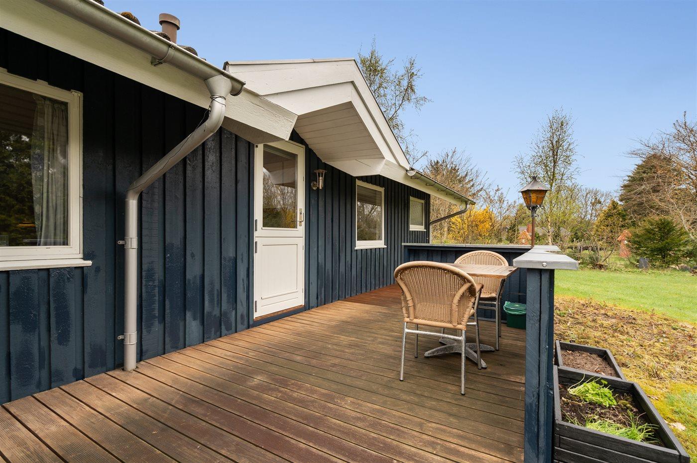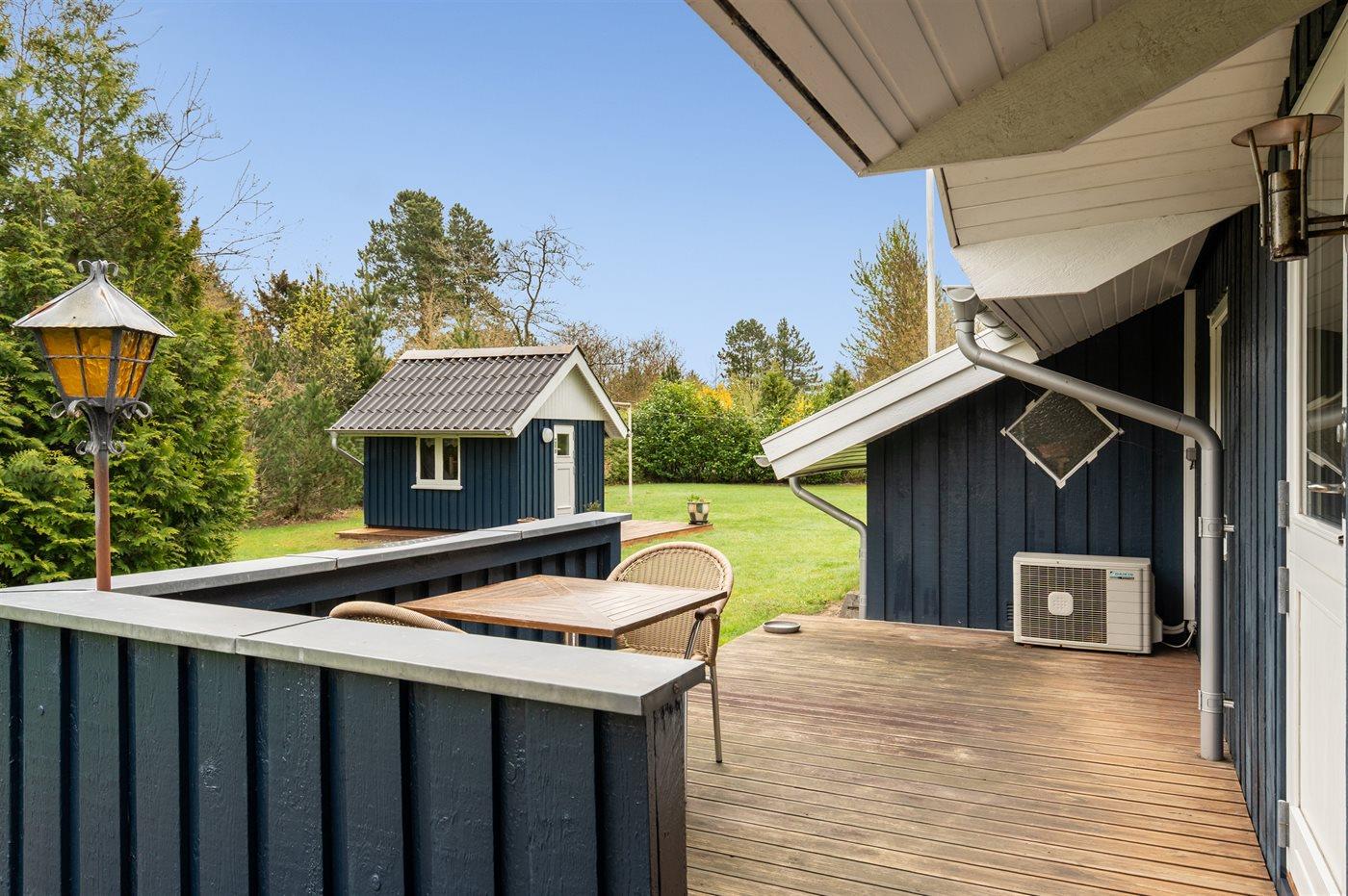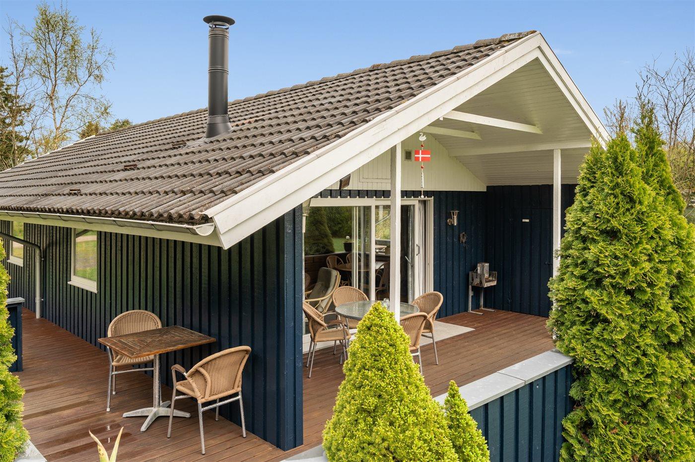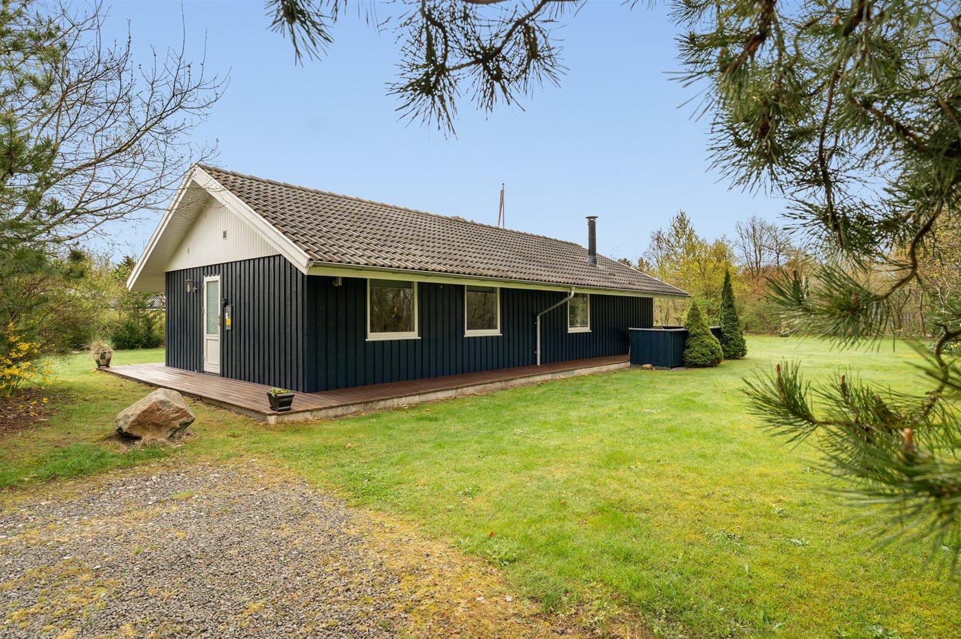 Ferieboligen er beliggende på en 1568 m² stor naturgrund. Der er 10000 m til havet. Nærmeste forretning er beliggende i en afstand af 400 m. Til ferieboligen hører åbent terrasseareal. Desuden er der overdækket terrasse. Sandkasse. Trampolin. Legetårn. Grill til rådighed. Der er installeret stik til opladning af elbil. Type 2 stik. Med 5 kW ladeeffekt.