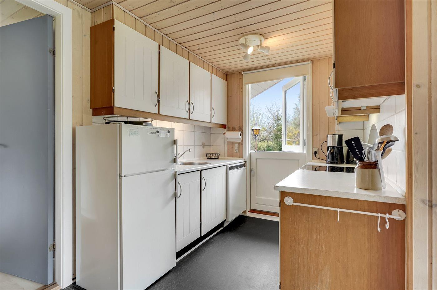 Køkkenet er udstyret med 1 køleskab. Der er 4 keramiske kogeplader, varmluftovn samt opvaskemaskine.