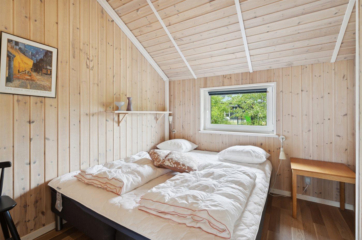 Der er i alt 4 soveværelser. Sovepladserne fordeler sig på: 6 sovepladser i dobbeltsenge. 1 soveplads i enkeltseng. Derudover er der 1 stk. barneseng.