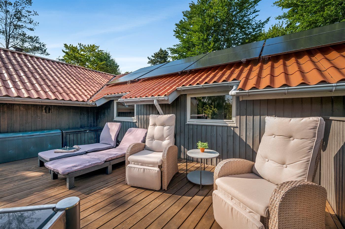 Der er opsat solceller, hvilket sikrer et lavt strømforbrug i huset. Huset er dermed energivenligt og lige noget for dig, der hellere vil bruge pengene på en ekstra is på ferien end på strømmen.