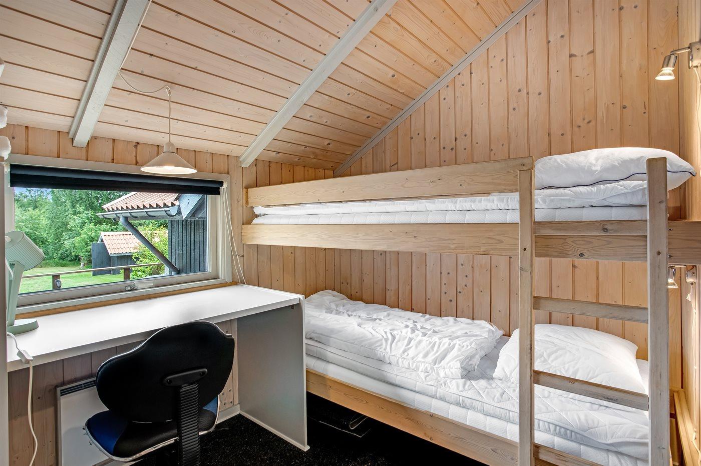 Der er i alt 3 soveværelser. Sovepladserne fordeler sig på: 4 sovepladser i dobbeltsenge. 2 sovepladser i køjeseng.