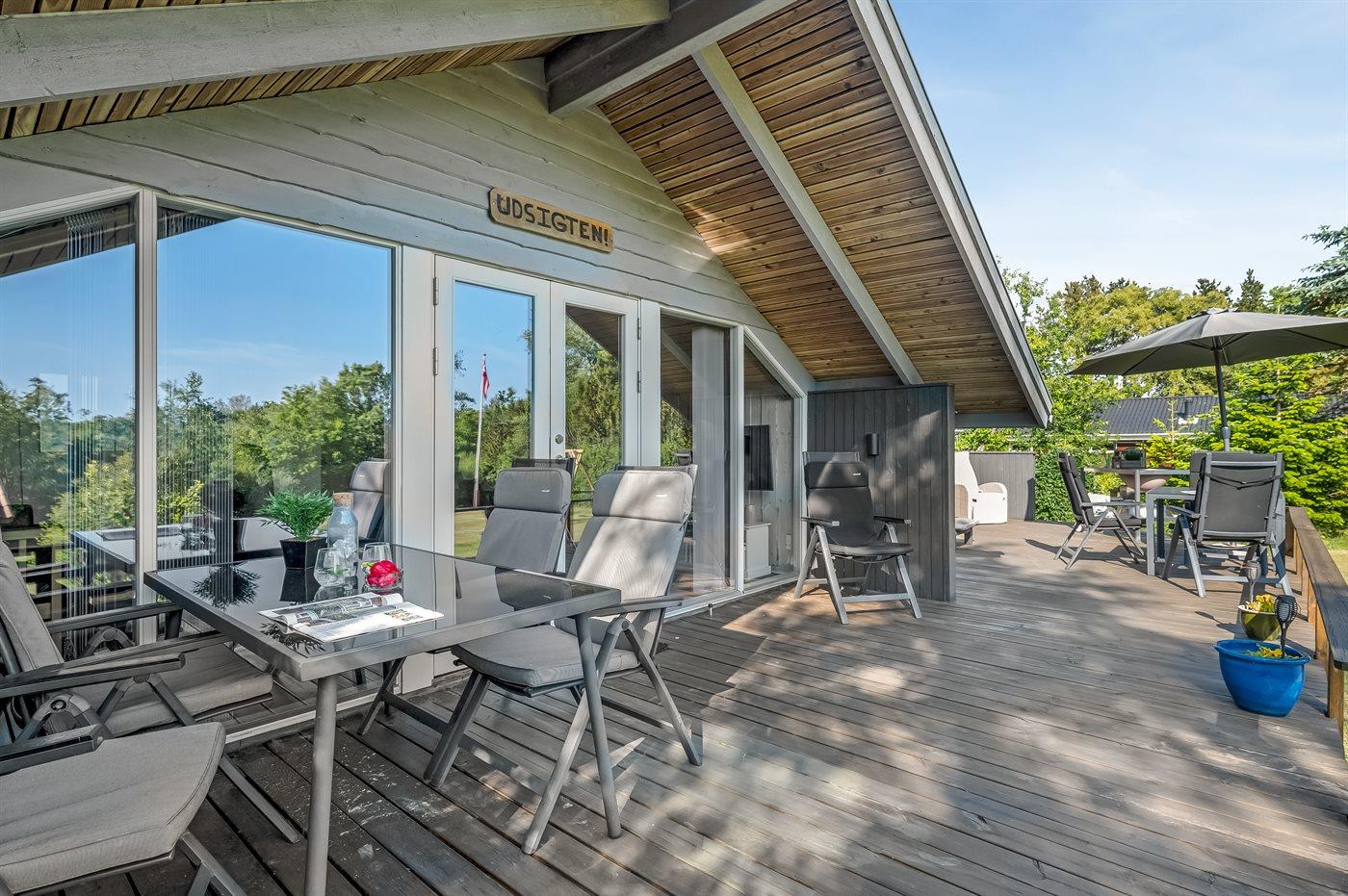 Et flot og virkelig velholdt sommerhus med skøn træterrasse. Huset, som er løbende renoveret, ligger på en grund, som grænser op mod et flot naturområde.