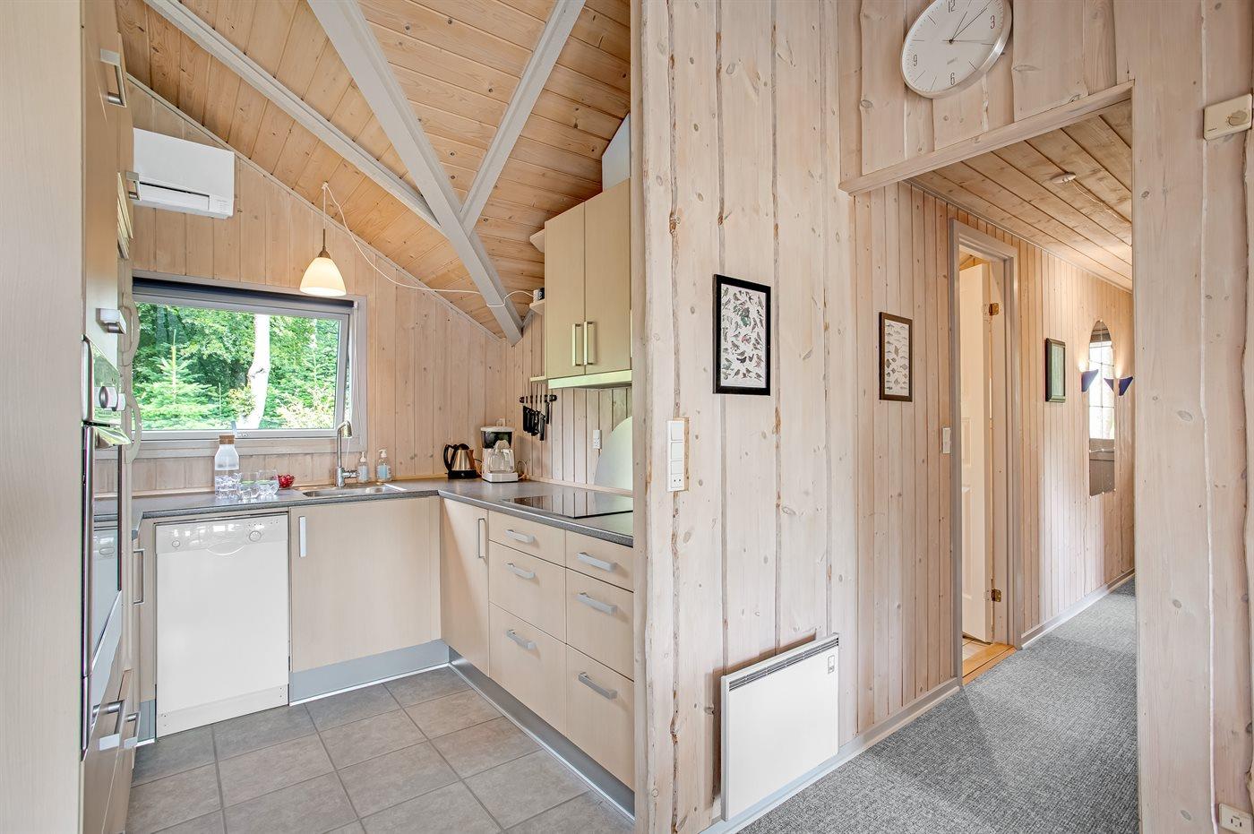 Køkkenet er udstyret med 1 køleskab. Der er 4 keramiske kogeplader, miniovn, varmluftovn, mikrobølgeovn samt opvaskemaskine.