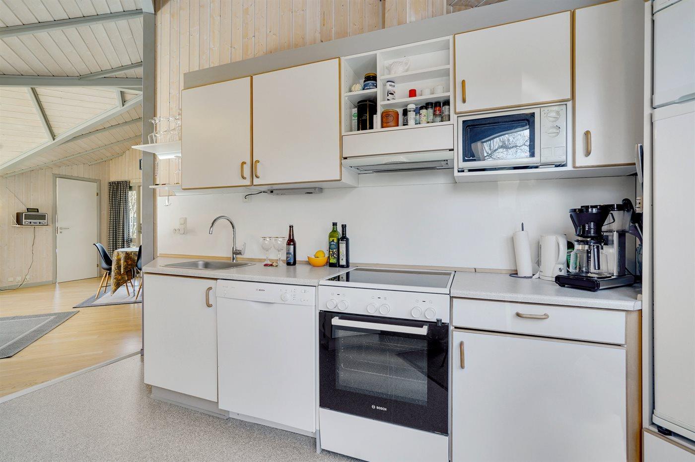 Køkkenet er udstyret med 1 køleskab. Der er 4 keramiske kogeplader, varmluftovn, mikrobølgeovn samt opvaskemaskine.