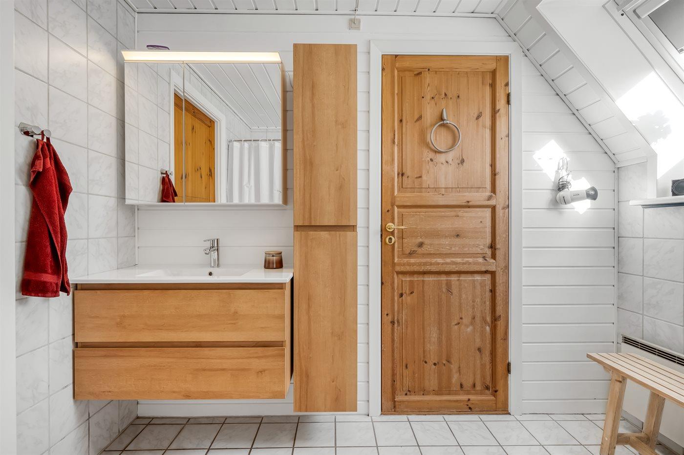 Der er 1 badeværelse med bruseniche og 1 toilet., heraf 1 gæstetoilet. Der er gulvvarme på 1 badeværelse.