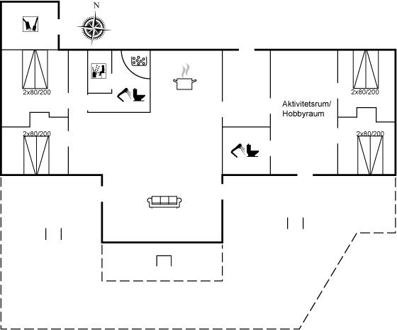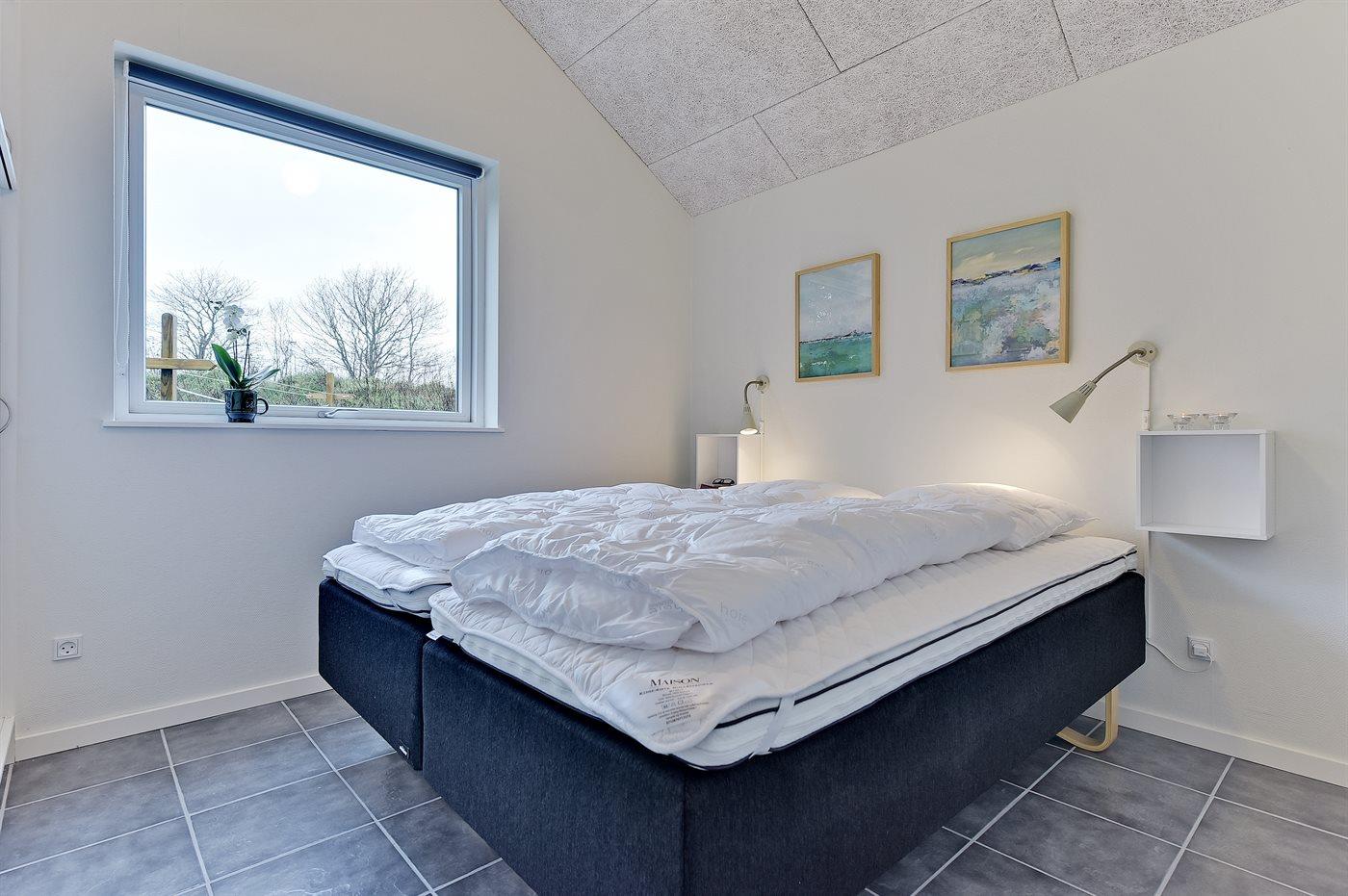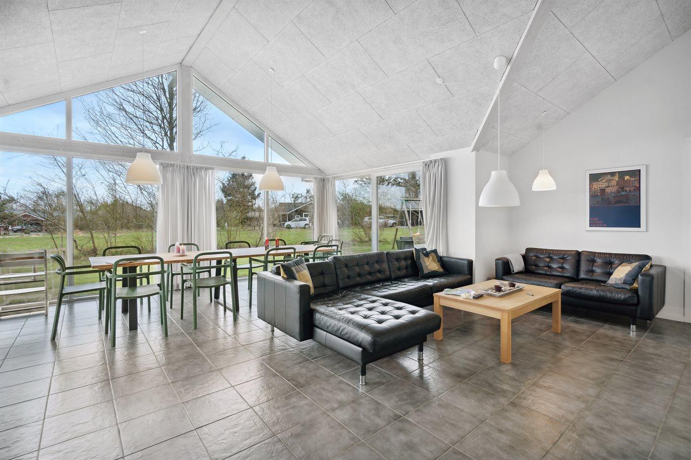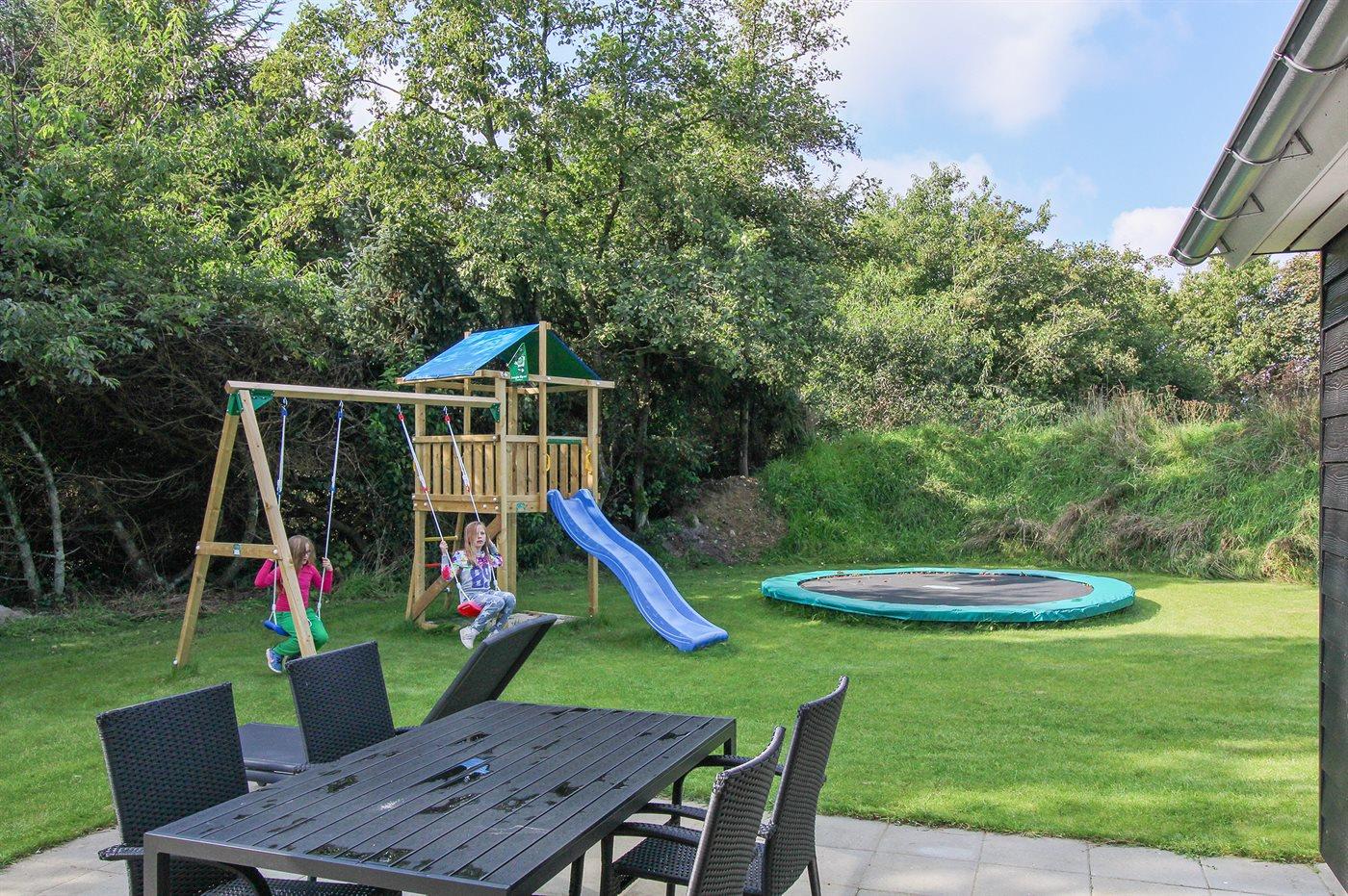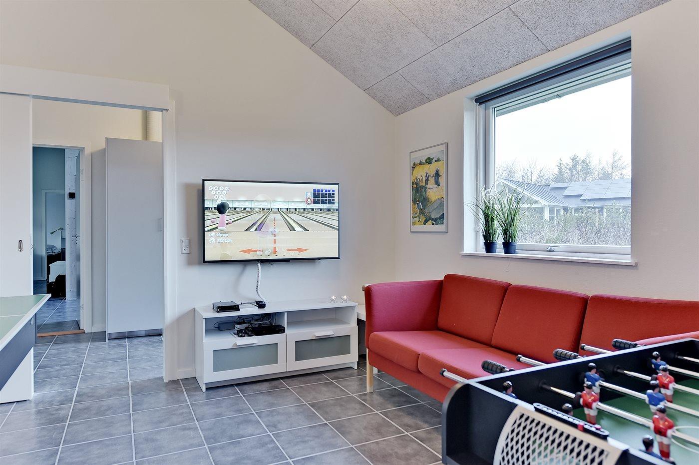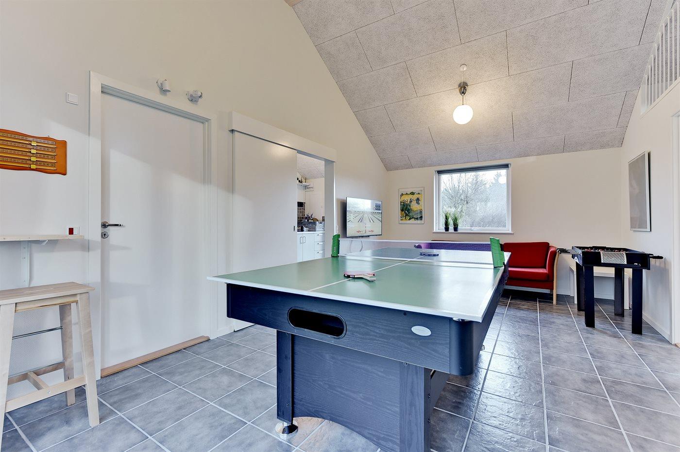 Dette dejlige og rummelige sommerhus ligger på en stor grund, hvor de yngste feriegæster kan boltre sig. Huset ligger i et børnevenligt område med dejlig natur samt mange seværdigheder og udflugtsmål. Huset er indrettet med én stor hems, hvor I finder de 2 sovepladser på madrasser. Sommerhuset egner sig til 10 personer samt 1 barn op til 3 år. Ferieboligen er på 149 m² og er bygget i 2017. Det er tilladt at medbringe 1 husdyr. Ferieboligen er udstyret med 1 energibesparende jordvarmepumpe. Der er solvarmeanlæg. Hele ferieboligen er opvarmet med vandbaseret gulvvarme. Ferieboligen har vaskemaskine. Tørretumbler. Til de små er der 1 stk. barnestol. Ferieboligen er beliggende på en 1663 m² stor naturgrund. Der er 12 km til havet. Der en fiskesø i en afstand af 3000 m. Nærmeste forretning er beliggende i en afstand af 600 m. Der er en golfbane i en afstand af 7000 m. Til ferieboligen hører 3 terrasser på samlet 66 m². På grunden er der en stor græsplæne og der er gynger, sandkasse, trampolin, legetårn, rutchebane og 2 fodboldmål. Grill til rådighed. Der er installeret stik til opladning af elbil. Type 2 stik. Der er god plads til parkering ved ferieboligen. I aktivitetsrummet er der følgende udstyr: TV med Nintendo Wii mini, billard, bordtennis og mini bordfodbold. Der er i alt 4 soveværelser. Sovepladserne fordeler sig på: 8 sovepladser i dobbeltsenge. 2 sovepladser på madrasser på hemsen. Derudover er der 1 stk. barneseng. Køkkenet er udstyret med 1 køleskab samt fryser med en kapacitet på 87 liter. Der er 4 keramiske kogeplader, varmluftovn, mikrobølgeovn samt opvaskemaskine. Der er 2 badeværelser med bruseniche, toilet og håndklædetørrer. I saunaen og i den indendørs spa til 2 personer er der mulighed for afslapning. I ferieboligen er der 2 TV. 1 DVD-afspiller. Radio. CD-afspiller. Der er mindst 4 danske, 1-3 svenske, 1-3 norske kanaler og 1-3 engelske TV-kanaler. Desuden mange tyske kanaler via parabol Astra. Der er gratis trådløst internet til rådighed (30/30 Mbit).