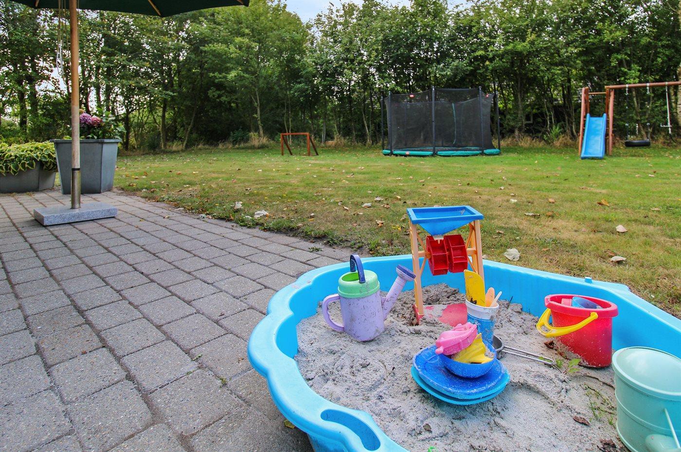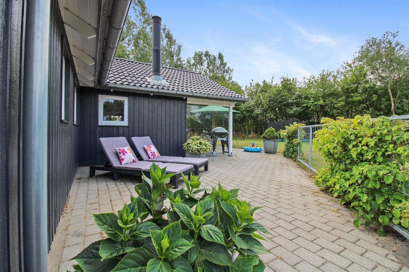 Ferieboligen er beliggende på en 1580 m² stor naturgrund. Der er 12000 m til havet. Nærmeste forretning er beliggende i en afstand af 700 m. Til ferieboligen hører 80 m² terrasseareal. Desuden er der 12 m² overdækket terrasse. Gynge. Sandkasse. Trampolin. Rutchebane. Bålsted. 1 gasgrill står til rådighed. Der er installeret stik til opladning af elbil. Parkering ved ferieboligen.