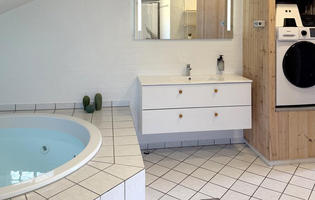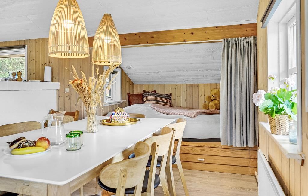 Velkommen til dette indbydende feriehus, som især vil passe godt til en børnefamilie. Her får I den perfekte blanding af moderne bekvemmeligheder, hygge og et godt udvalg af fritidsaktiviteter. Træd indenfor og nyd atmosfæren i den lyse stue med brændeovn, så I kan altid tænde op efter en frisk gåtur. Sæt jer godt til rette i den store sofagruppe og stream en god film i fjernsynet. Der er god plads til de kulinariske udfoldelser i køkkenet, hvor I kan sammensætte en lækker feriemiddag. Når dagen går på hæld, er det skønt at læne sig tilbage i spabadet eller få varmen i saunaen.