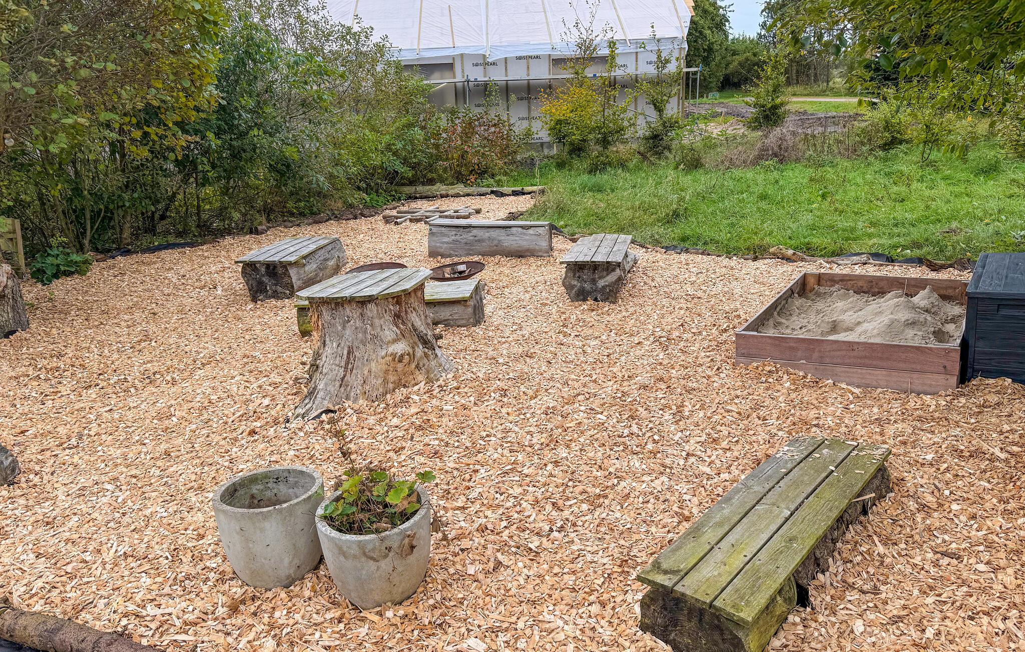 De solrige dage tilbringes på den brede terrasse. Slå jer ned ved havebordene og nyd den friske luft. Mens børnene hopper løs på trampolinen og leger i sandkassen, kan I nyde en stille stund i havemøblerne eller vildmarksbadet. Børnene vil sikkert også synes, det er hyggeligt med bål i haven.