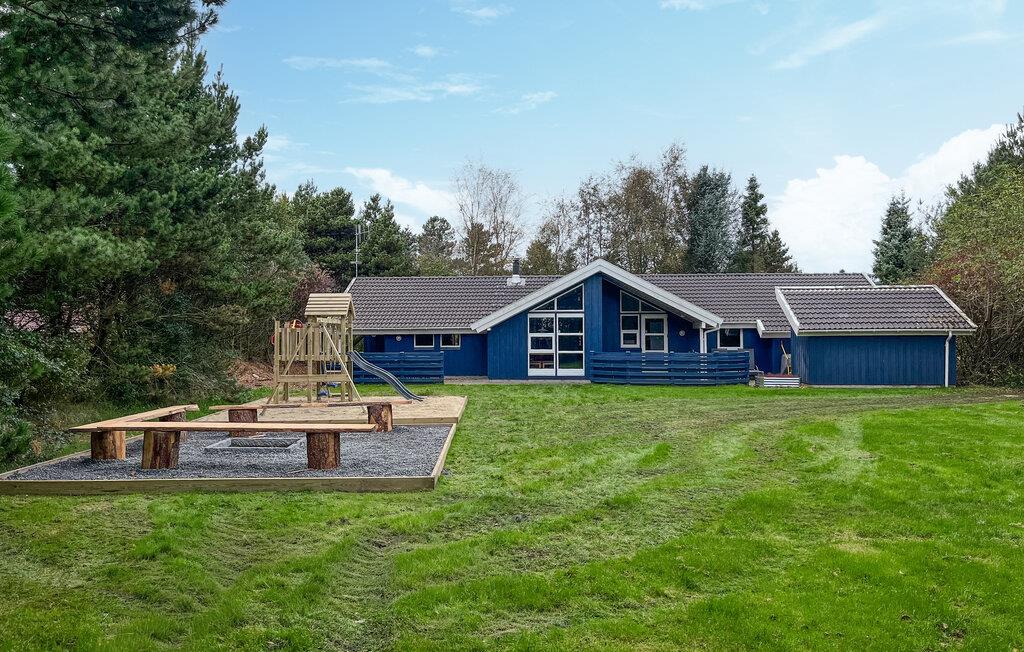Et rigtig flot feriehus beliggende på en stor, ugenert naturgrund med legeborg, gynger, sandkasse samt flere legeredskaber. Feriehuset byder bl.a. på et dejligt badeværelse med stort spabad samt adgang til sauna. Alle soveværelser er udstyret med tv med mulighed for tilkobling af diverse spillekonsoller. Fra det rummelige køkken/alrum med klinker, gulvvarme og brændeovn, er der direkte udgang til flere flisebelagte, læfyldte terrasser. Huset har en unik beliggenhed med gåafstand til aktivitetscenter, hoppeborge, indkøbsmuligheder samt restaurant.