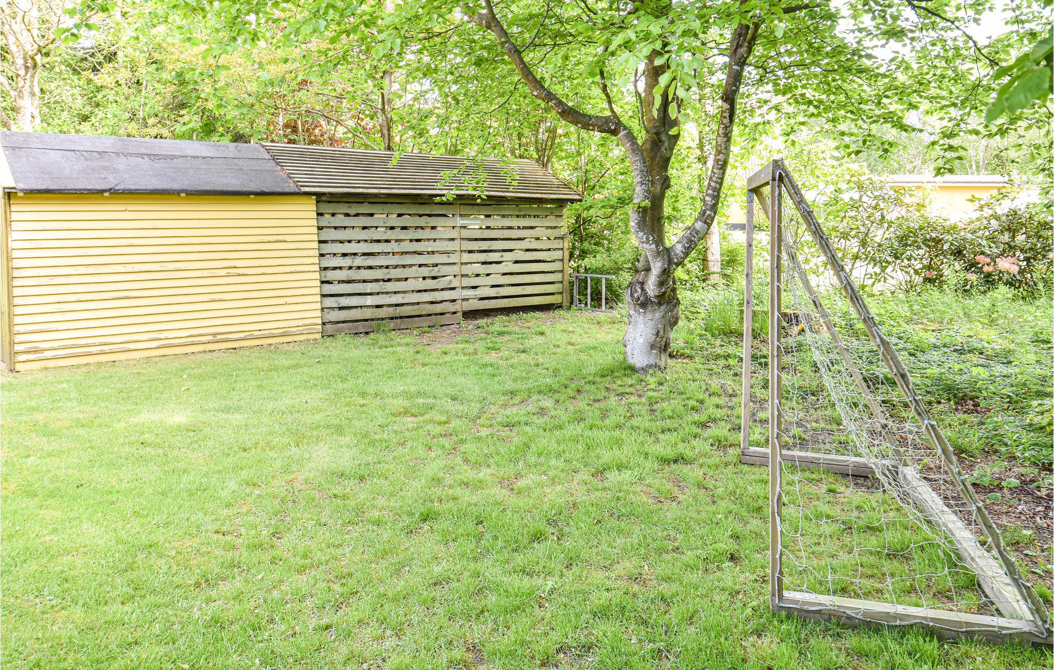 På en stor og delvis lukket naturgrund ligger dette aktivitetsferiehus med bordfodbold. Det er indrettet med et godt og rummeligt køkken/alrum med brændeovn samt klimaanlæg. Til huset hører også en skøn terrasse, hvor familien kan sidde og nyde eftermiddagskaffen eller sole sig på varme sommerdage. I haven er der både legehus, gynge, sandkasse og fodboldmål, og I kan også tage et spil petanque. Efter en dejlig udflugtsdag er det skønt at komme hjem til feriehuset, parkere bilen i carporten, lave lækker aftensmad på grillen for derefter at slappe af foran fjernsynet, måske tage et spil kort eller brætspil.