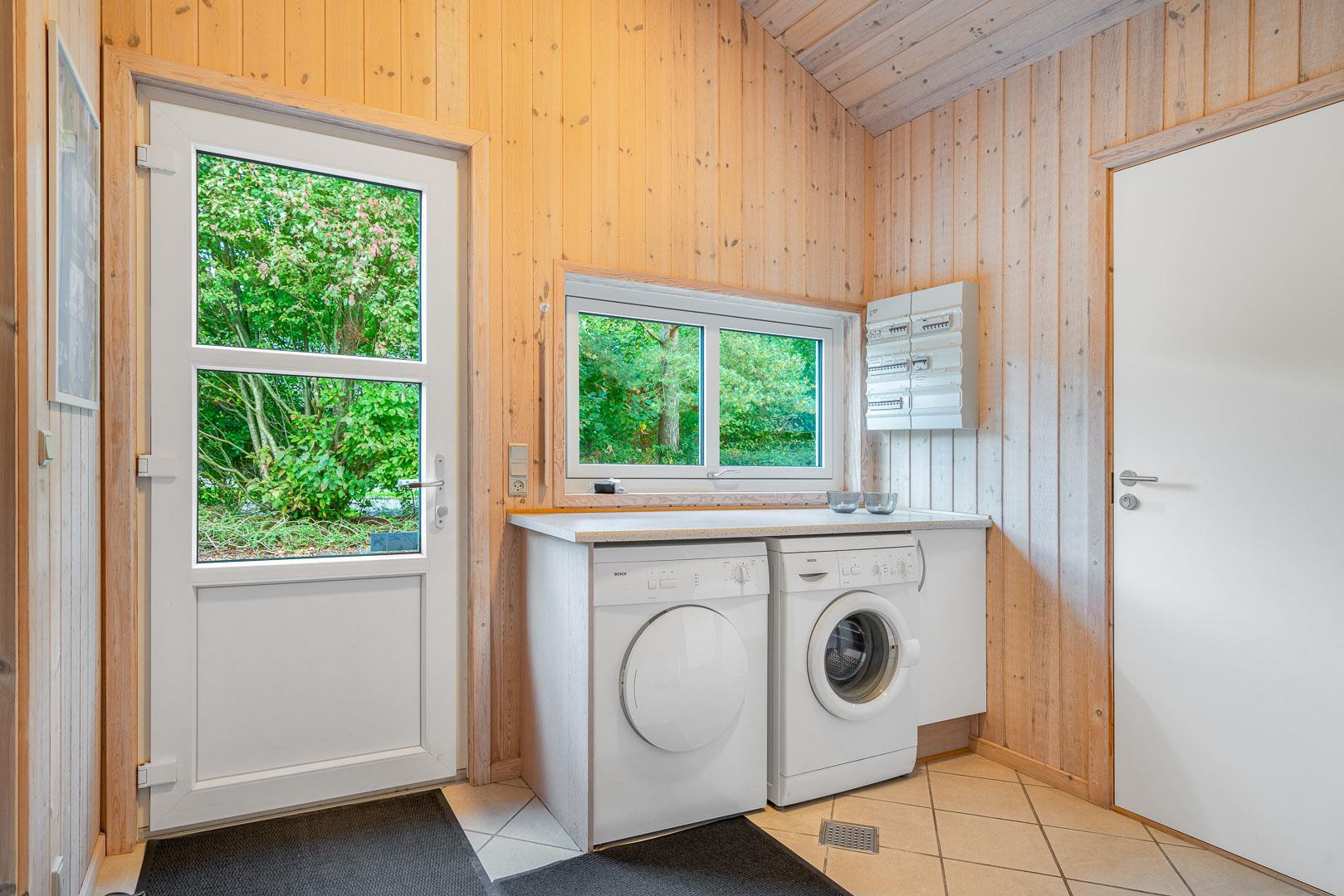 Desuden findes både vaskemaskine og tørretumbler – perfekt til længere ophold, hvor komfort og frihed er i højsædet.