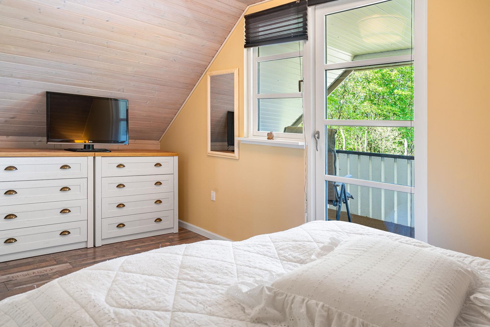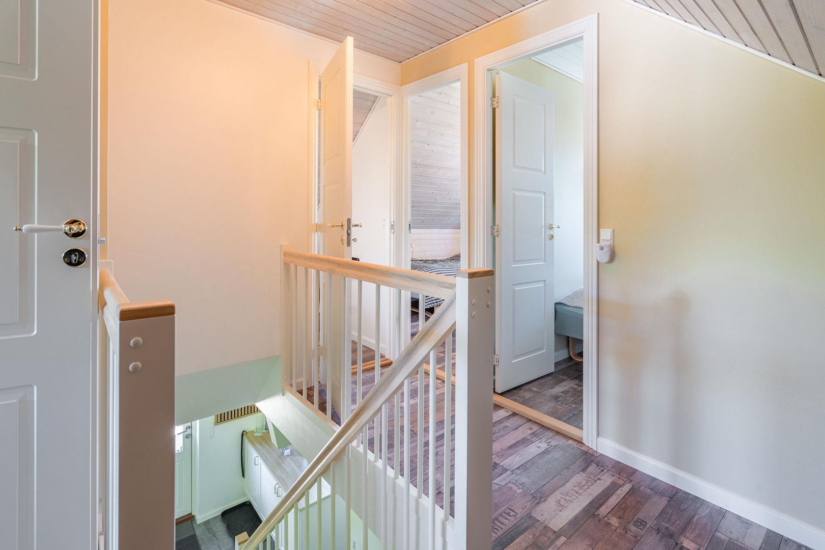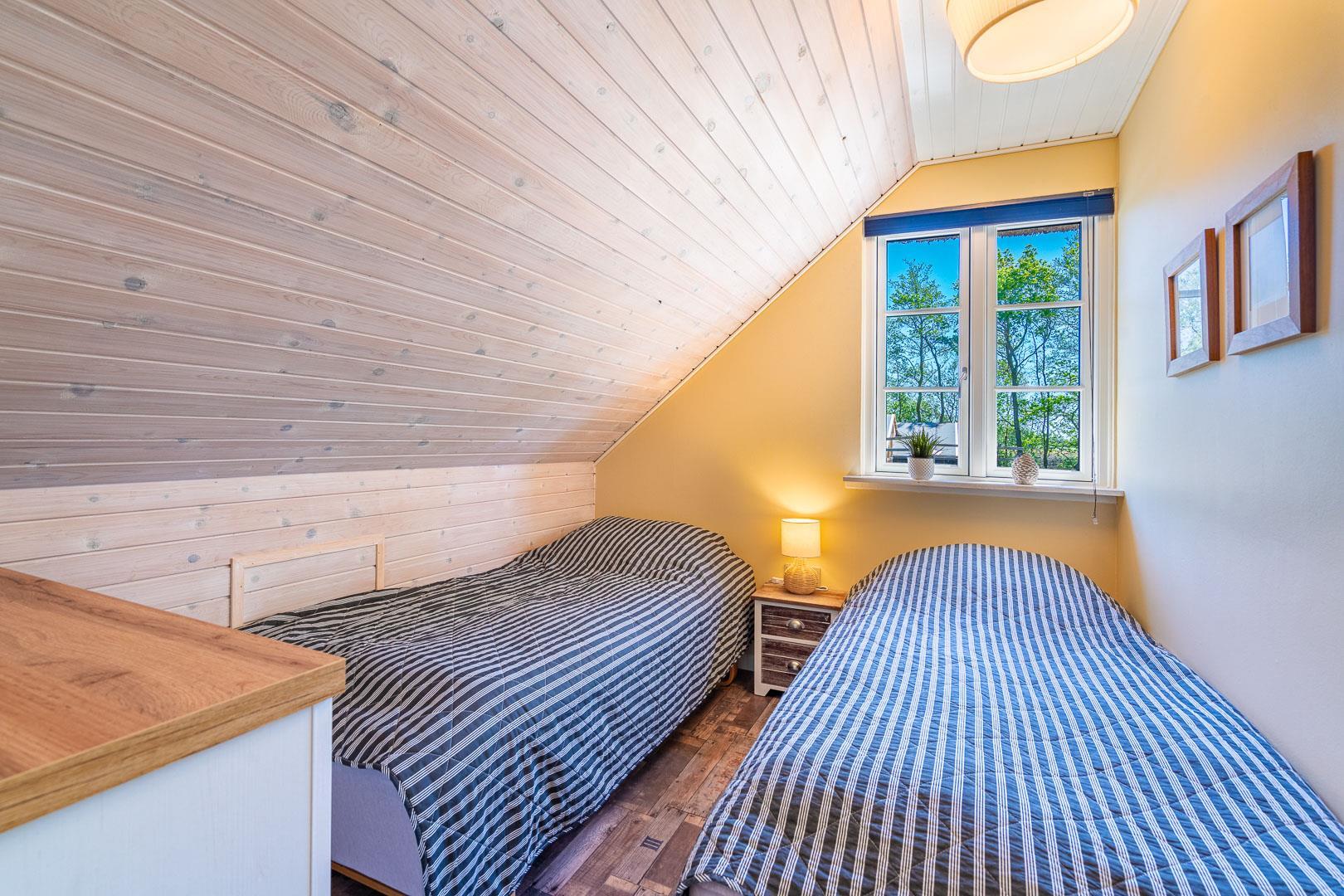 Der er i alt 3 soveværelser: ét med dobbeltseng og to med hver to enkeltsenge – perfekt til børnefamilier eller vennepar.