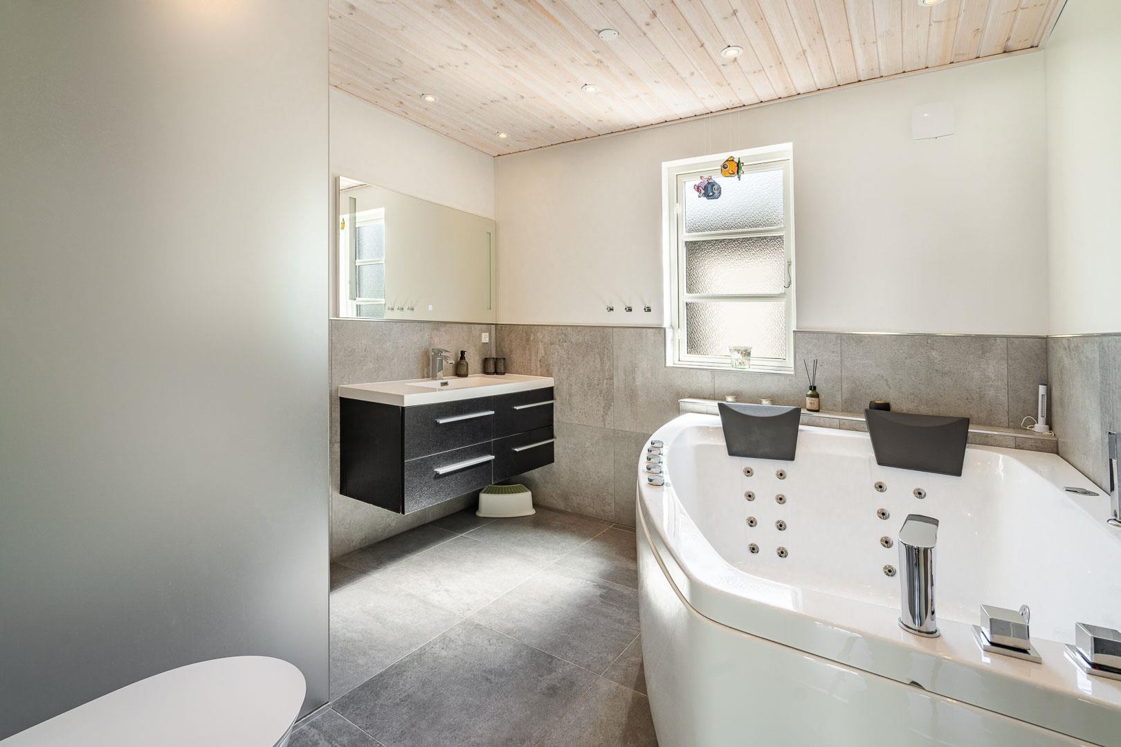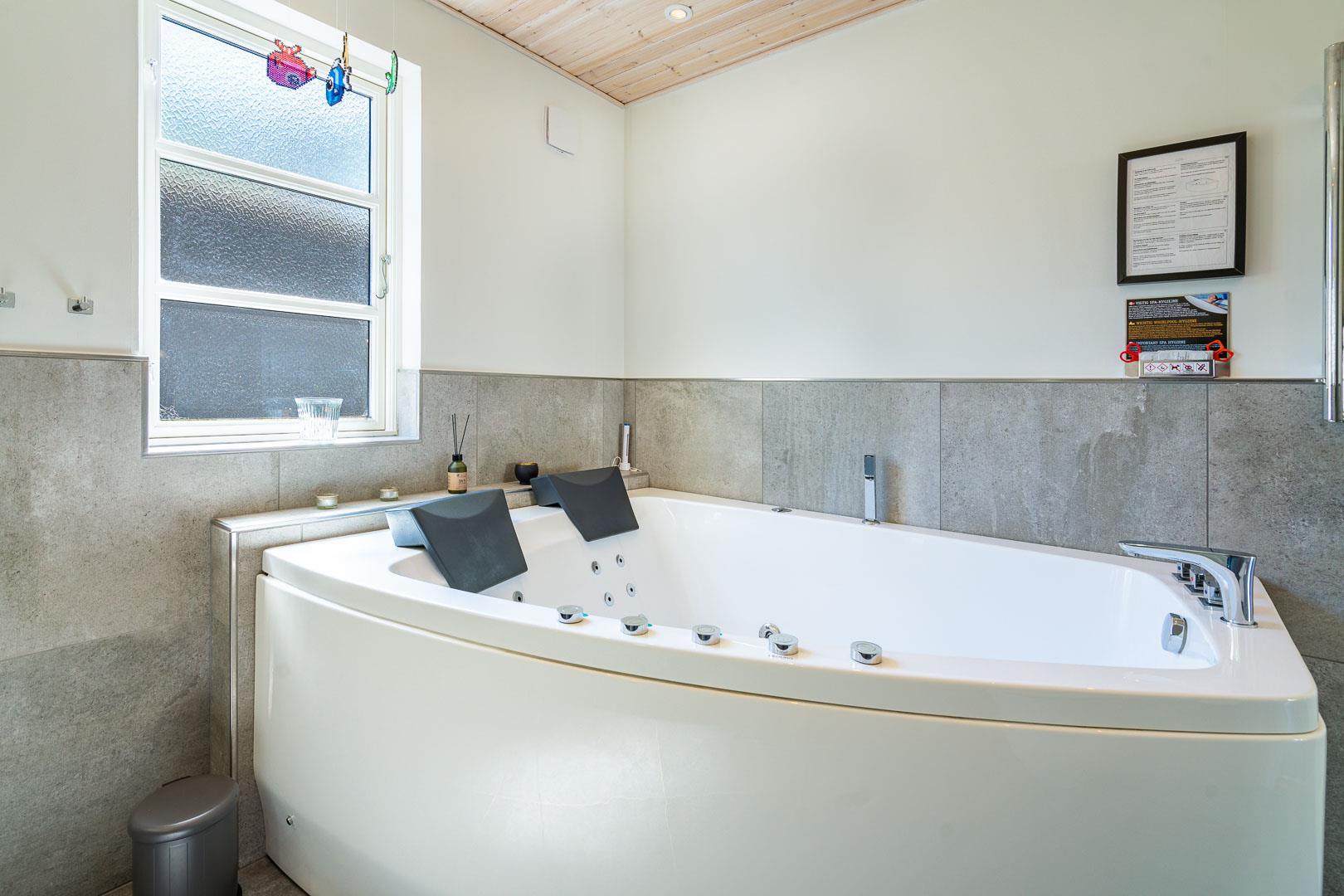Efter en lang dag ved stranden kan du nyde et afslappende boblebad i spaen. Med gulvvarme på badeværelset er der også sørget for varme fødder.