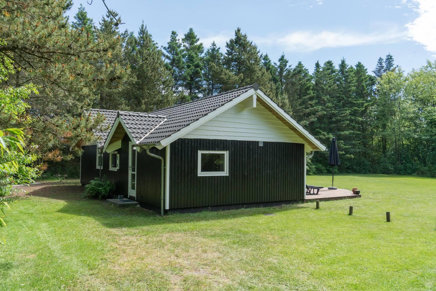 Sommerhuset ligger fredeligt midt i det familievenlige Jegum Ferieland, omgivet af skov og hede med gode stier til gå- og cykelture. Trods den rolige beliggenhed er der kun 400 meter til områdets købmand – perfekt til friskbagt morgenbrød eller hurtige indkøb.