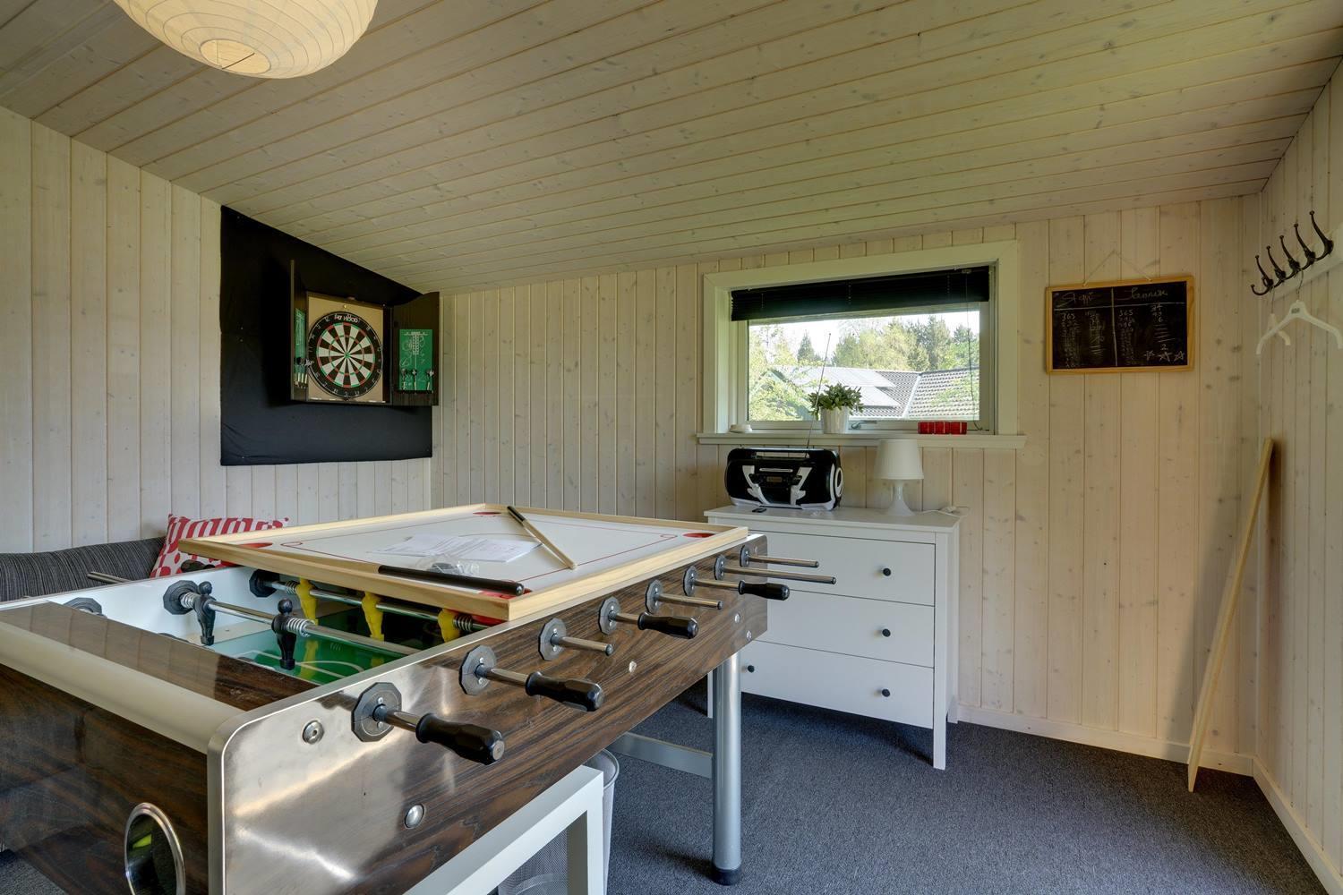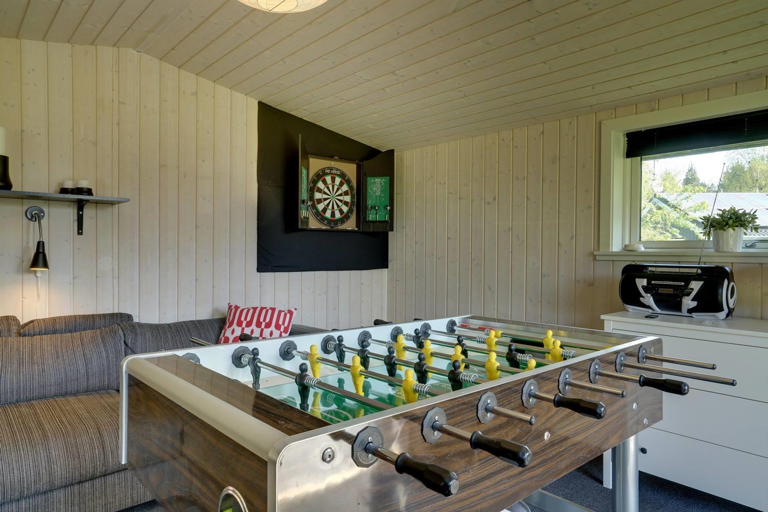 I det tilhørende anneks finder I et aktivitetsrum, hvor både børn og voksne kan udfordre hinanden i bordfodbold og dart. Her er der plads til grin, turneringer og hyggelige stunder – uanset vejret.