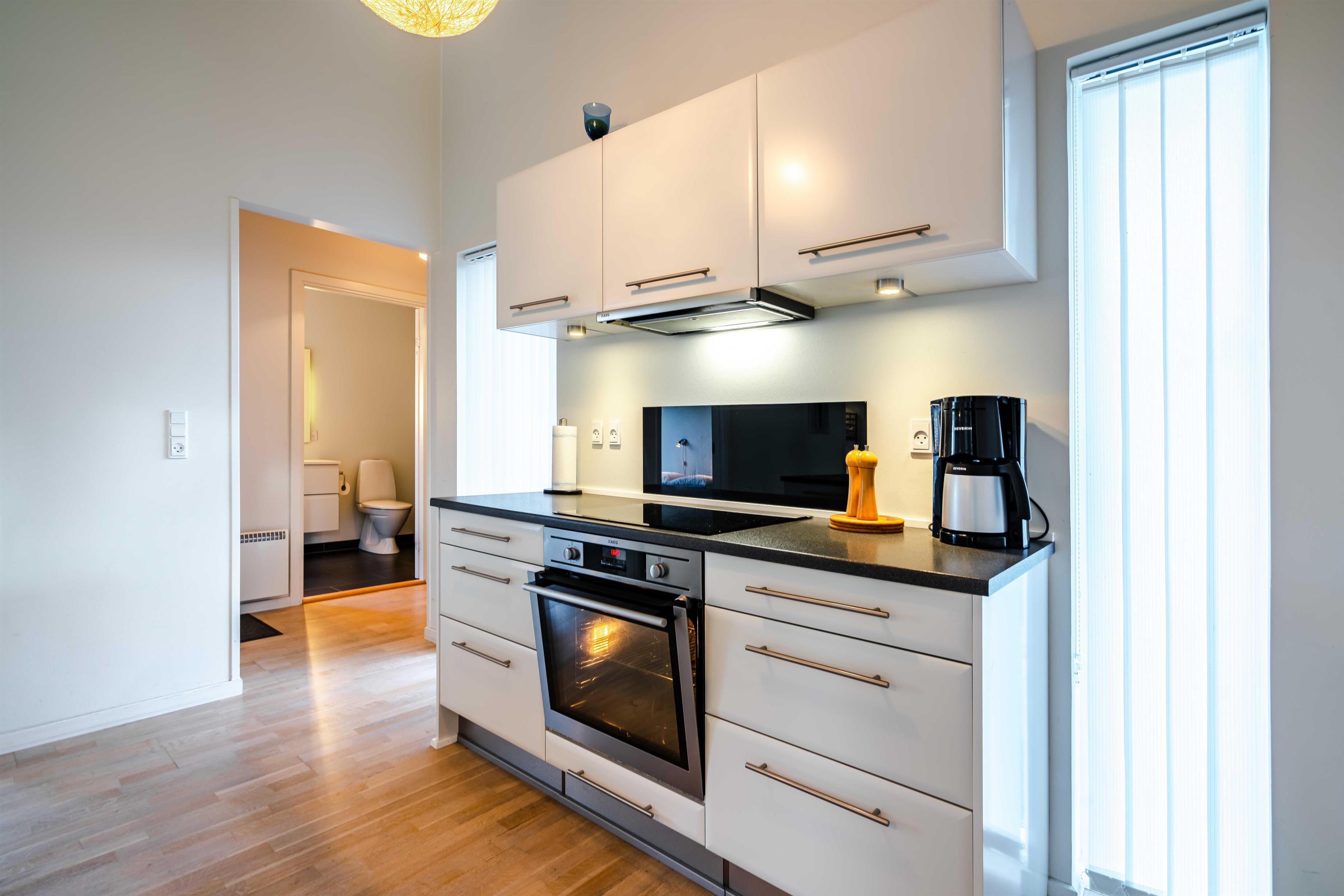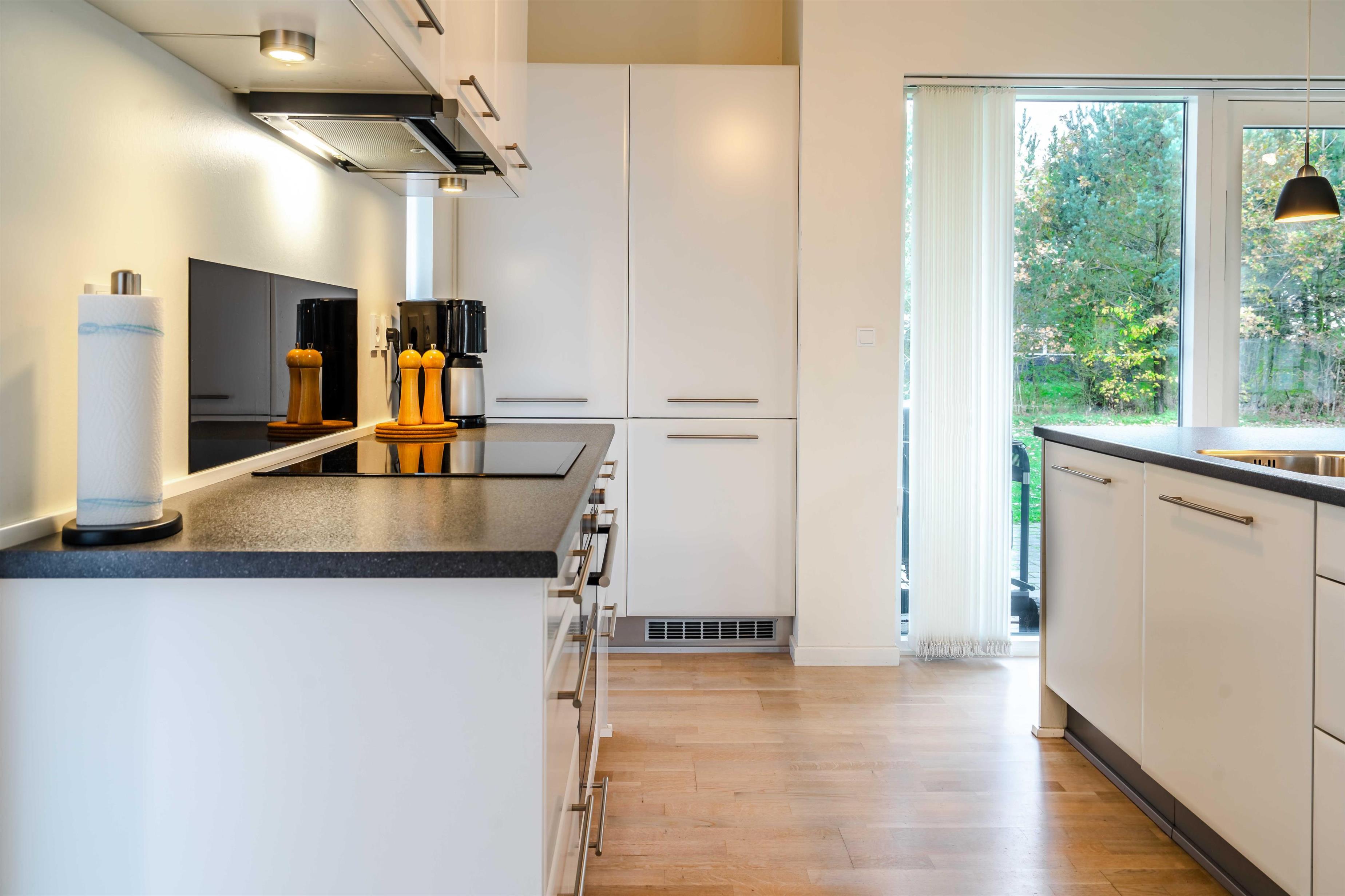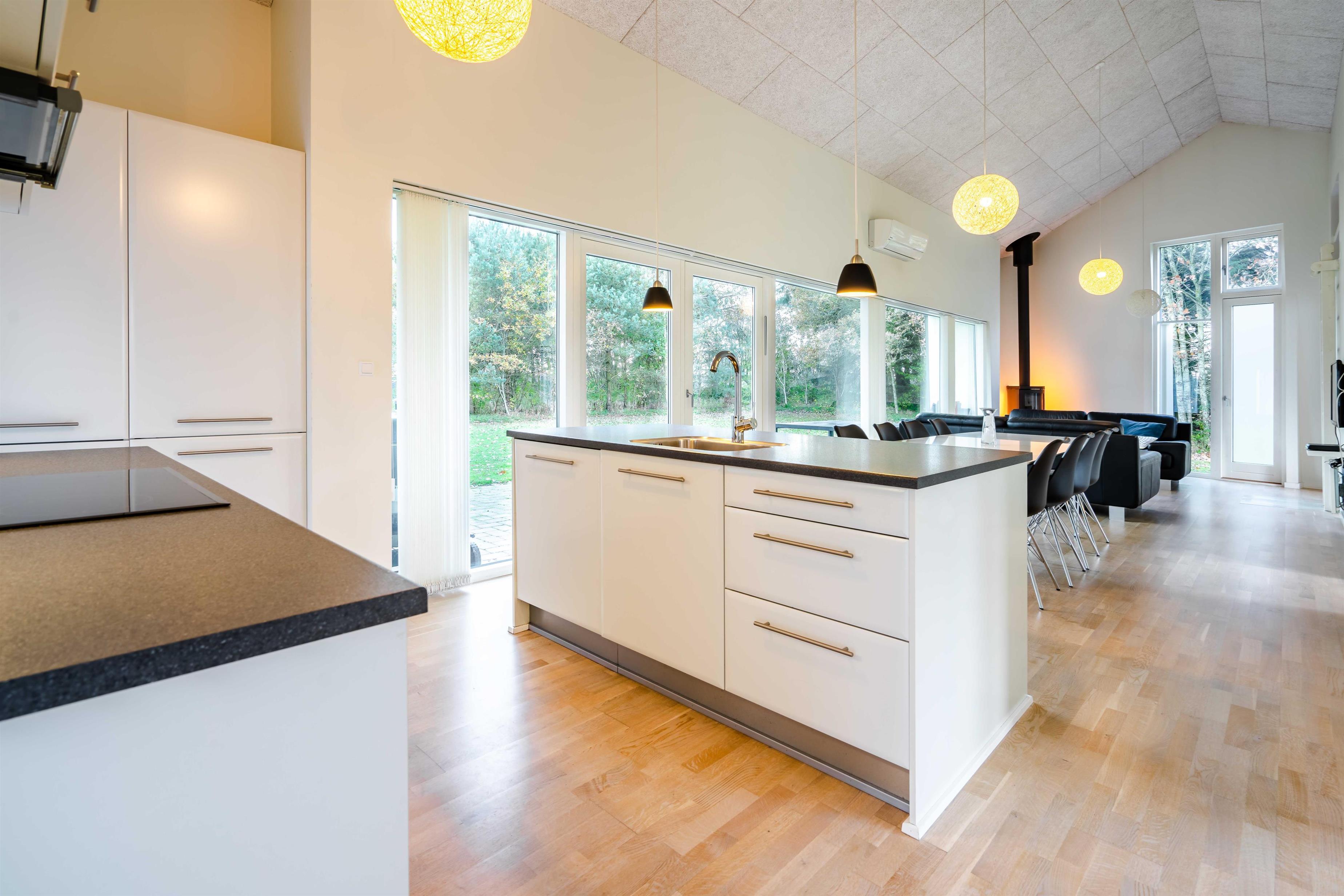 På Blomstervangen 157 finder I et lyst og indbydende sommerhus, hvor moderne faciliteter møder klassisk, nordisk hygge. Den rummelige stue med brændeovn indbyder til afslapning efter en dag i naturen, og i det veludstyrede køkken med opvaskemaskine kan I nemt samles om madlavningen.
