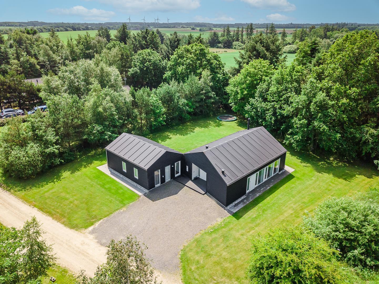 Dette moderne aktivitetssommerhus i Jegum Ferieland byder på 149 m² fyldt med hygge, komfort og masser af plads til hele familien – op til 8 personer og 2 hunde er velkomne.