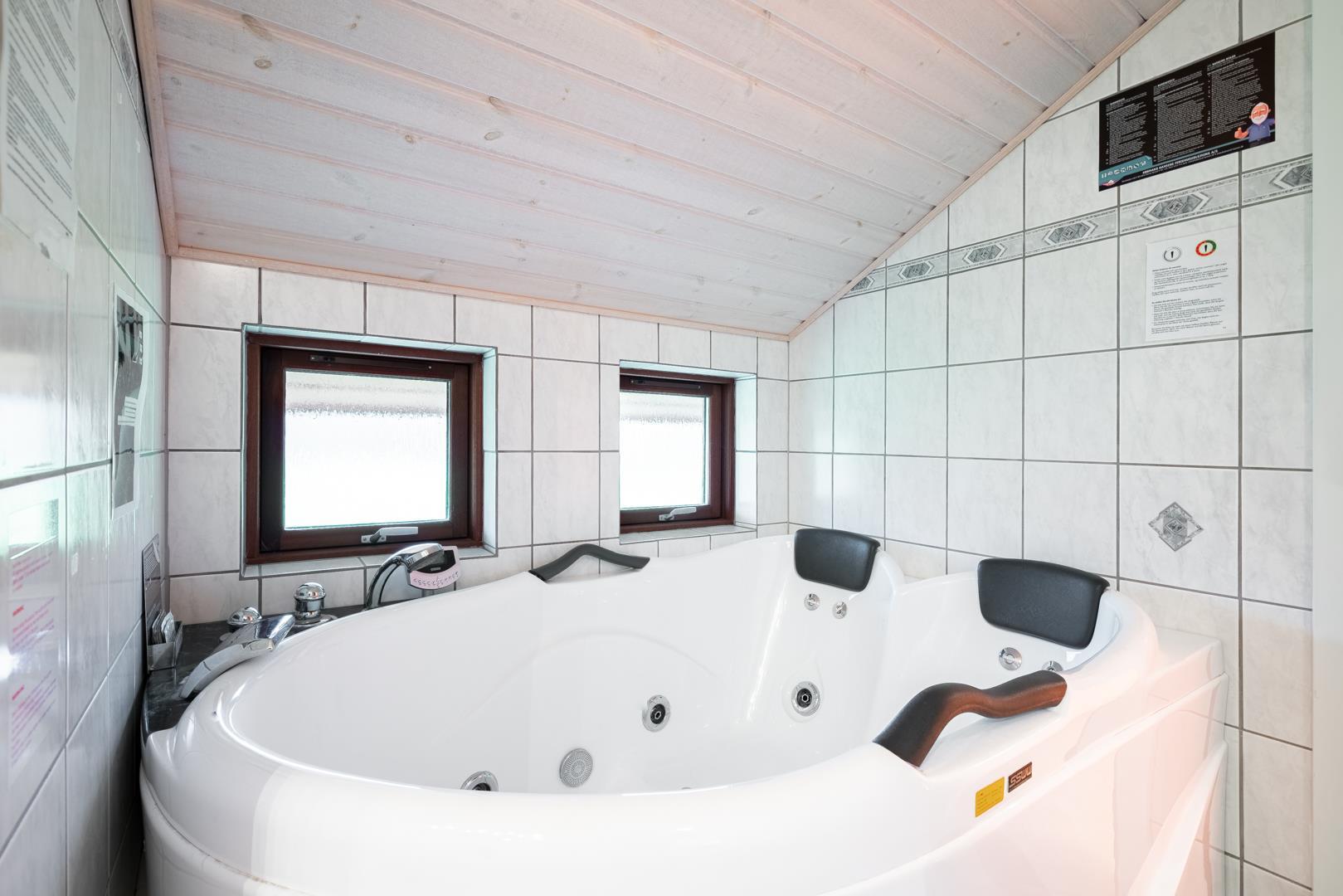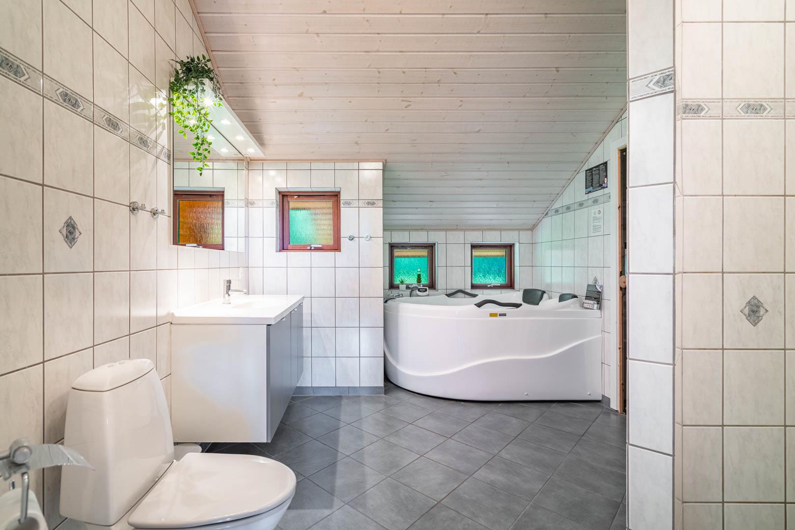 Huset rummer 3 soveværelser med gode sengepladser til 6 personer (3 dobbeltsenge á 160 x 200 cm). Derudover er der 2 badeværelser – begge med gulvvarme. Her kan du forkæle dig selv i saunaen eller slappe af i spabadet efter en aktiv dag. Der er også pusleplads, hvilket gør huset velegnet til ferie med baby.
