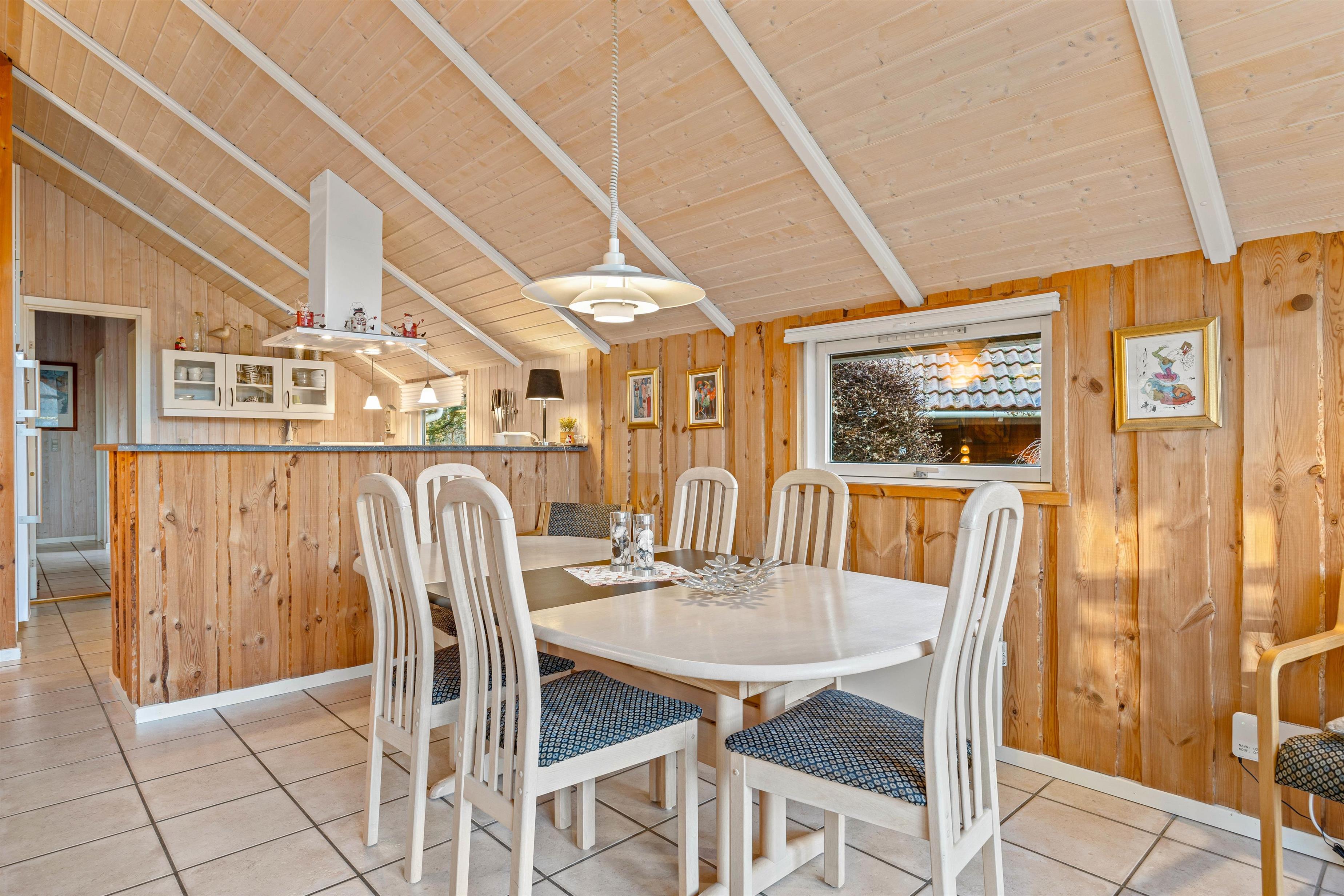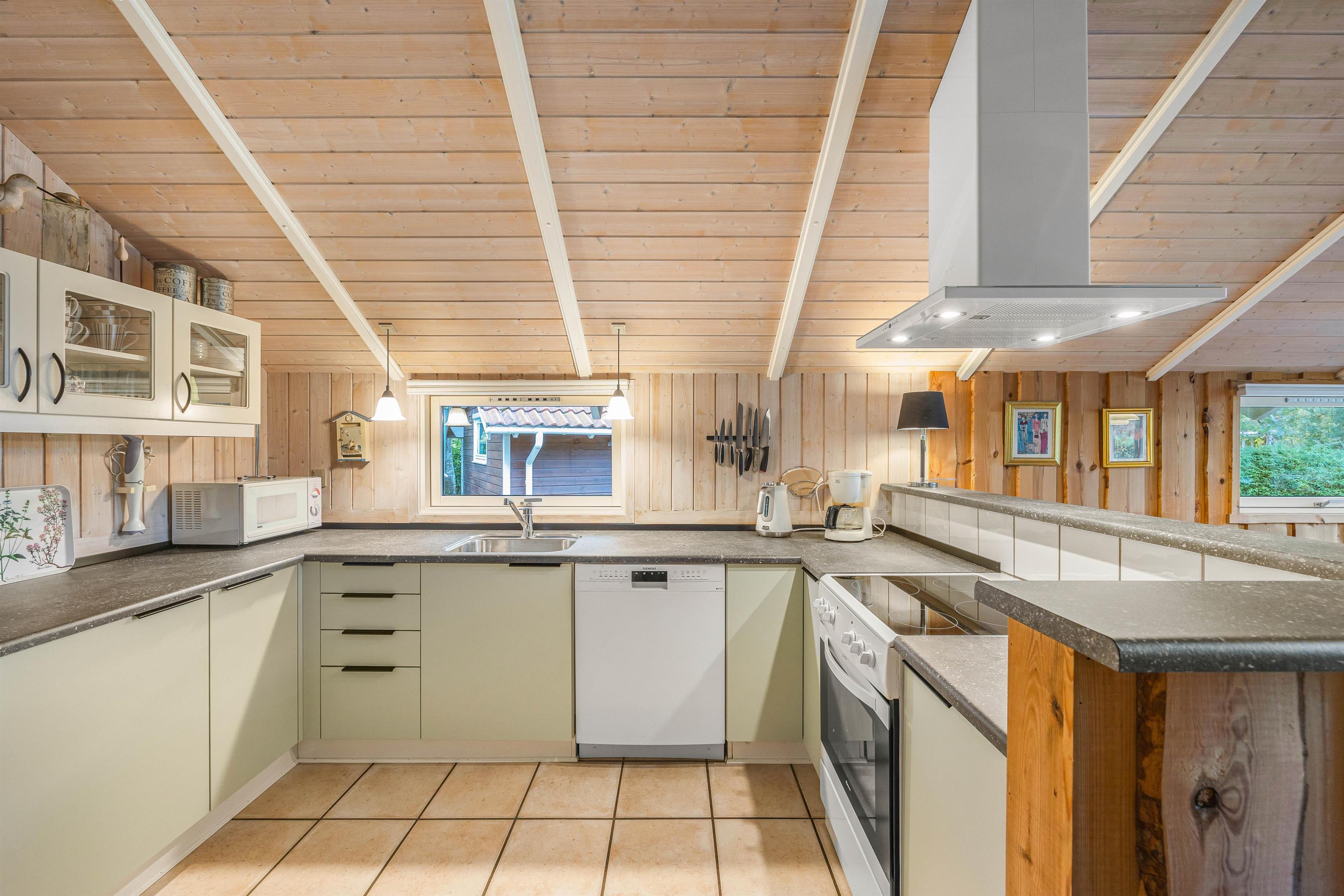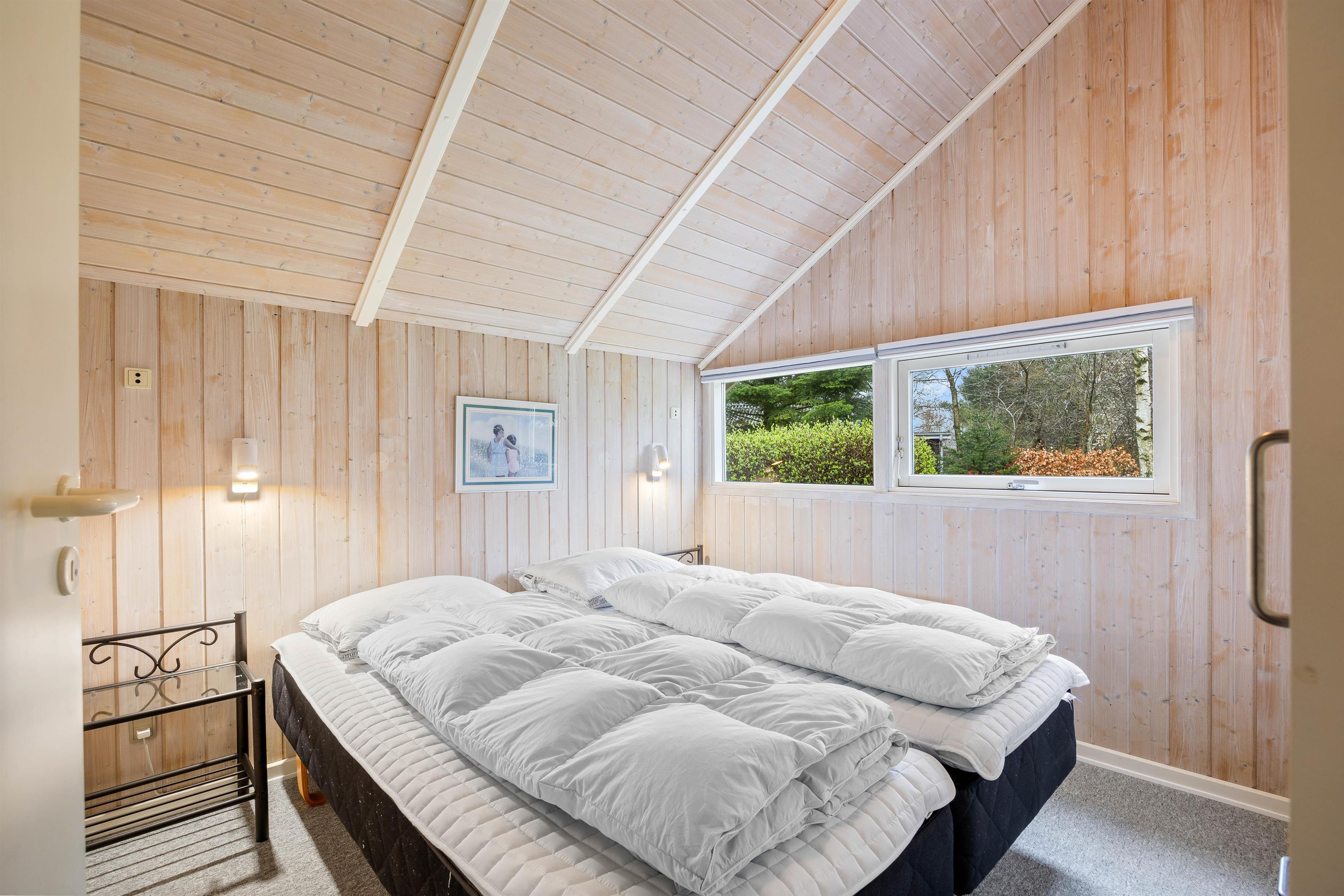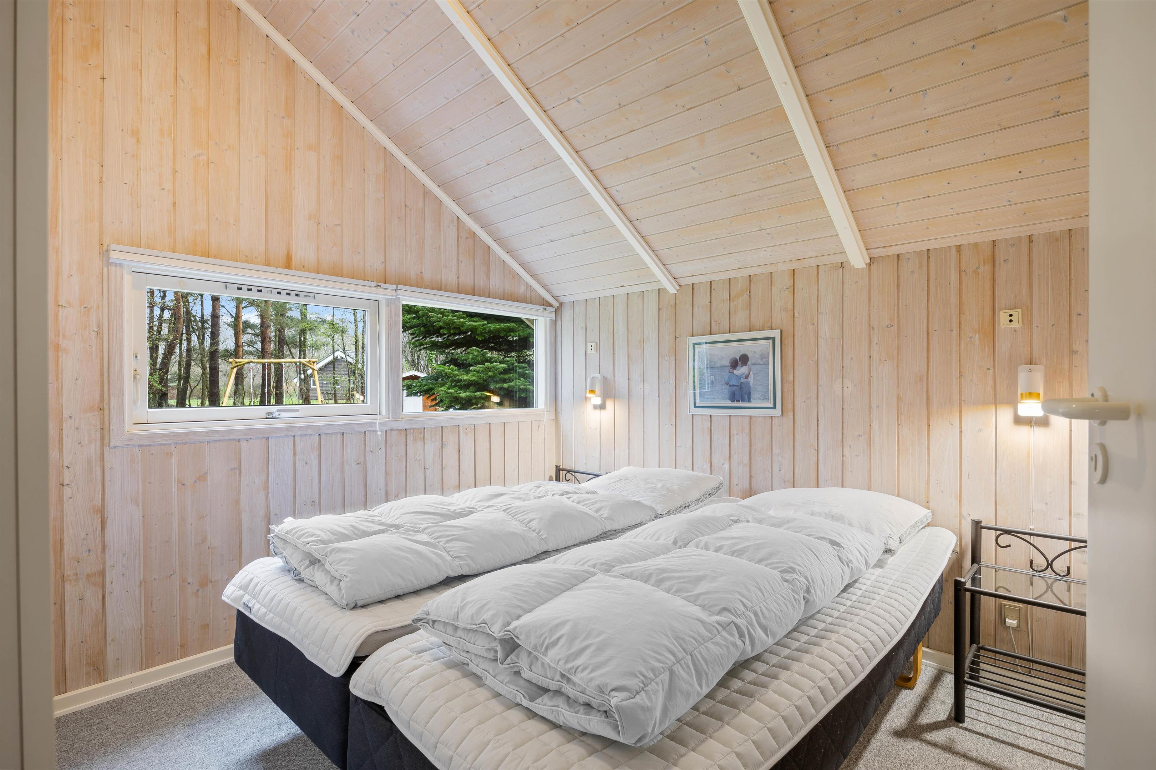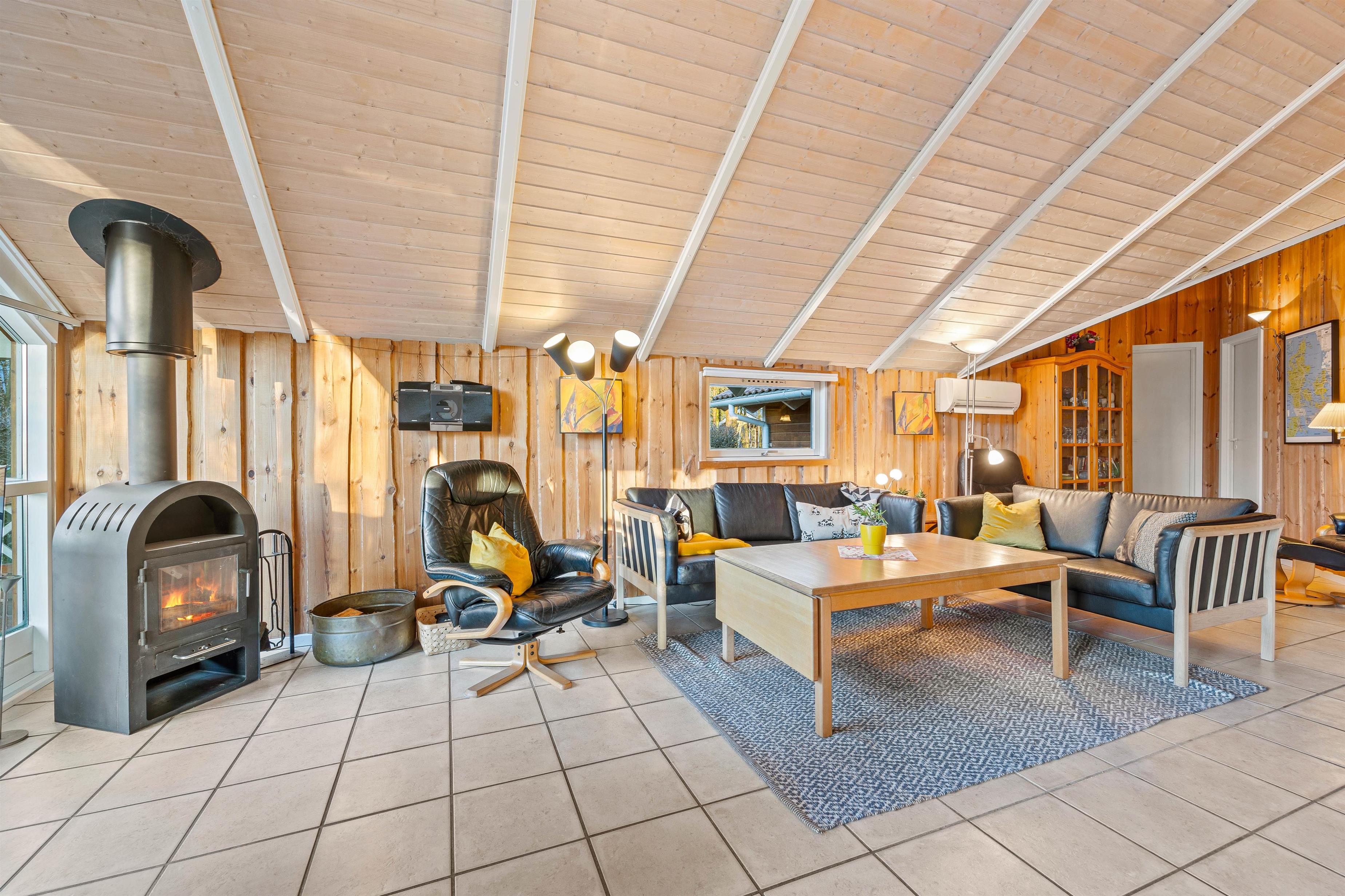 Sommerhuset byder på plads til 8 personer fordelt på 4 charmerende soverum, der skaber den perfekte ramme for afslapning og privatliv. I opholdsrummet spreder brændeovnen en varm og indbydende atmosfære, mens den behagelige gulvvarme omfavner jer med blid varme, uanset årstiden. Det veludstyrede køkken med opvaskemaskine gør madlavningen til en fornøjelse og giver dig mere tid til at nyde selskabet med dine kære.