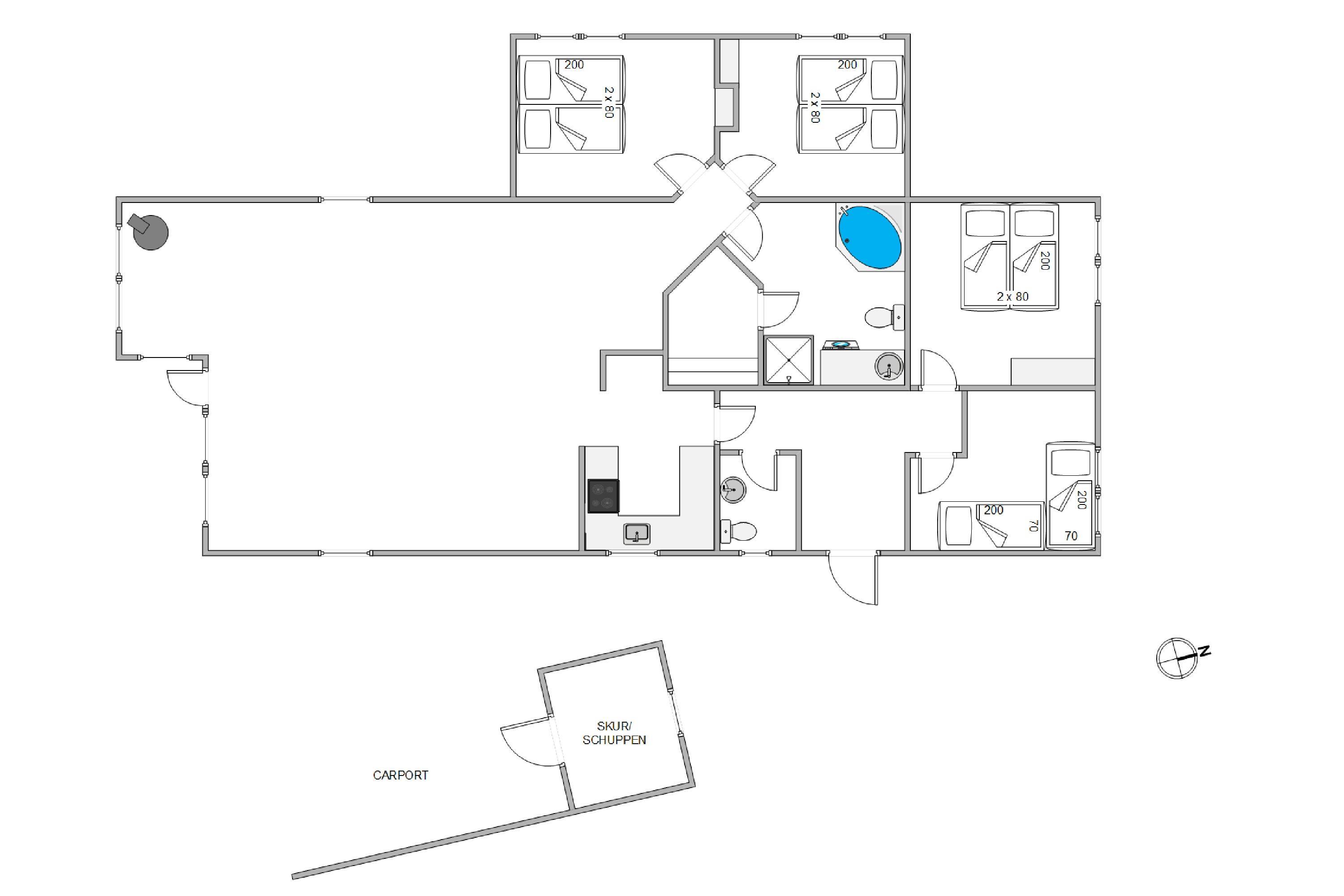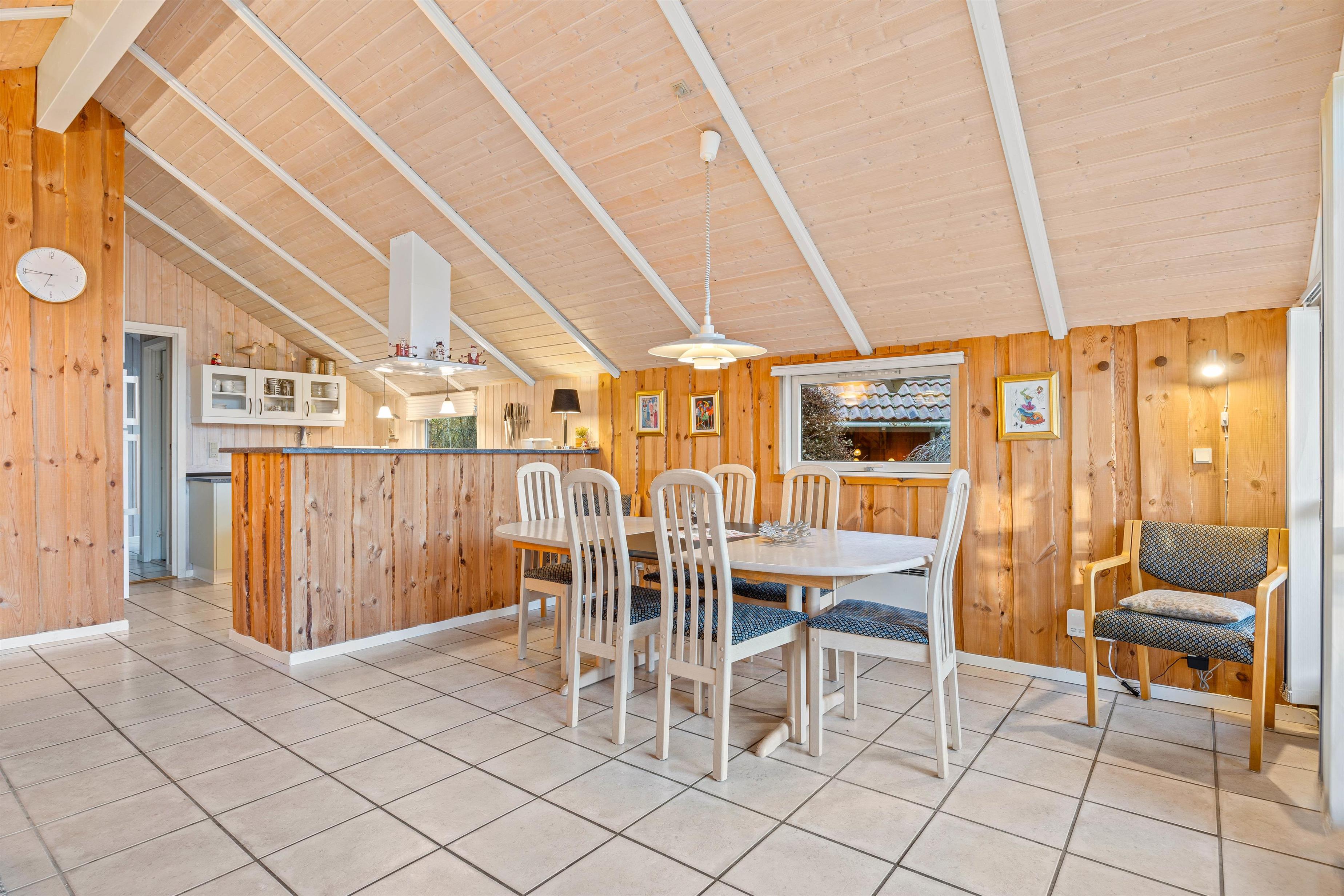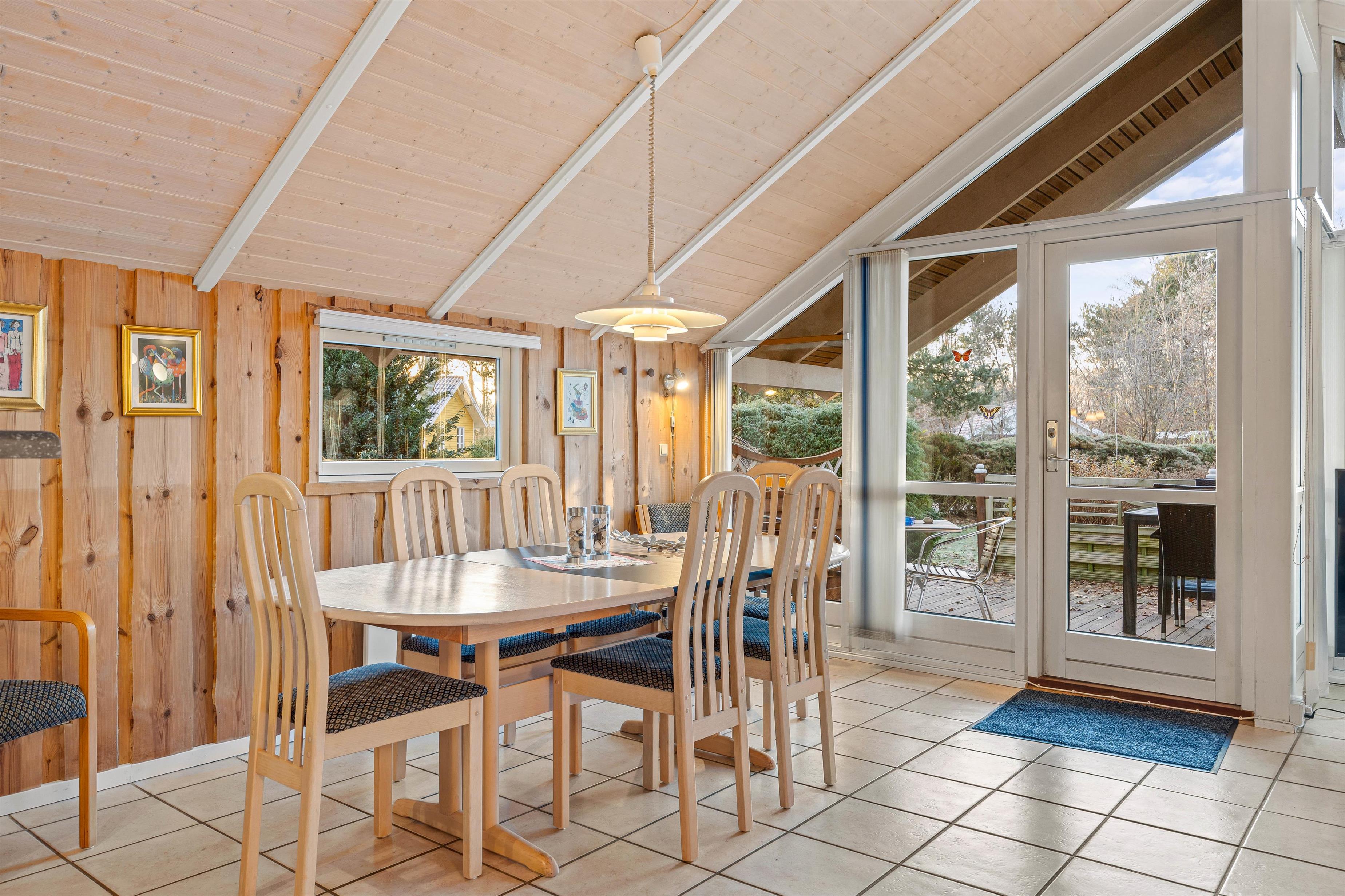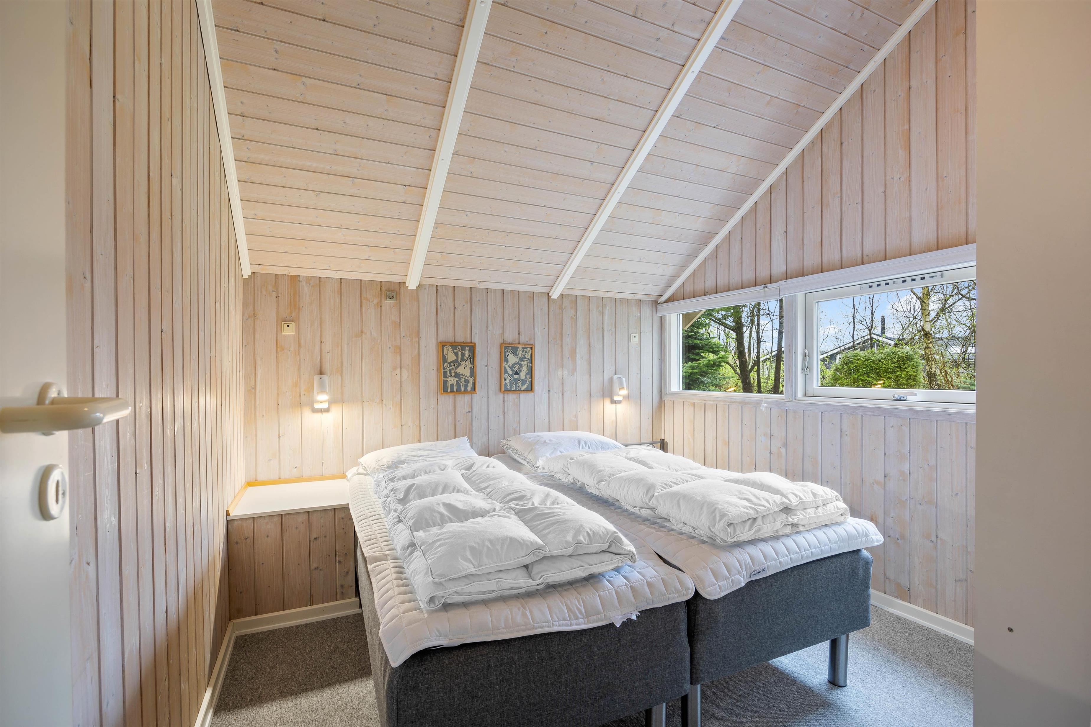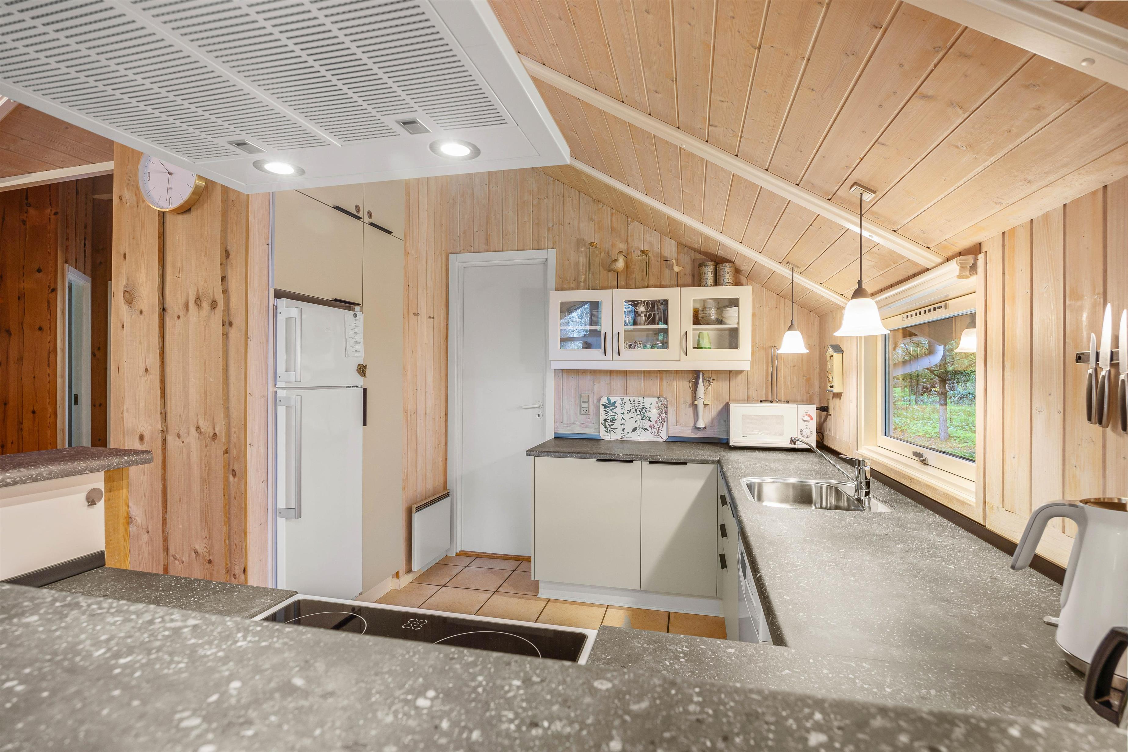 Sommerhuset byder på plads til 8 personer fordelt på 4 charmerende soverum, der skaber den perfekte ramme for afslapning og privatliv. I opholdsrummet spreder brændeovnen en varm og indbydende atmosfære, mens den behagelige gulvvarme omfavner jer med blid varme, uanset årstiden. Det veludstyrede køkken med opvaskemaskine gør madlavningen til en fornøjelse og giver dig mere tid til at nyde selskabet med dine kære.