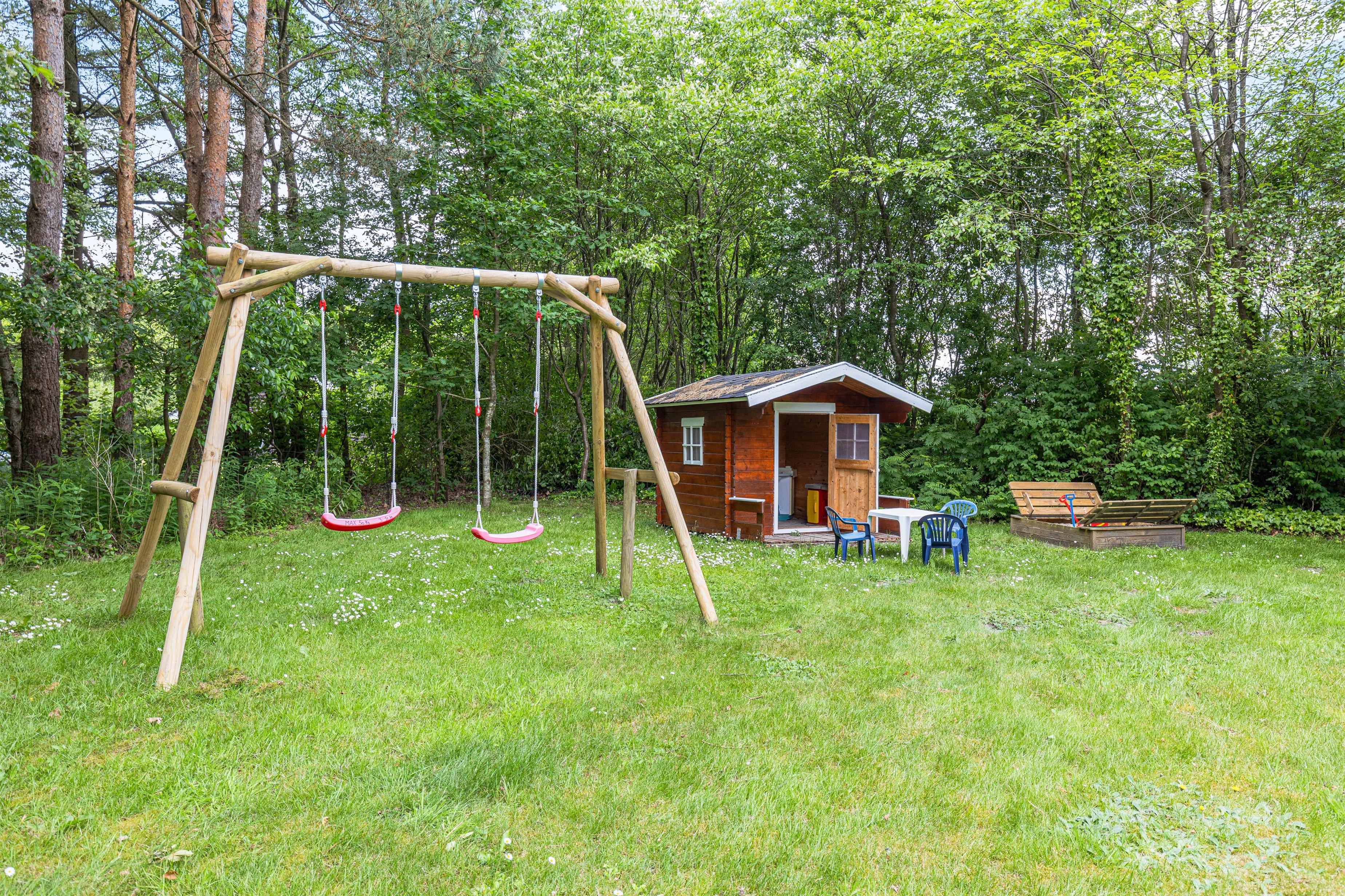 Udendørs liv for hele familien med grill og legeplads