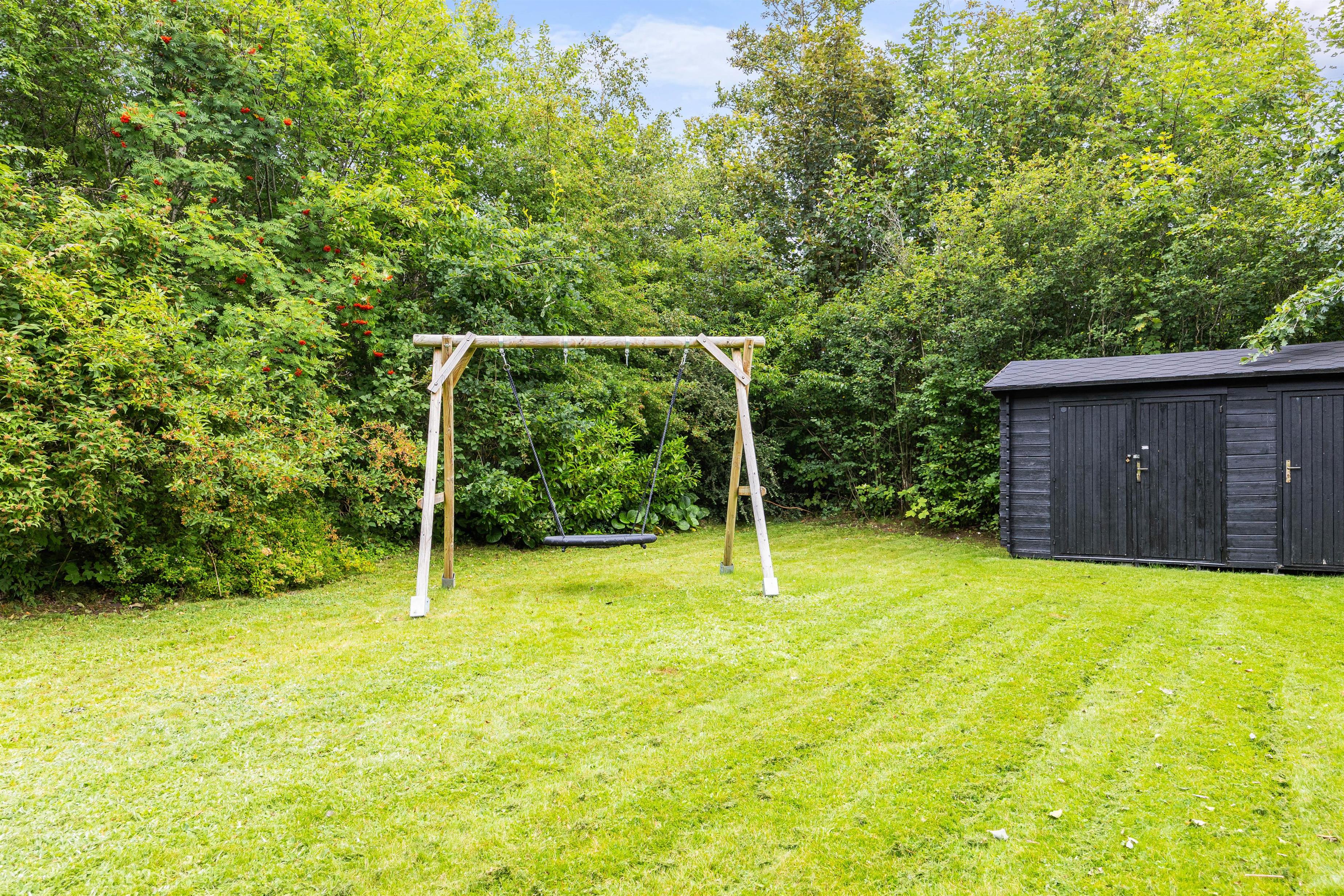 Den 1699m2 store plænegrund er fuld af muligheder for både store og små. Rundt om hele huset er der fliser og den sydvendte terrasse lader jer nyde solens stråler hele dagen, uanset om I foretrækker at hygge jer i havemøblerne, eller dase på solvognene. Børnene kan samtidig give den fuld gas på gyngerne, trampolinen, i sandkassen eller rundt på den store plæne. Efter en skøn feriedag, kan I tænde op i gasgrillen og nyde et lækkert feriemåltid tilberedt og indtaget under åben himmel.