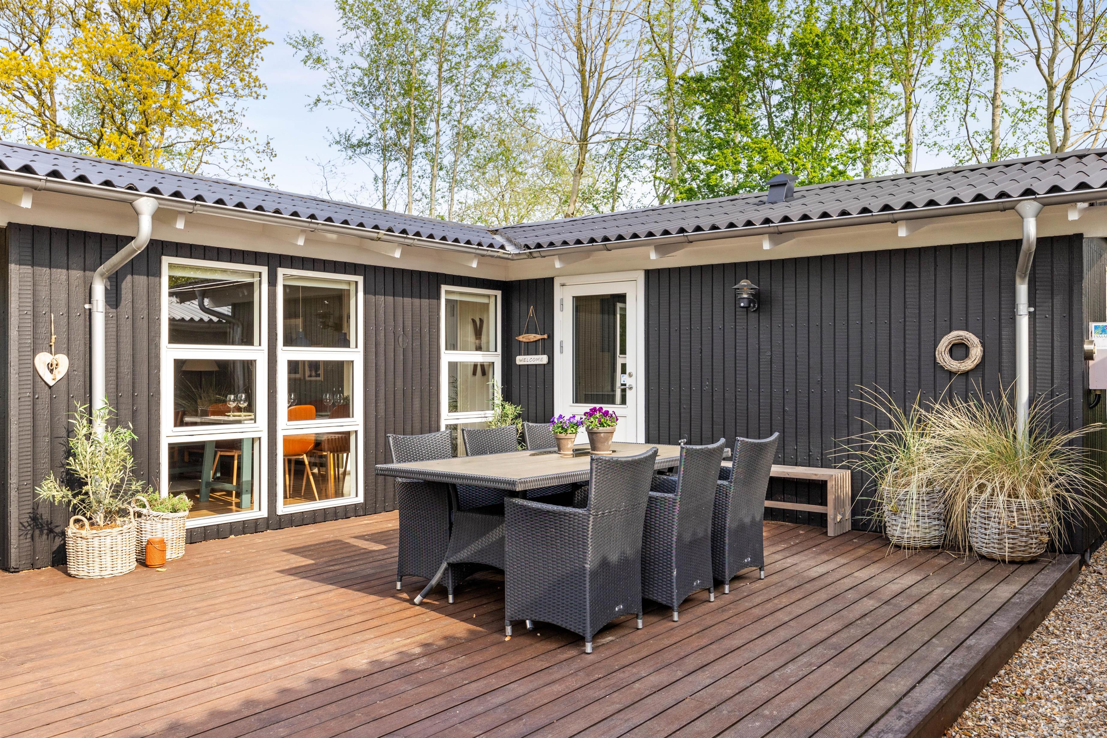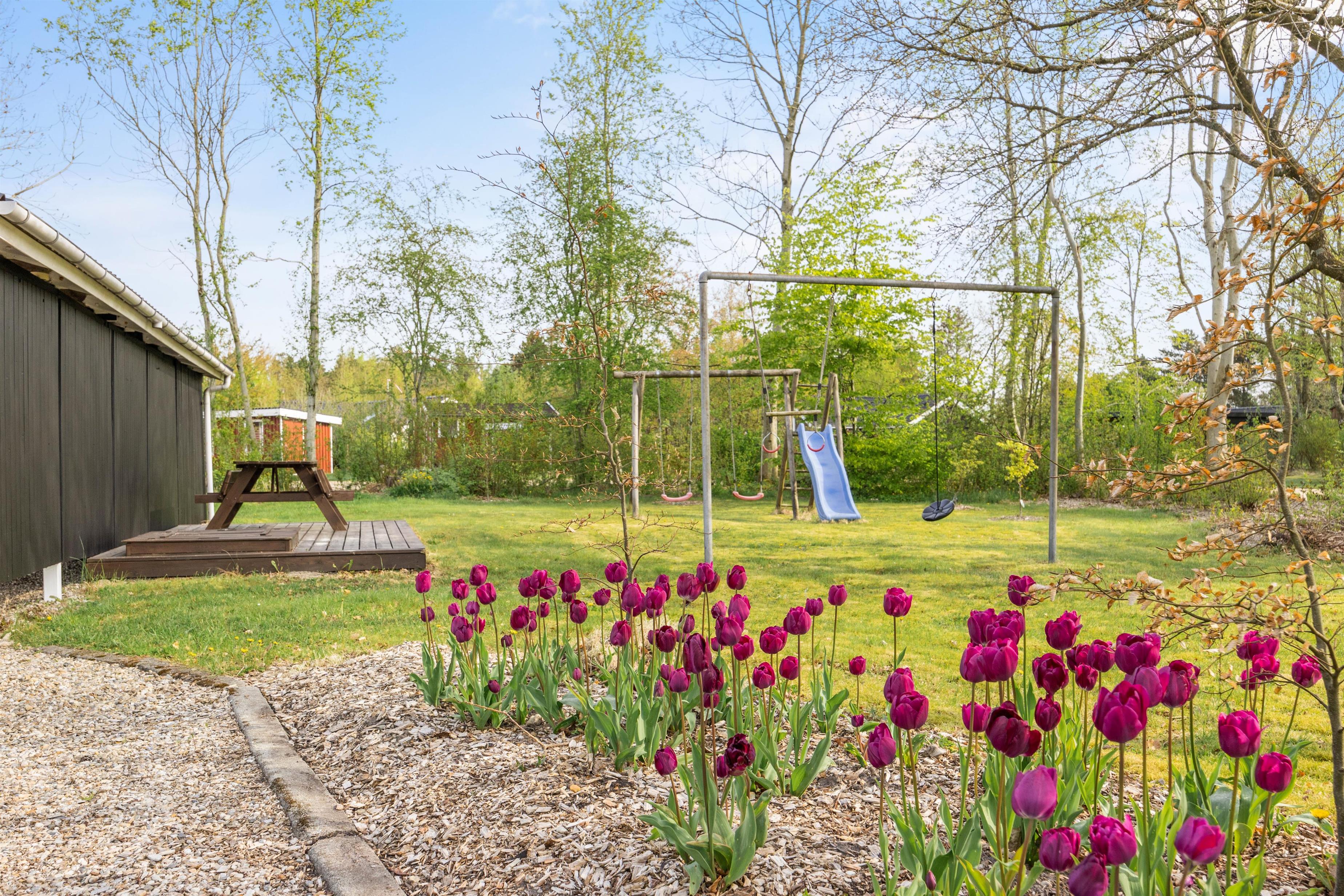Ferieboligen er placeret på en rummelig 1700 kvadratmeter stor plænegrund, omkranset af træer, der indbyder til diverse leg og boldspil under solens stråler. Til udendørs hygge og afslapning er sommerhuset fuldt udstyret med en grill, komfortable havemøbler, en solvogn og en parasol, så I kan nyde det danske sommervejr.