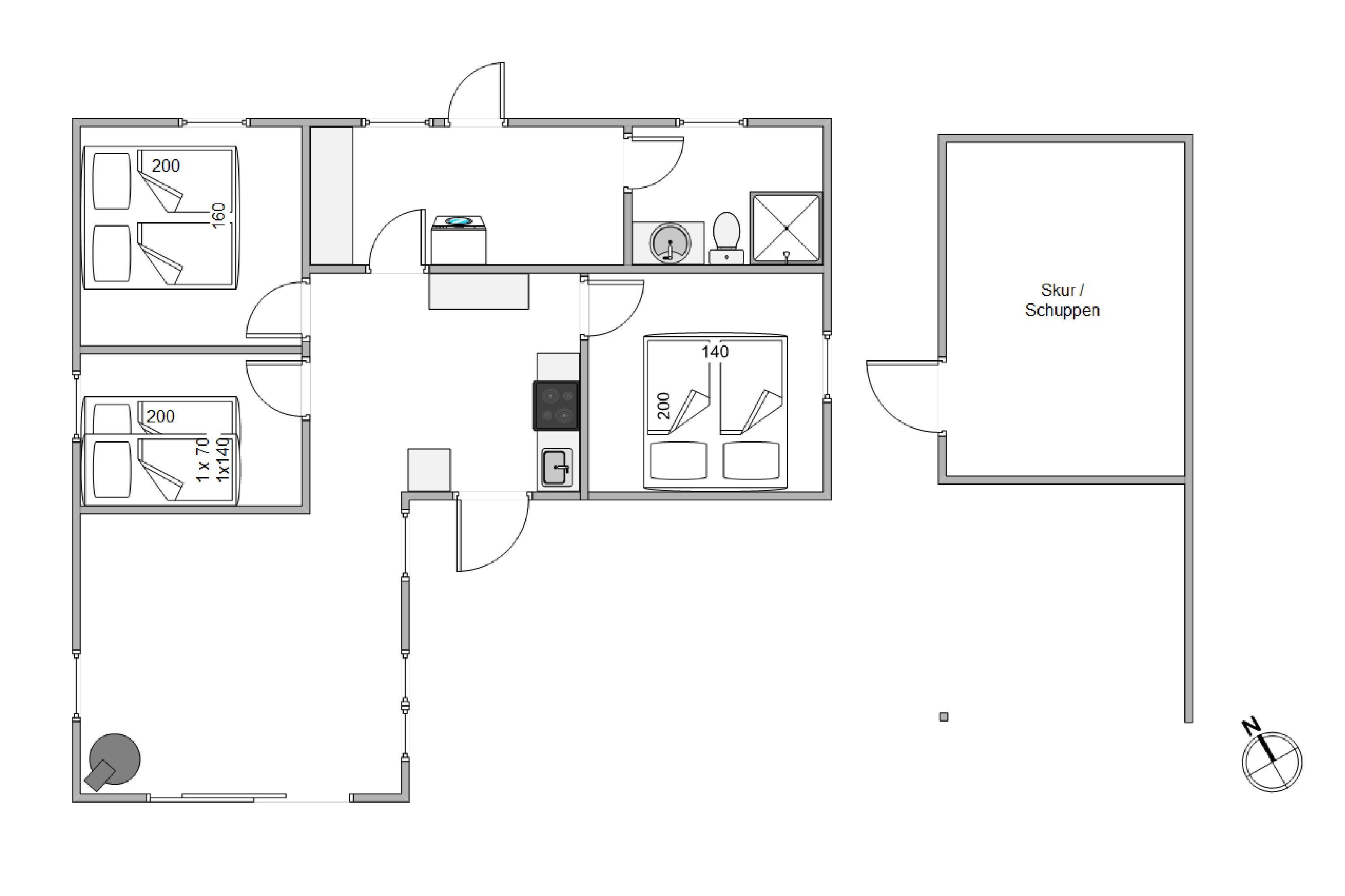 Ferieboligen byder på 3 komfortable værelser, alle med dobbeltsenge, hvilket sikrer jer en god nattesøvn efter en dag fuld af oplevelser.