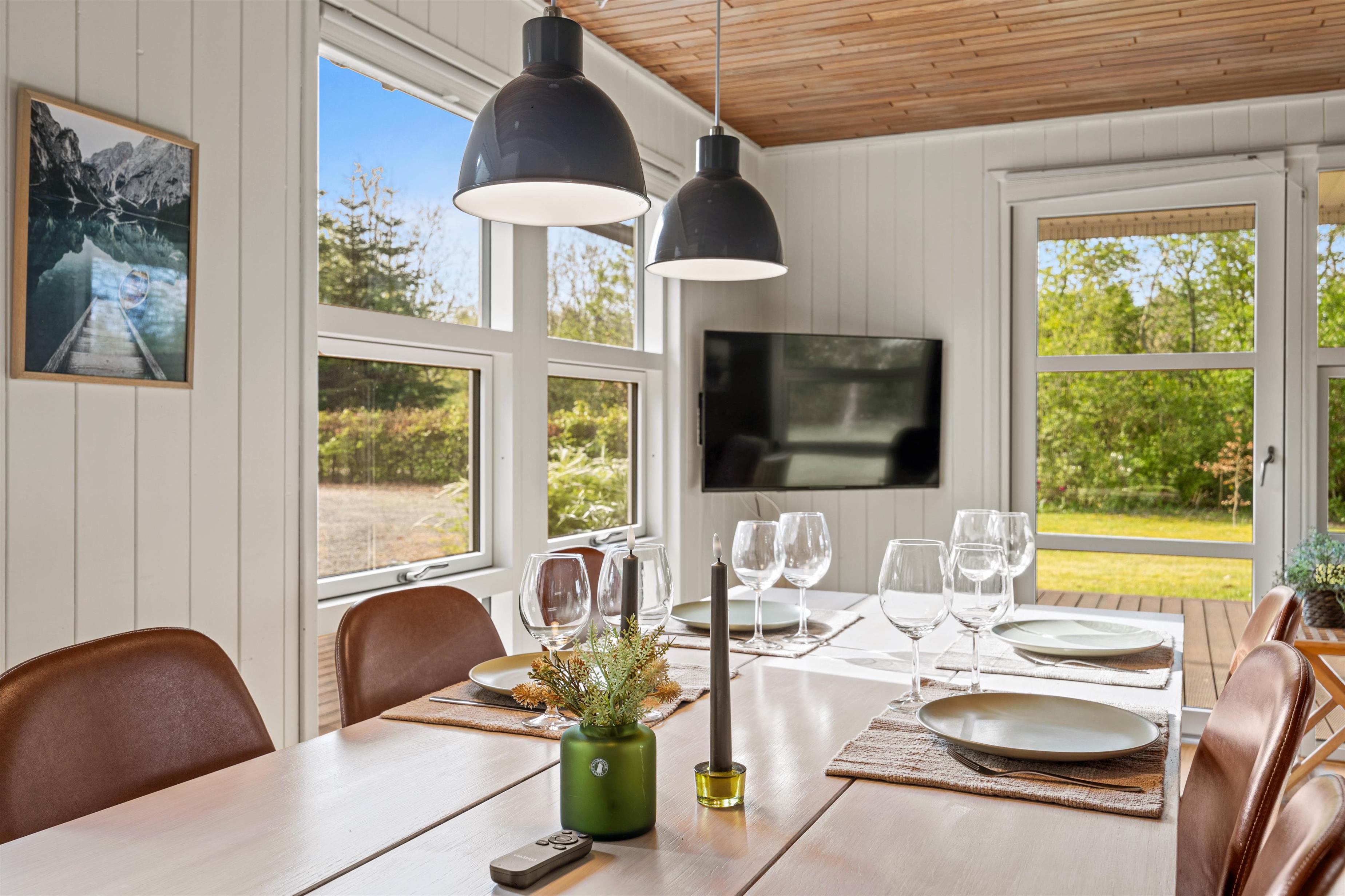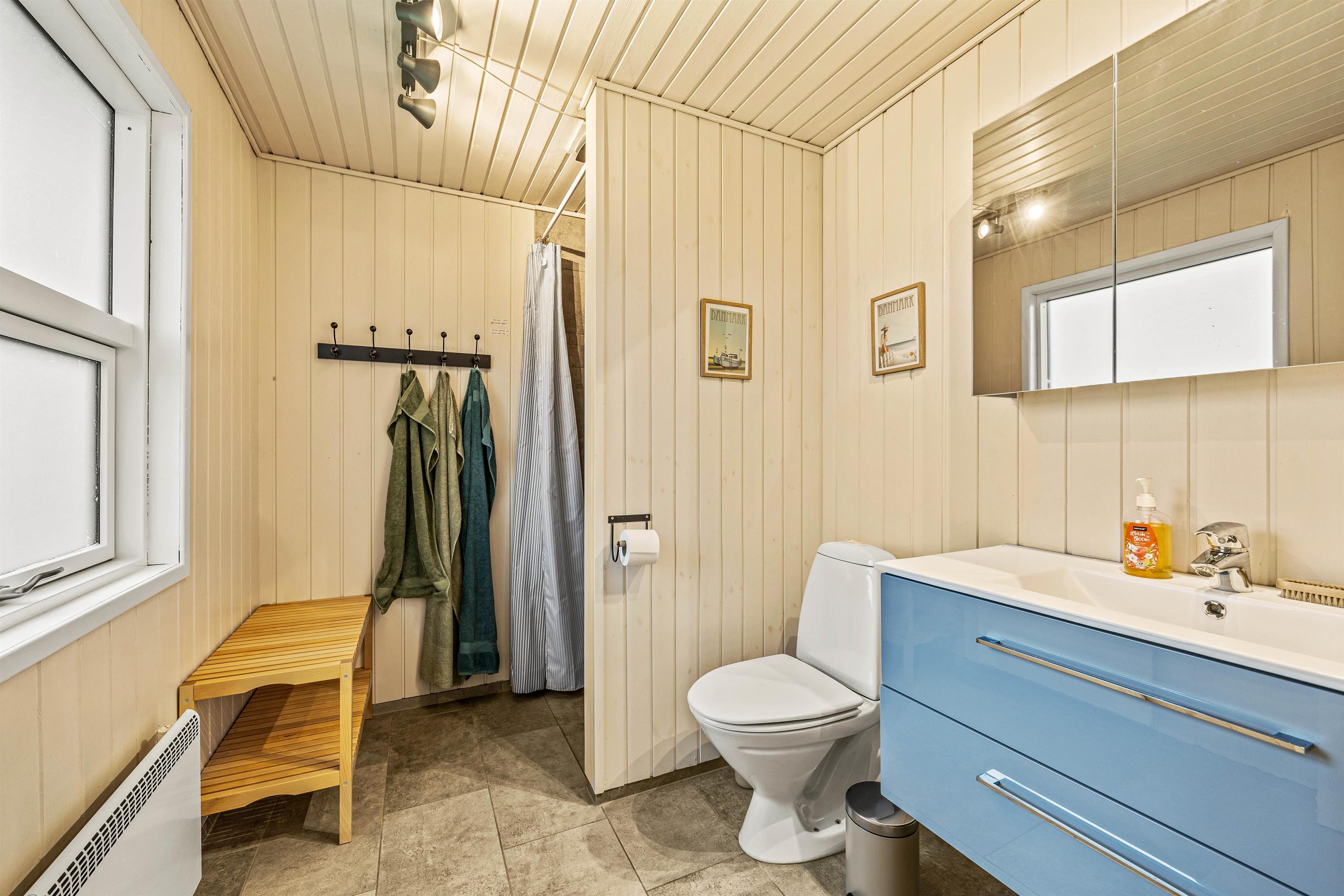 Ferieboligen har et lyst baderum med gulvvarme, hvilket er en dejlig komfort på kølige morgener eller efter en forfriskende tur i naturen. Feriehuset er udstyret med en praktisk vaskemaskine og tørretumbler, så I nemt kan få klaret diverse opgaver, mens I nyder tiden omkring spisebordet med en omgang brætspil.