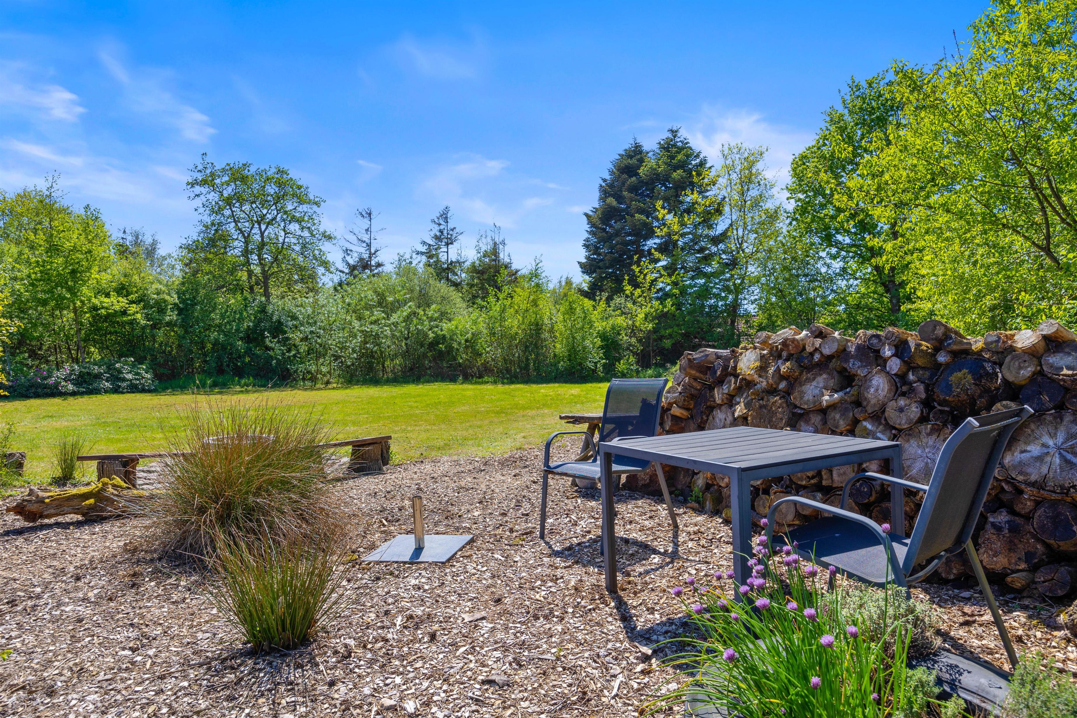 Den overdækkede terrasse er et perfekt sted til at starte dagen med morgenkaffen eller afslutte aftenen med et glas vin, mens I nyder lyden af vinden i træerne. Der er mulighed for at fyre op i grillen eller bålstedet og arrangere hyggelige grillmiddage sammen med familie og venner.