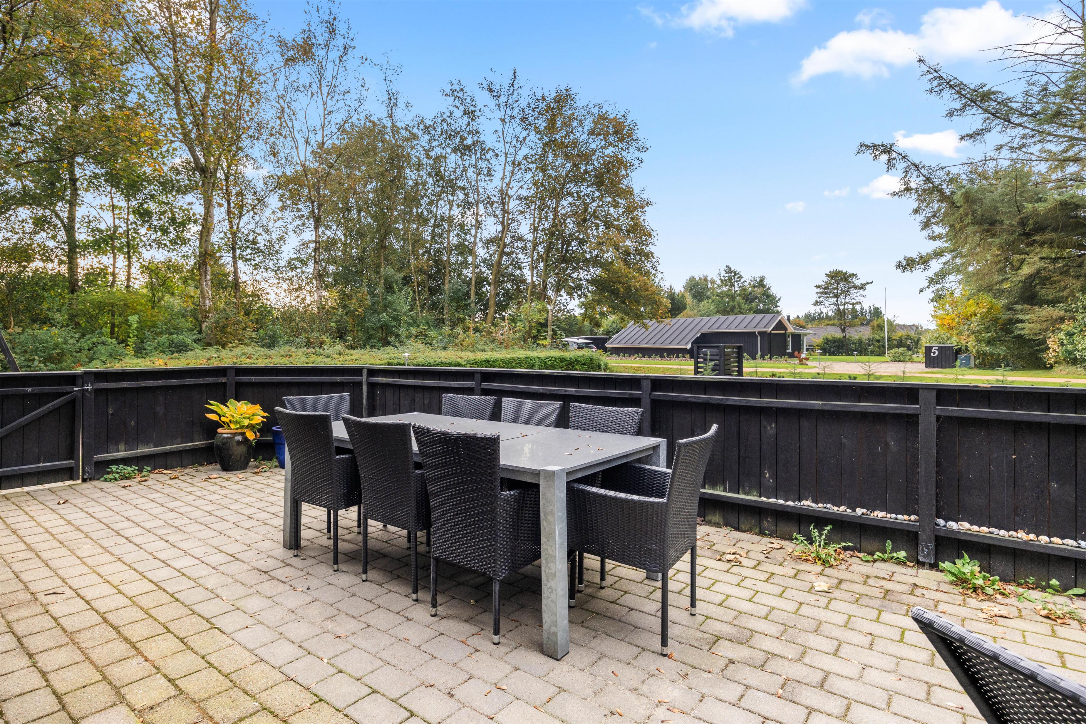 Udendørs byder sommerhuset på flere terrasser, så der altid er en plads i solen, uanset tidspunktet på dagen. Der er alt, hvad I behøver for en fantastisk ferieoplevelse, inklusiv grill og havemøbler, som er perfekt til en hyggelig grillaften. Til de solrige dage finder I også solvogne, hvor I kan slappe af.