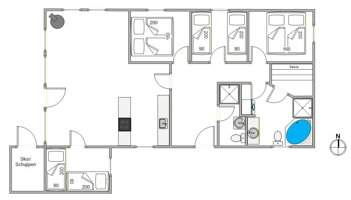 For de spilleglade er der både Wii og Playstation til rådighed. Sommerhuset tilbyder også ren afslapning med et spabad og sauna i et af de to badeværelser. Udendørs finder I en delvist overdækket terrasse perfekt til hyggelige grillaftener og en rummelig grund til udendørs aktiviteter.