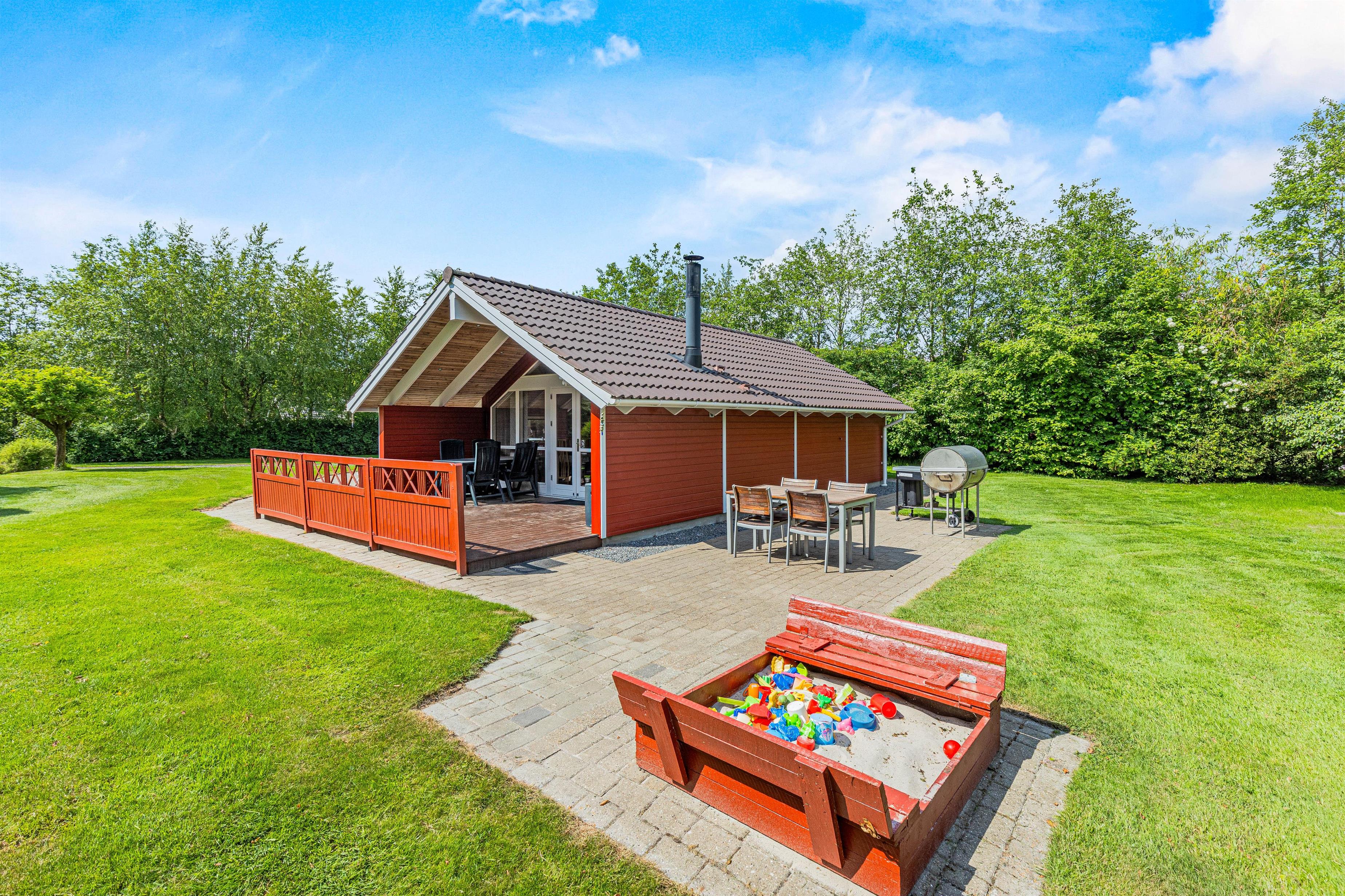 Sommerhuset er stort set omgivet af terrassen og selvfølgelig den store græsplæne, så I hele dagen kan følge med solen og nyde det gode vejr på bedste vis. Læn jer godt tilbage og lad alle hverdagens strabadser blive hjemme, mens børnene leger i sandkassen og på gyngestativet.
