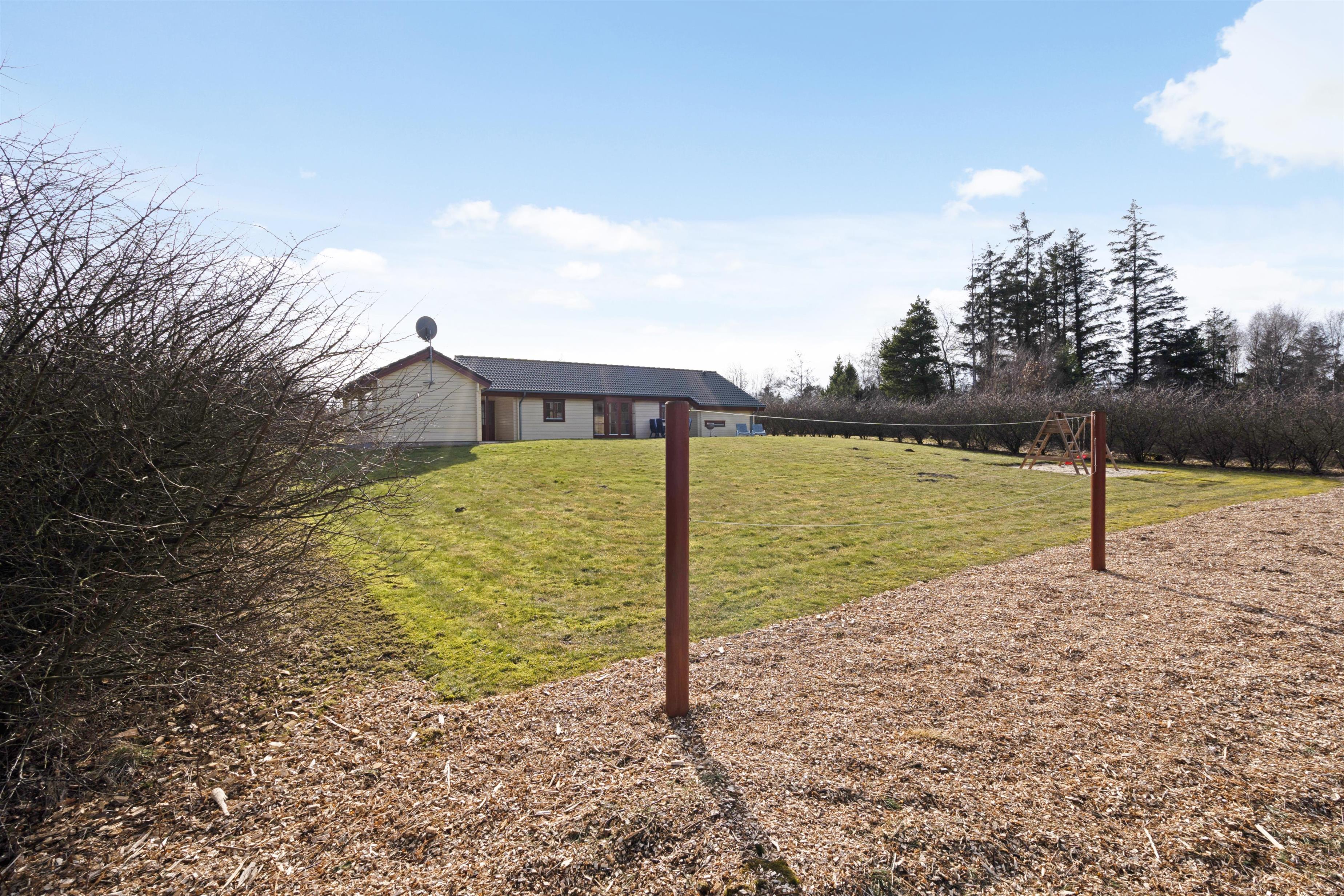 Med 1600 m2 grund er der masser af plads til både aktiviteter og afslapning. Sommerhuset grænser op til et grønt område, hvor Henne Å bugter sig gennem naturen.