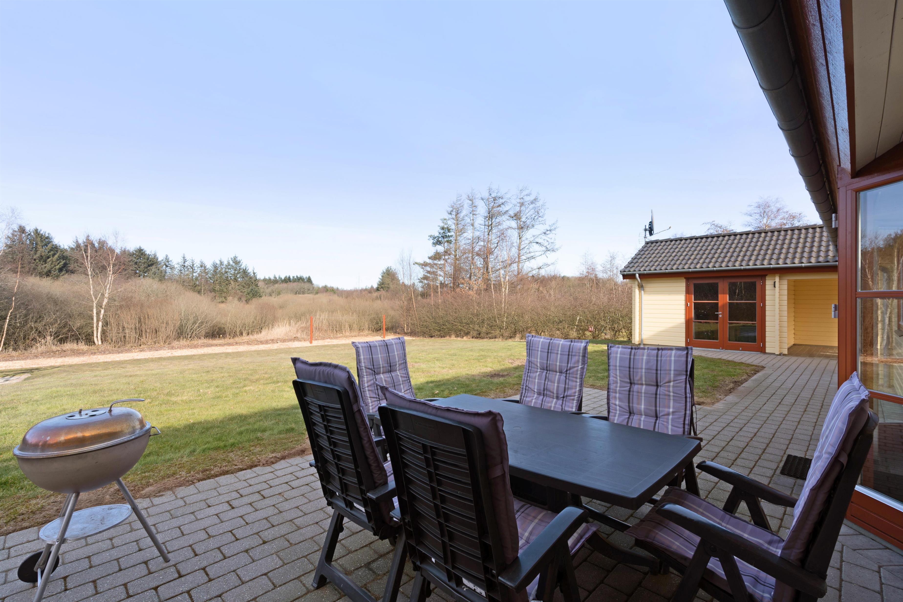 Fra stuen kan I træde ud på den rummelige terrasse, som har både overdækket og åben sektion, hvilket giver jer mulighed for at nyde udendørslivet uanset vejret. På de varme sommerdage kan I tænde op i grillen og tilberede lækre måltider, som kan nydes ved havemøblerne med udsigt over den store, grønne plænegrund. Børnene kan lege trygt i haven og få glæde af gyngen, mens I slapper af i solen.