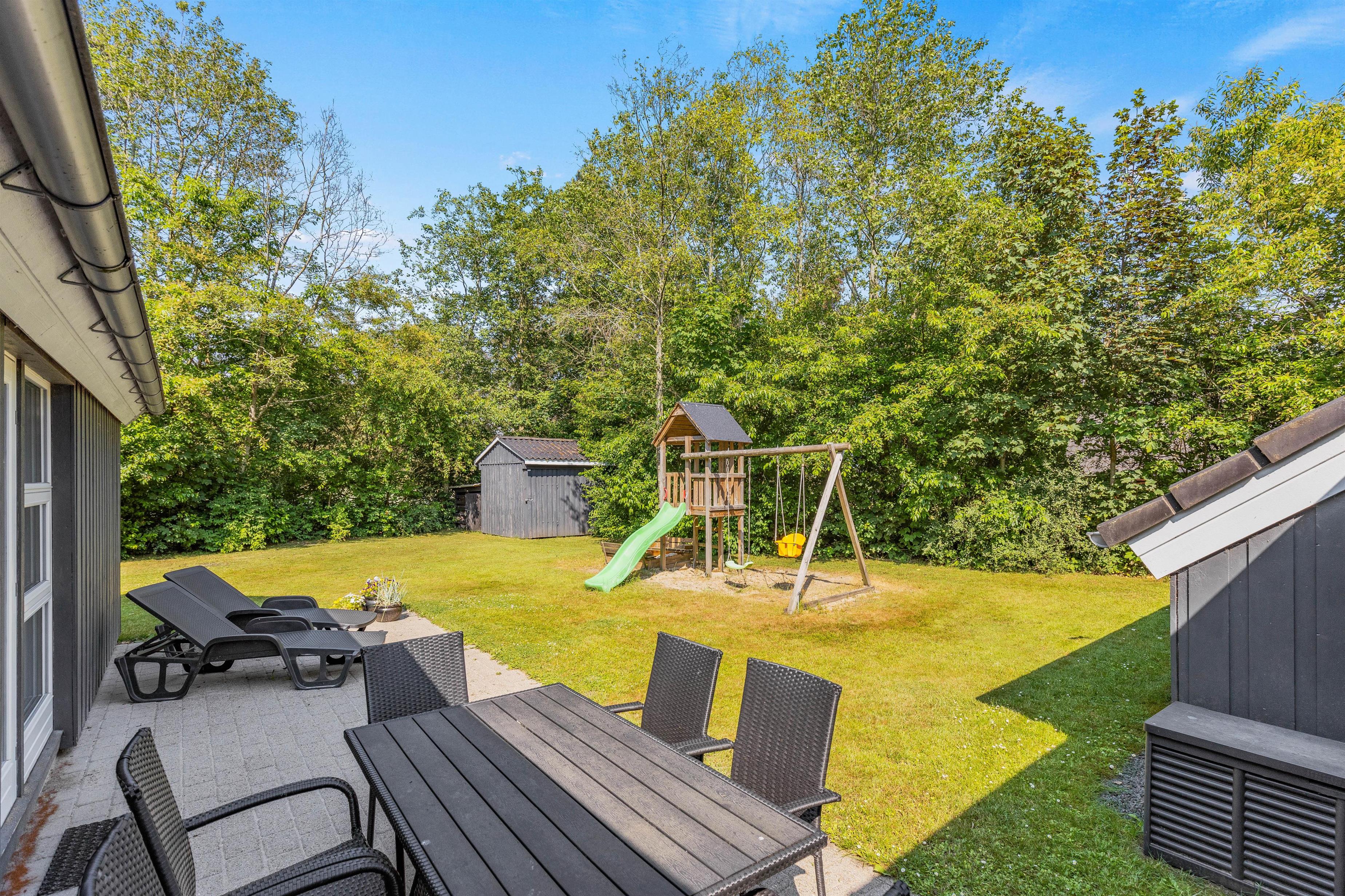 Sommerhuset byder på et vidunderligt udeareal på 1505m2, der inviterer til både leg og afslapning. Med en stor plænegrund er der plads til boldspil og andre udendørs aktiviteter, som hele familien kan nyde. Her kan børnene udforske haven, hvor der er både gynge og sandkasse, der sikrer timevis af sjov og underholdning.