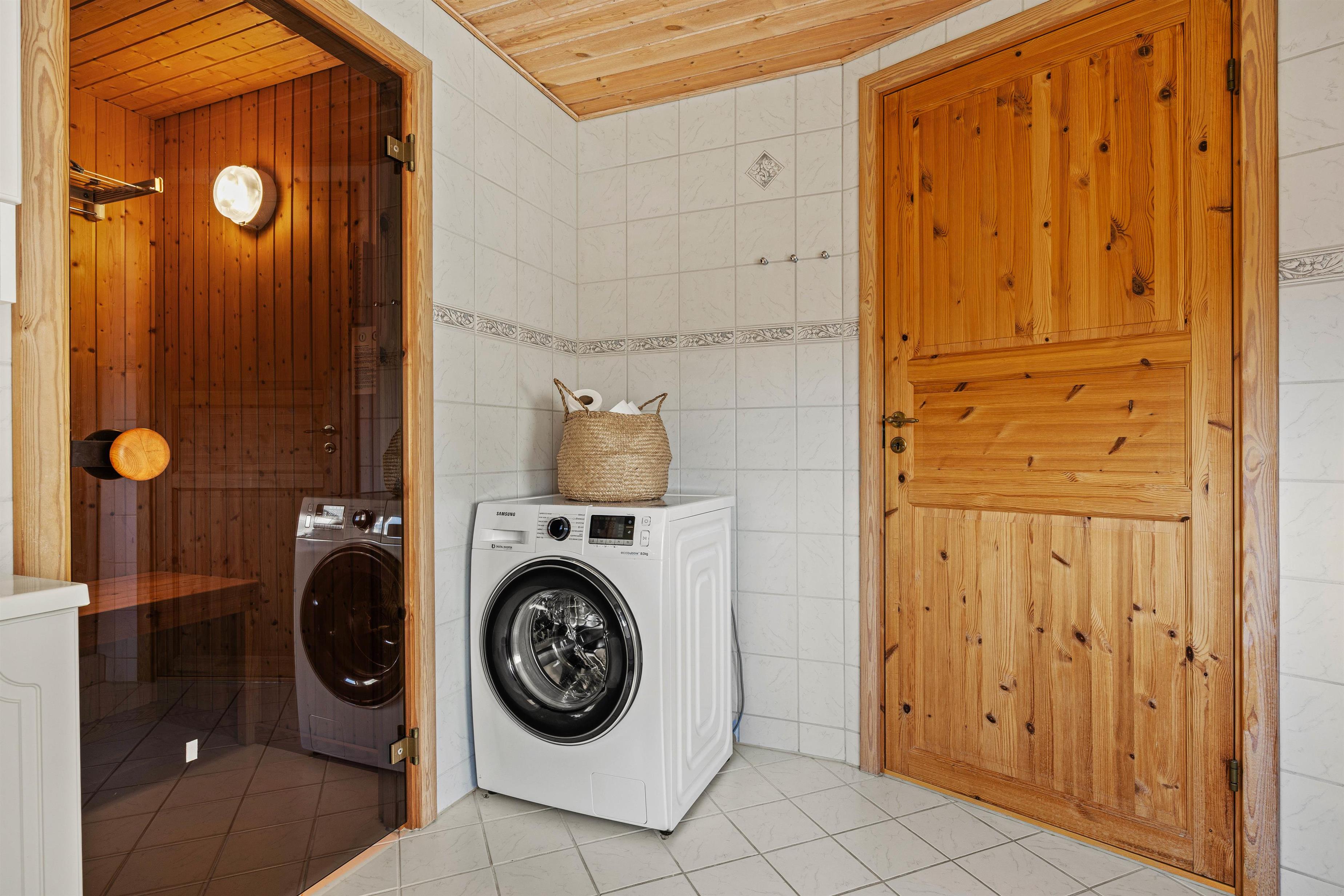 Desuden er der vaskemaskine og tørretumbler i huset, så ferietøjet kan blive vasket og tørret undervejs.
